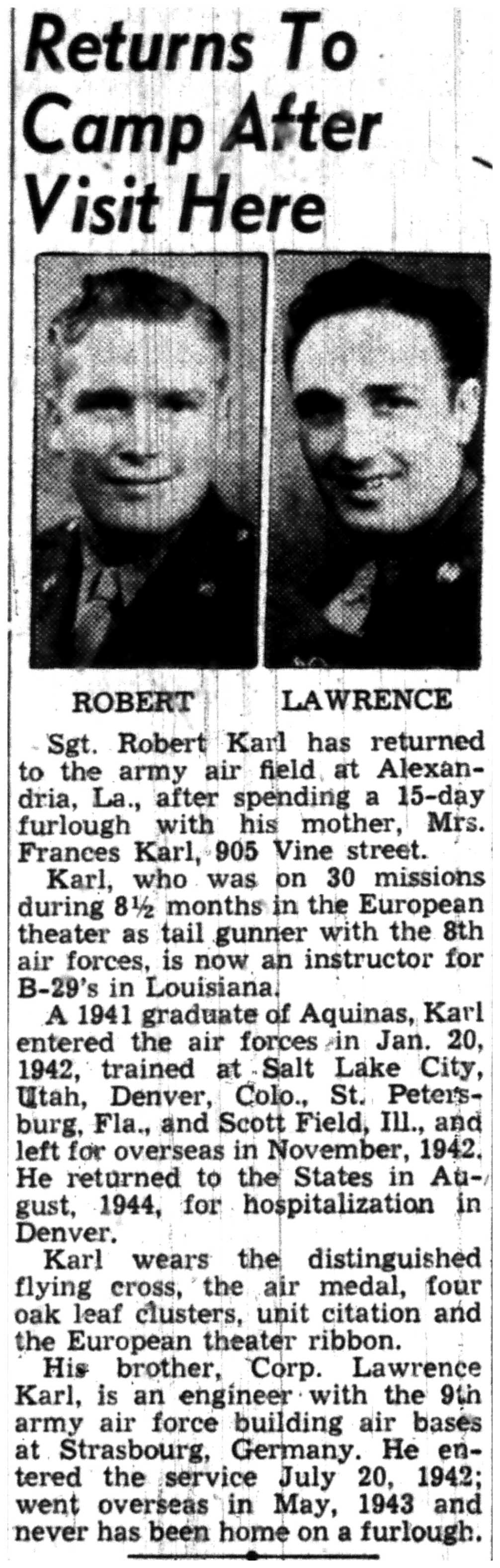 | 1945-8-4 | La Crosse Tribune p8 | |