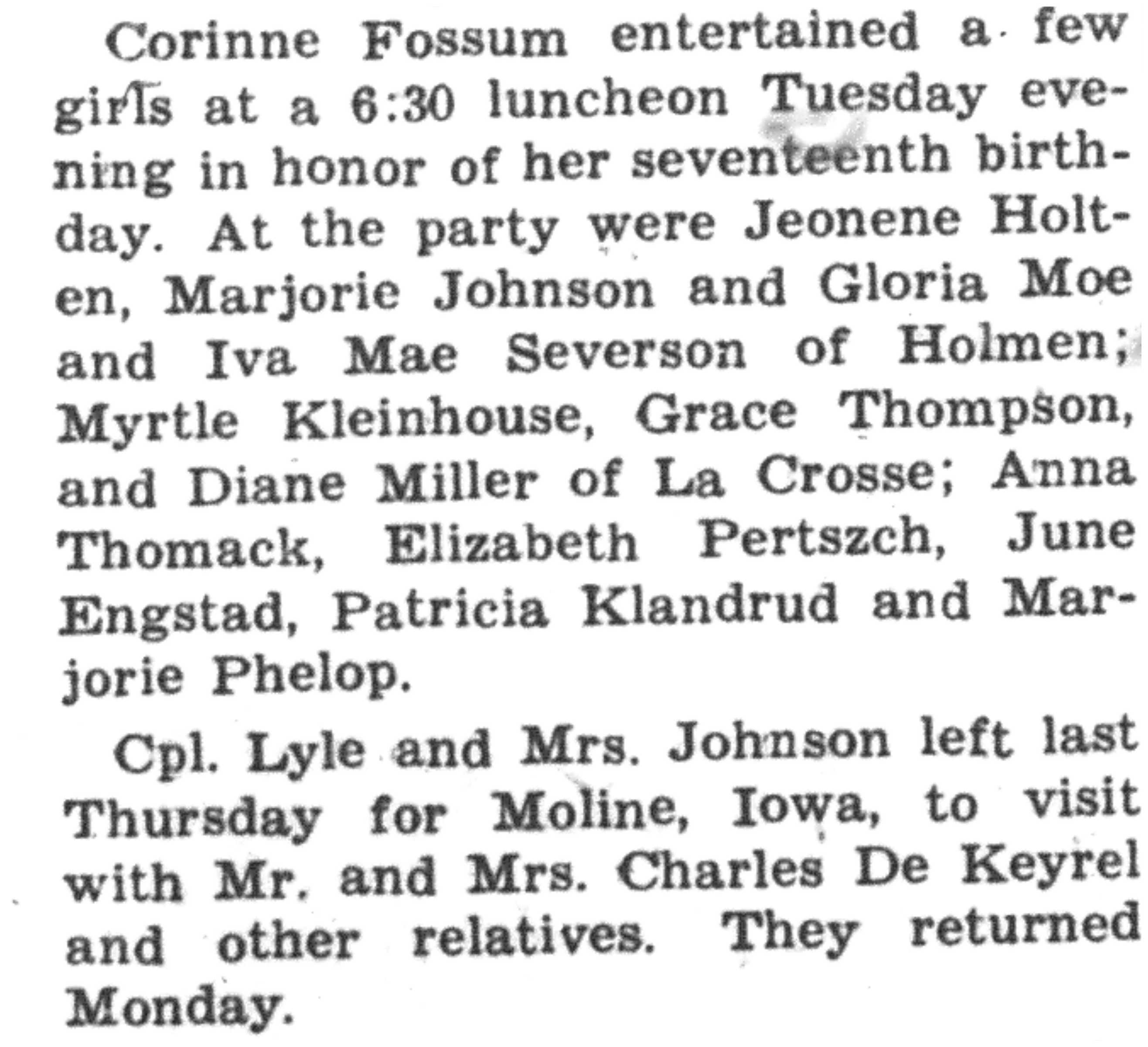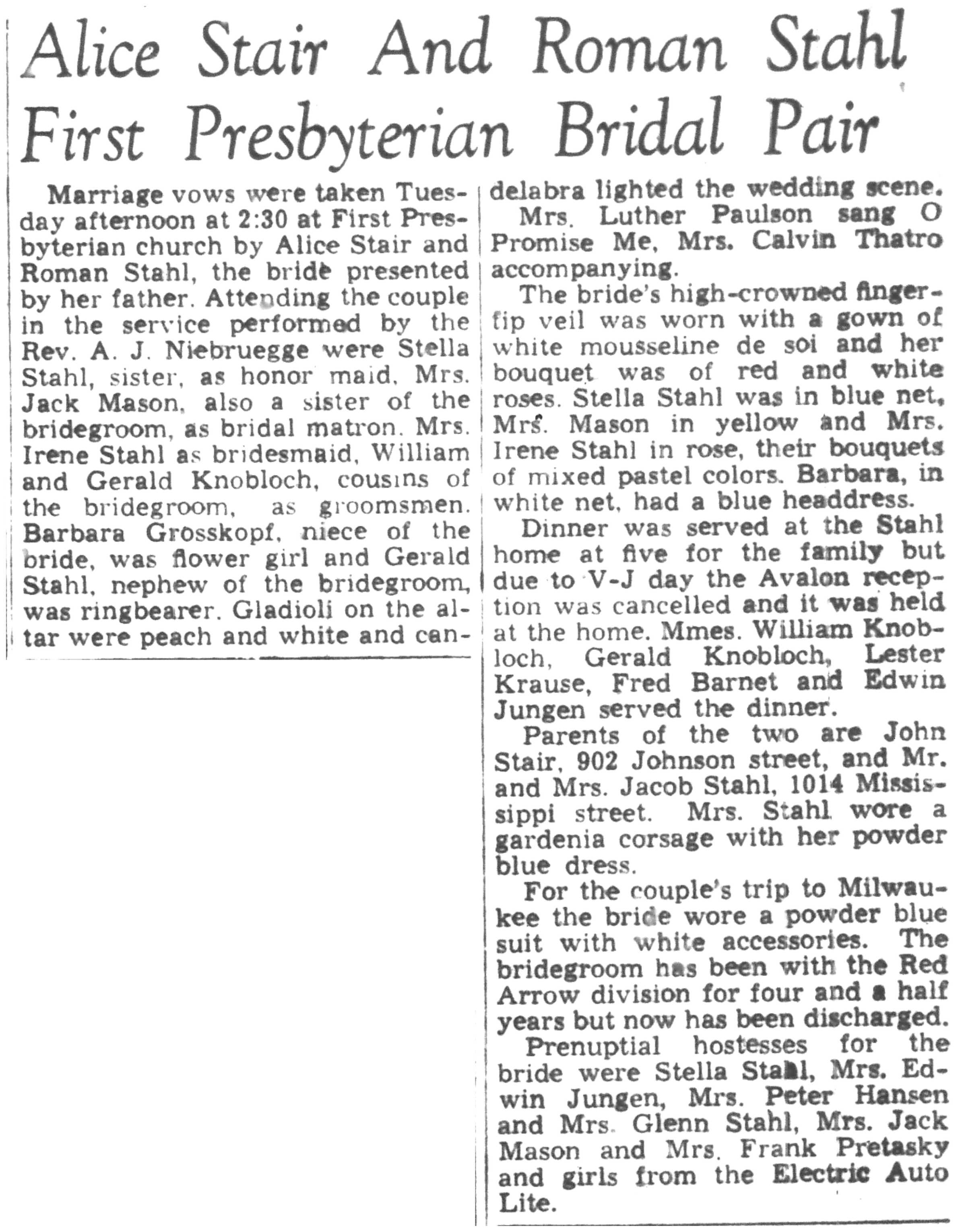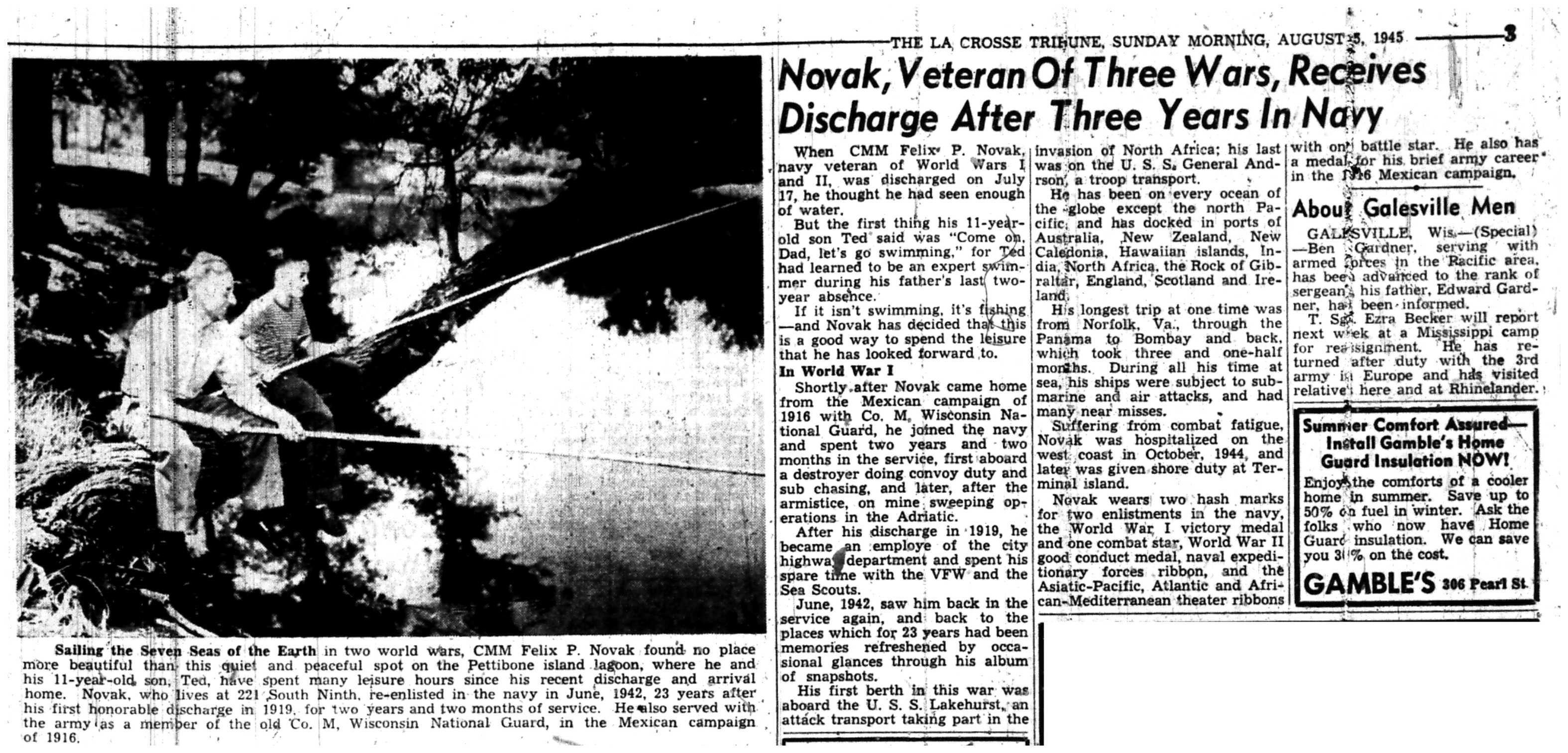 | 1945-8-30 | La Crosse Tribune p17 | |