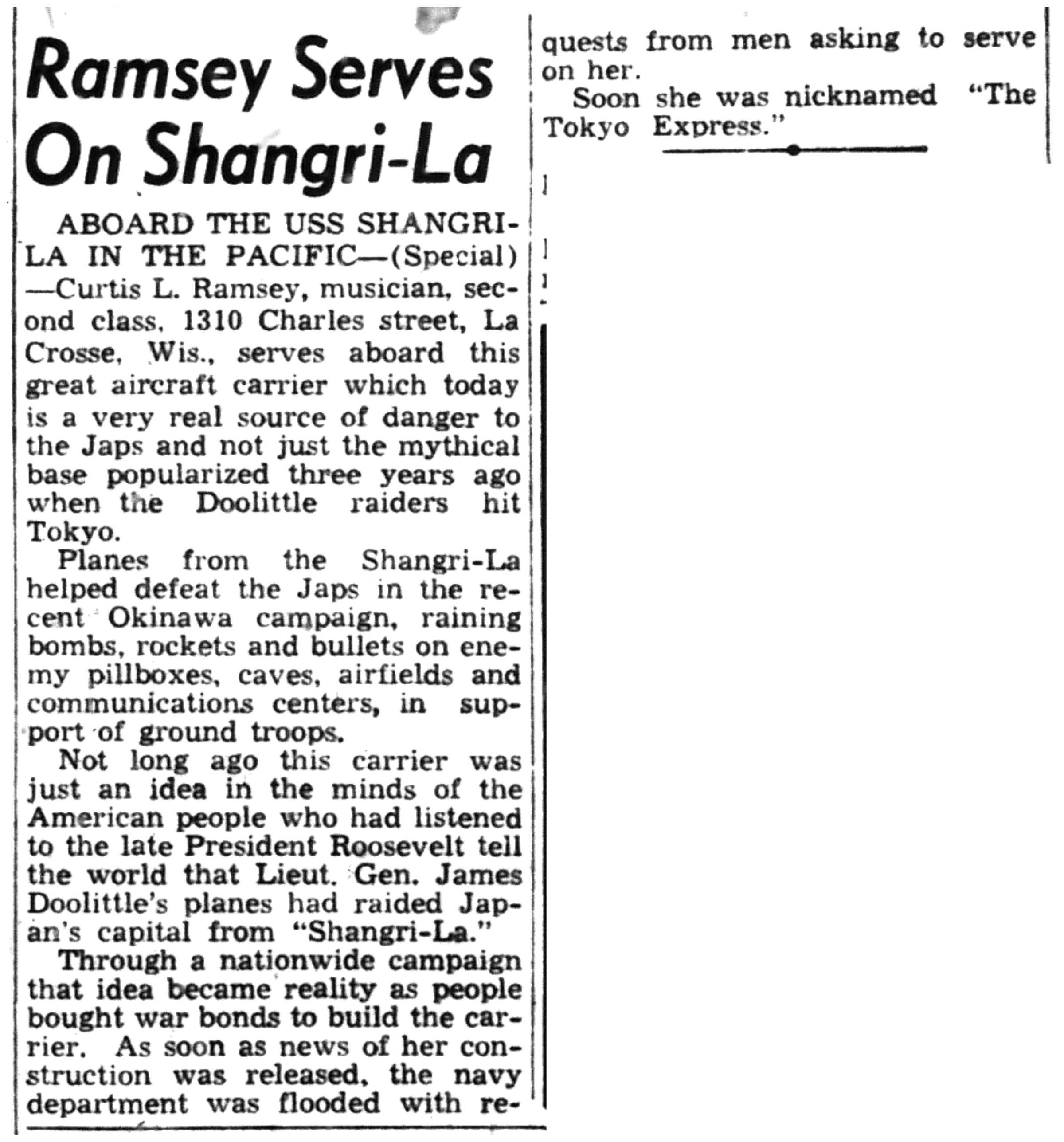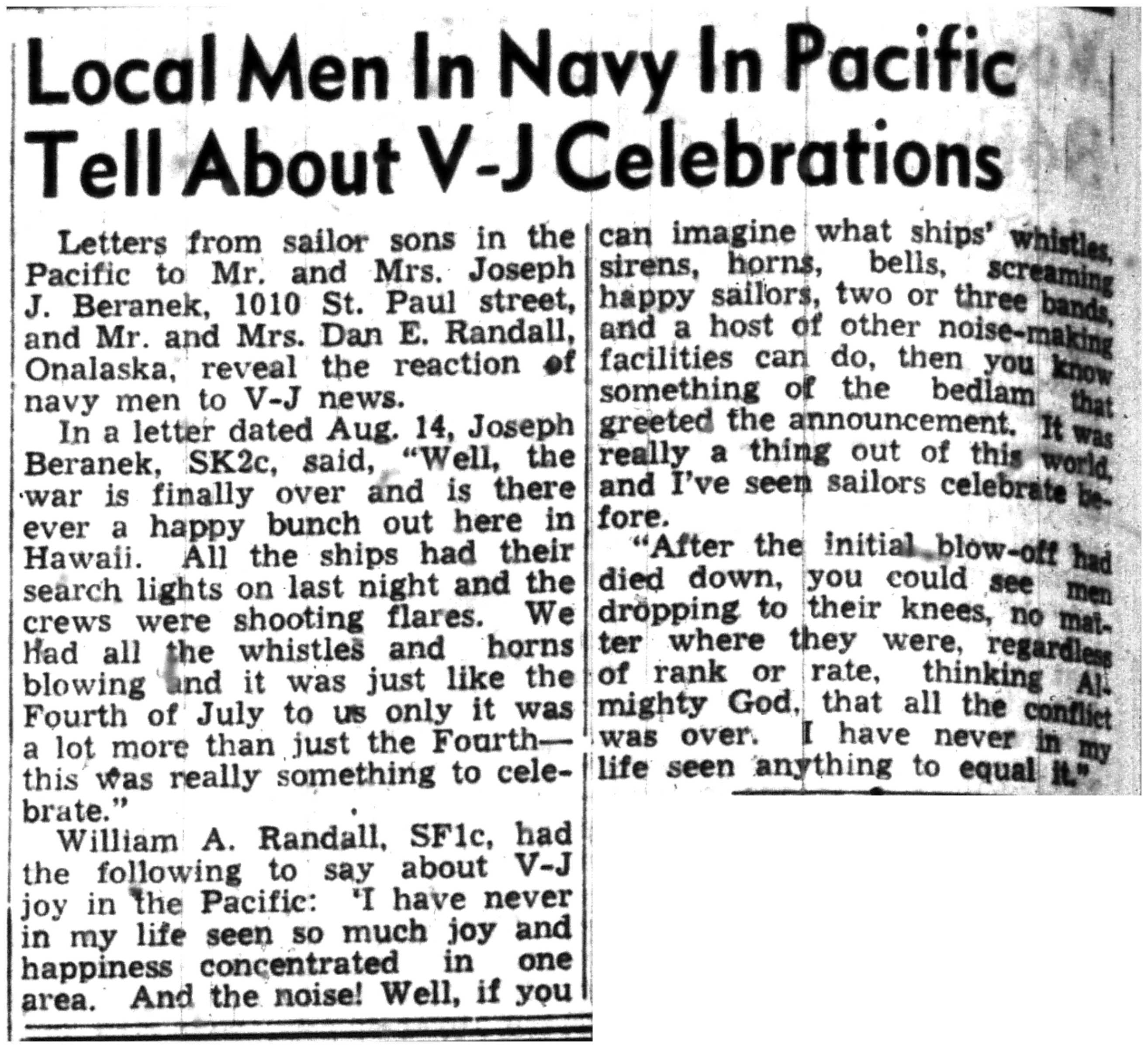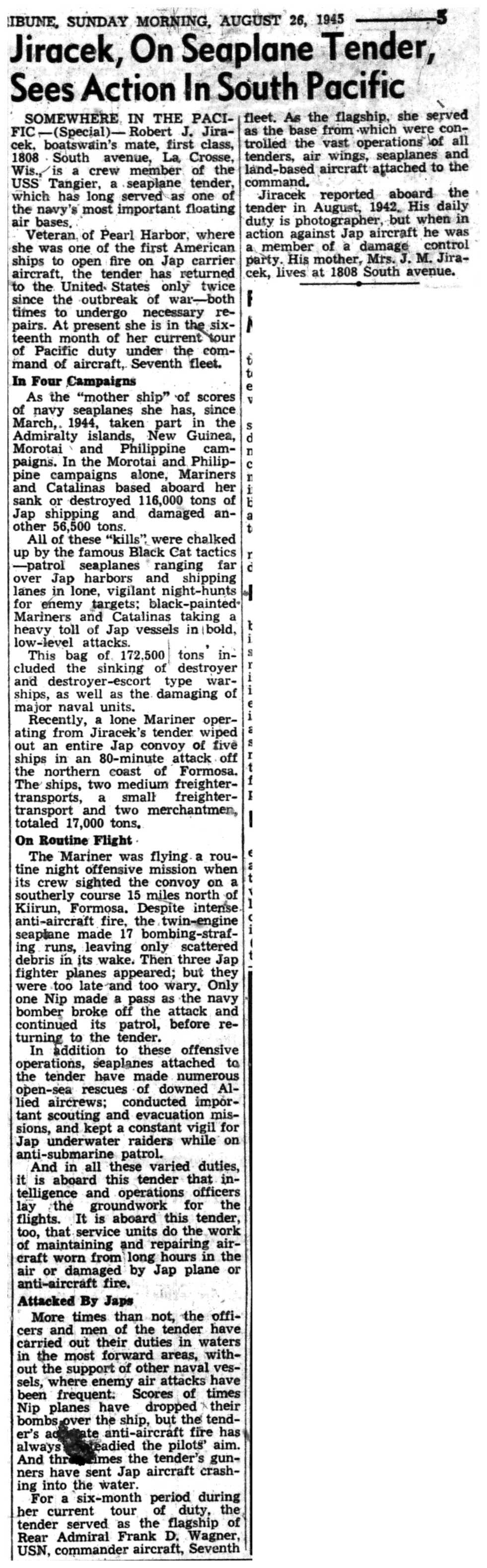 | 1945-8-12 | La Crosse Tribune p5 | |