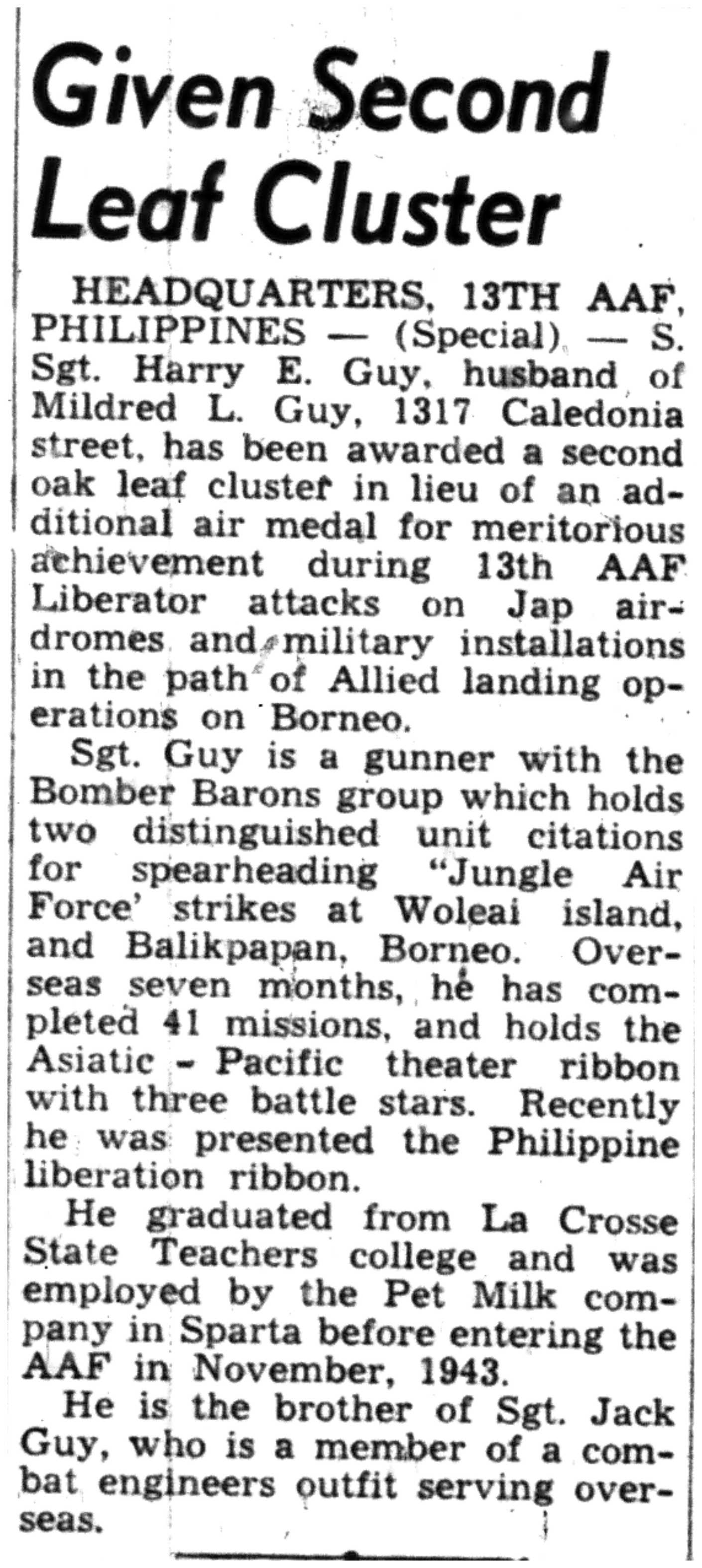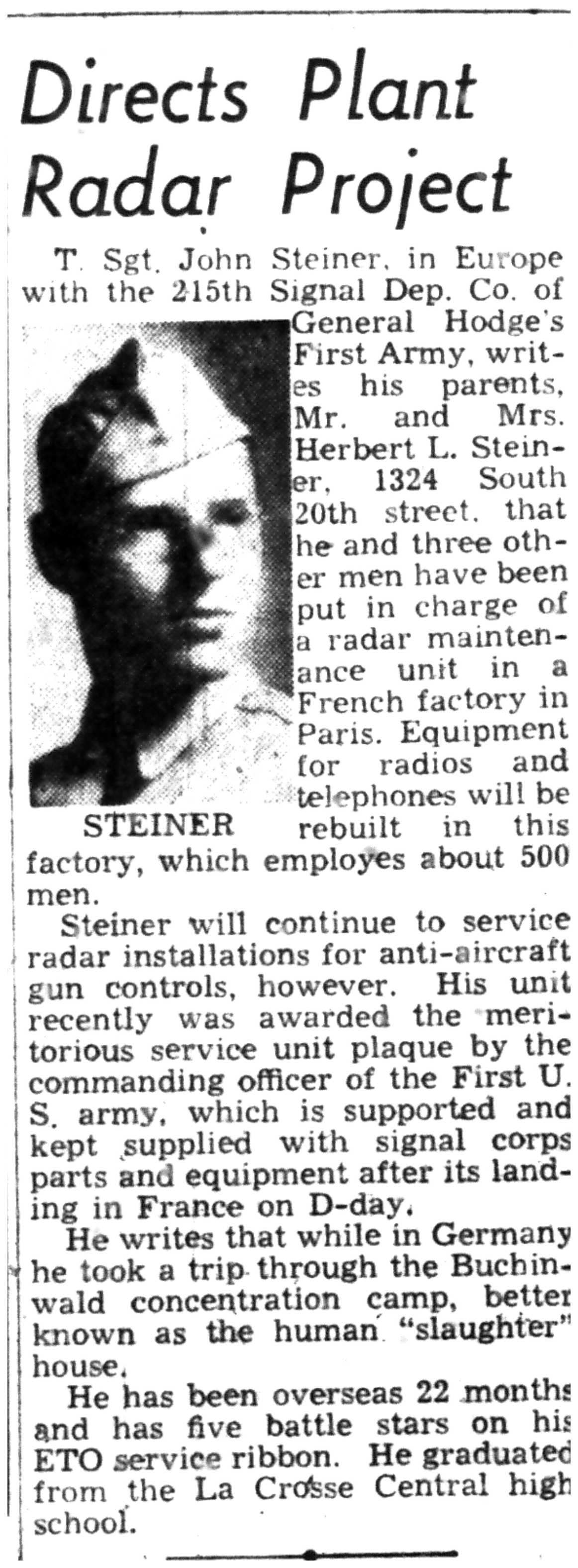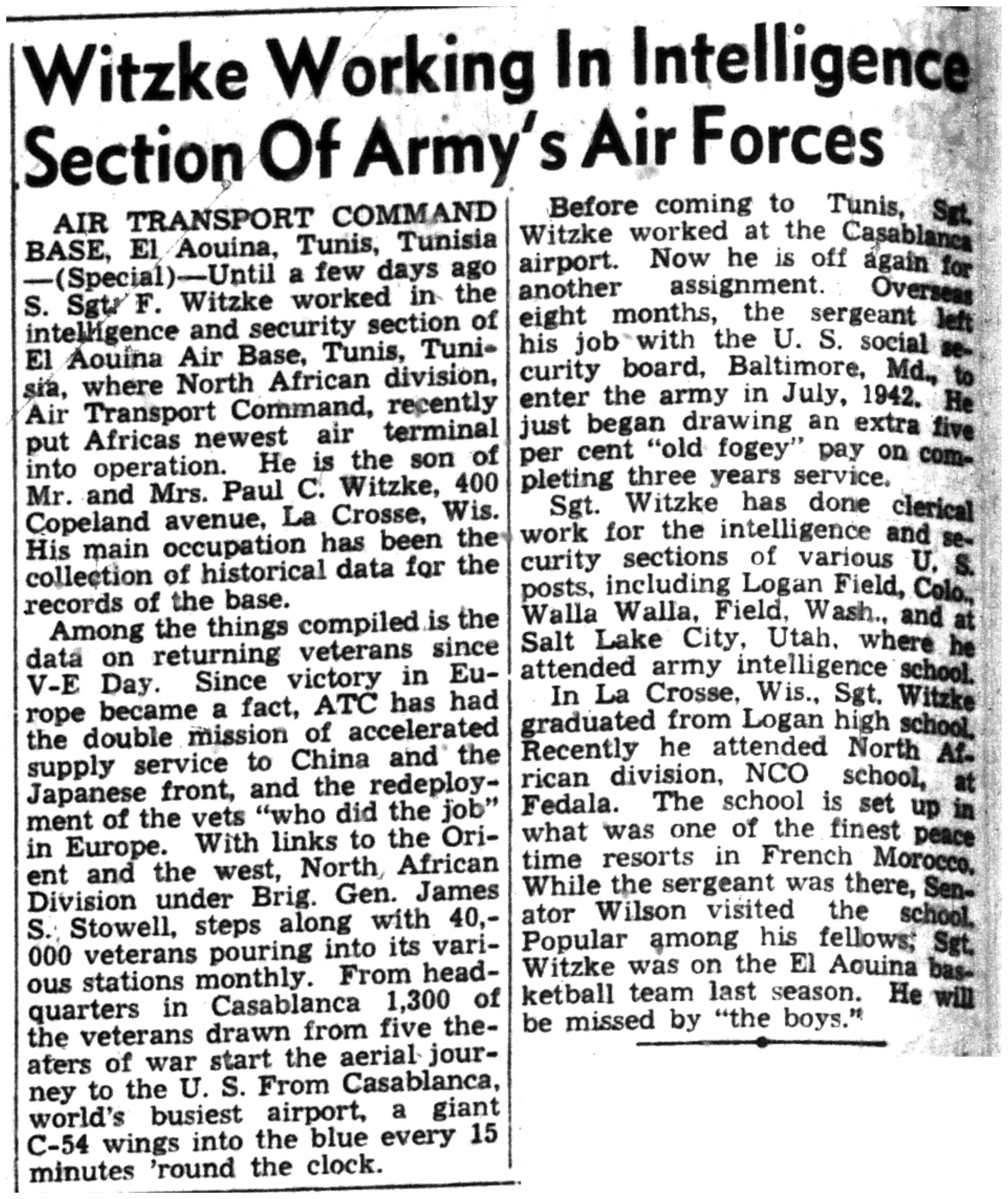 | 1945-8-2 | La Crosse Tribune p16 | |