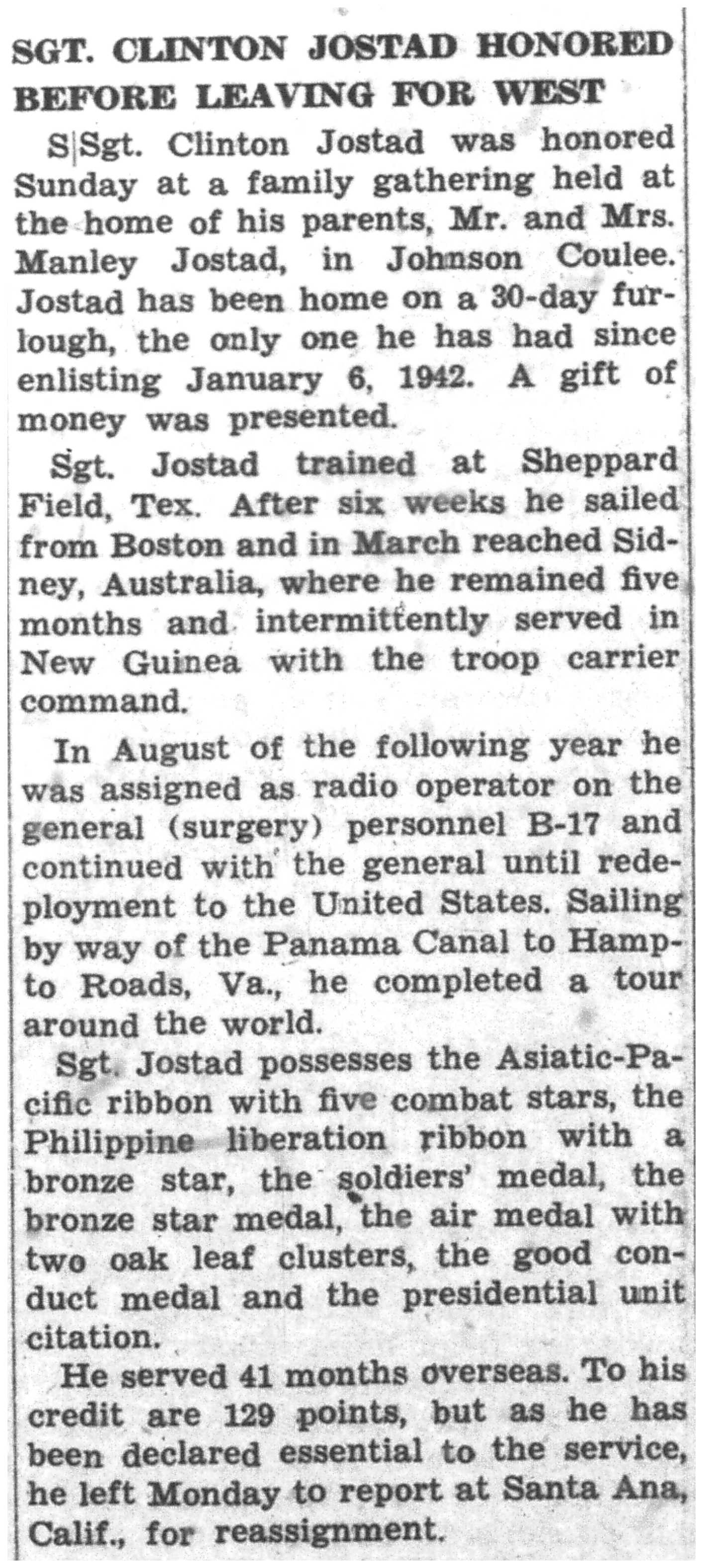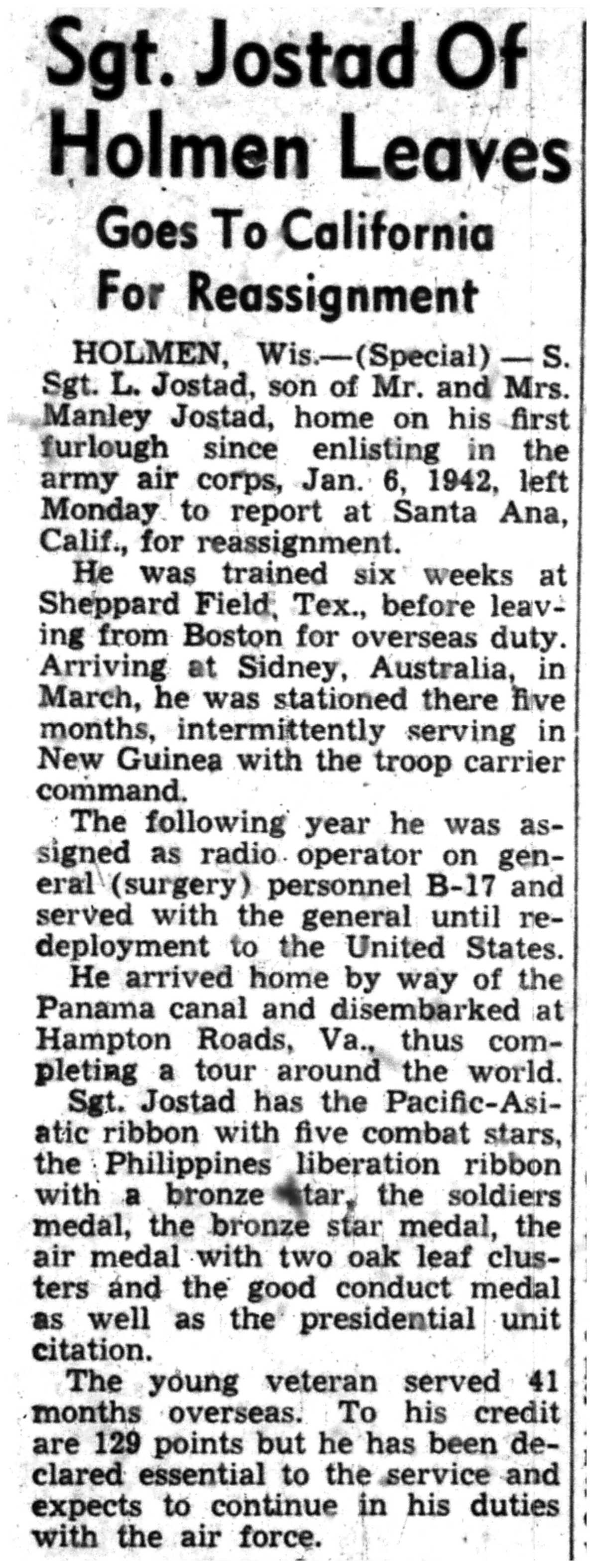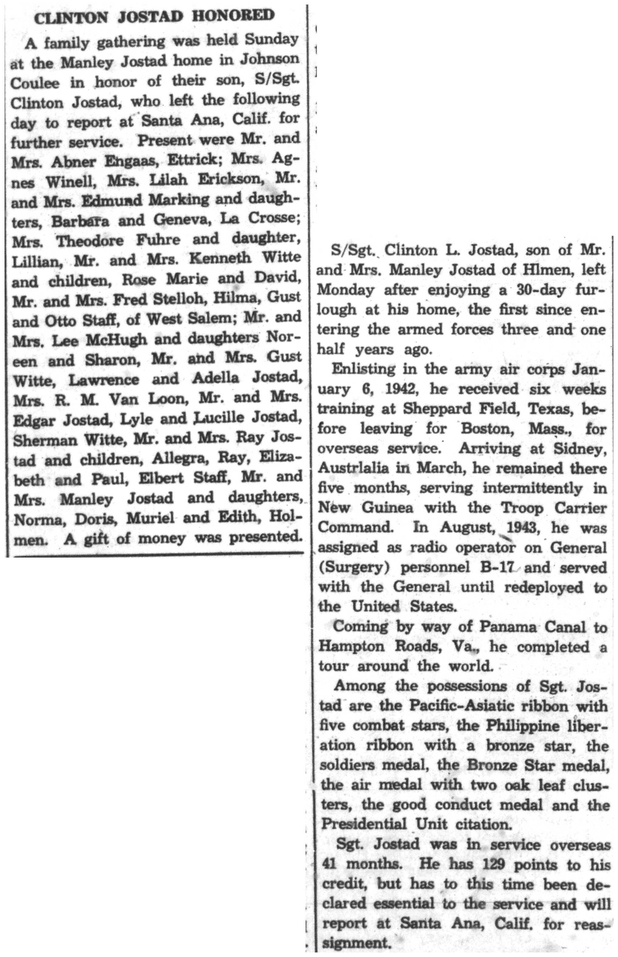| 1945-8-2 | La Crosse Tribune p16 | |