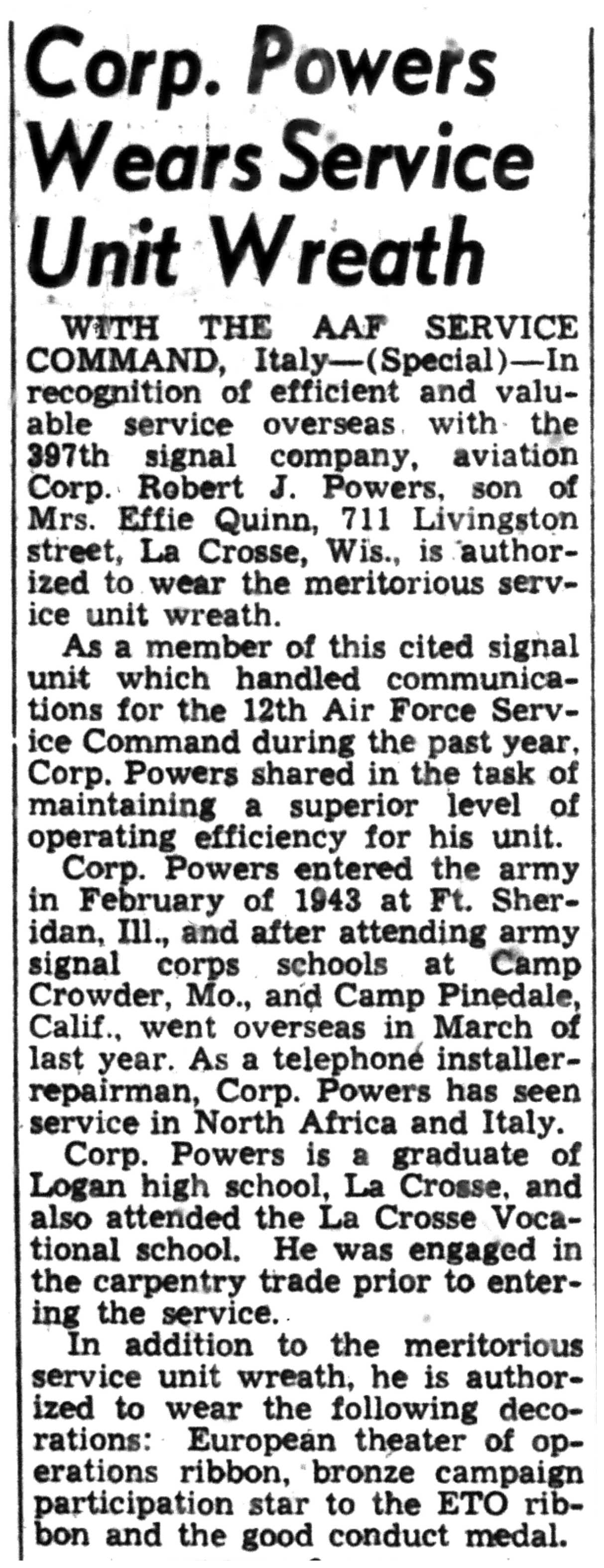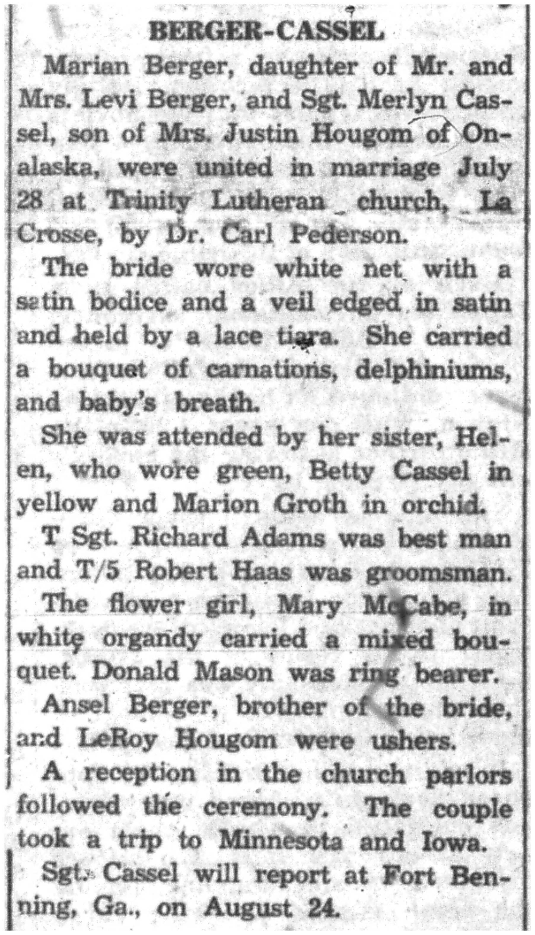 | 1945-8-30 | La Crosse Tribune p15 | |