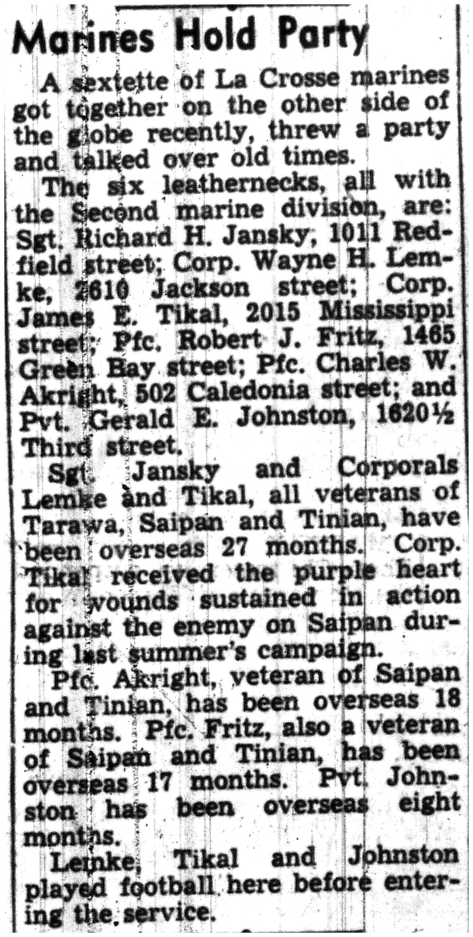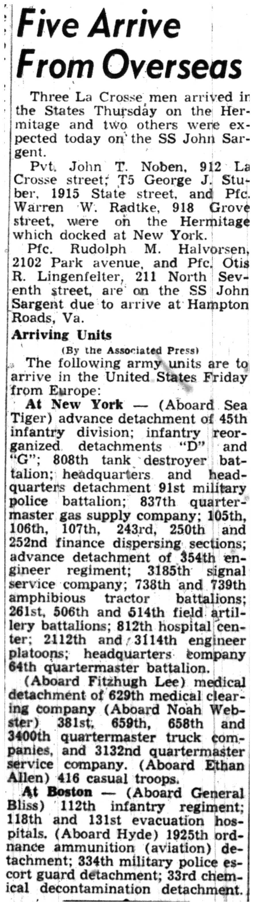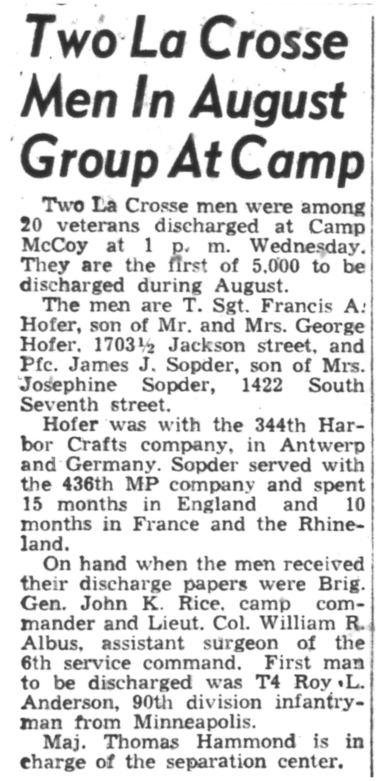 | 1945-8-5 | La Crosse Tribune p7 | |