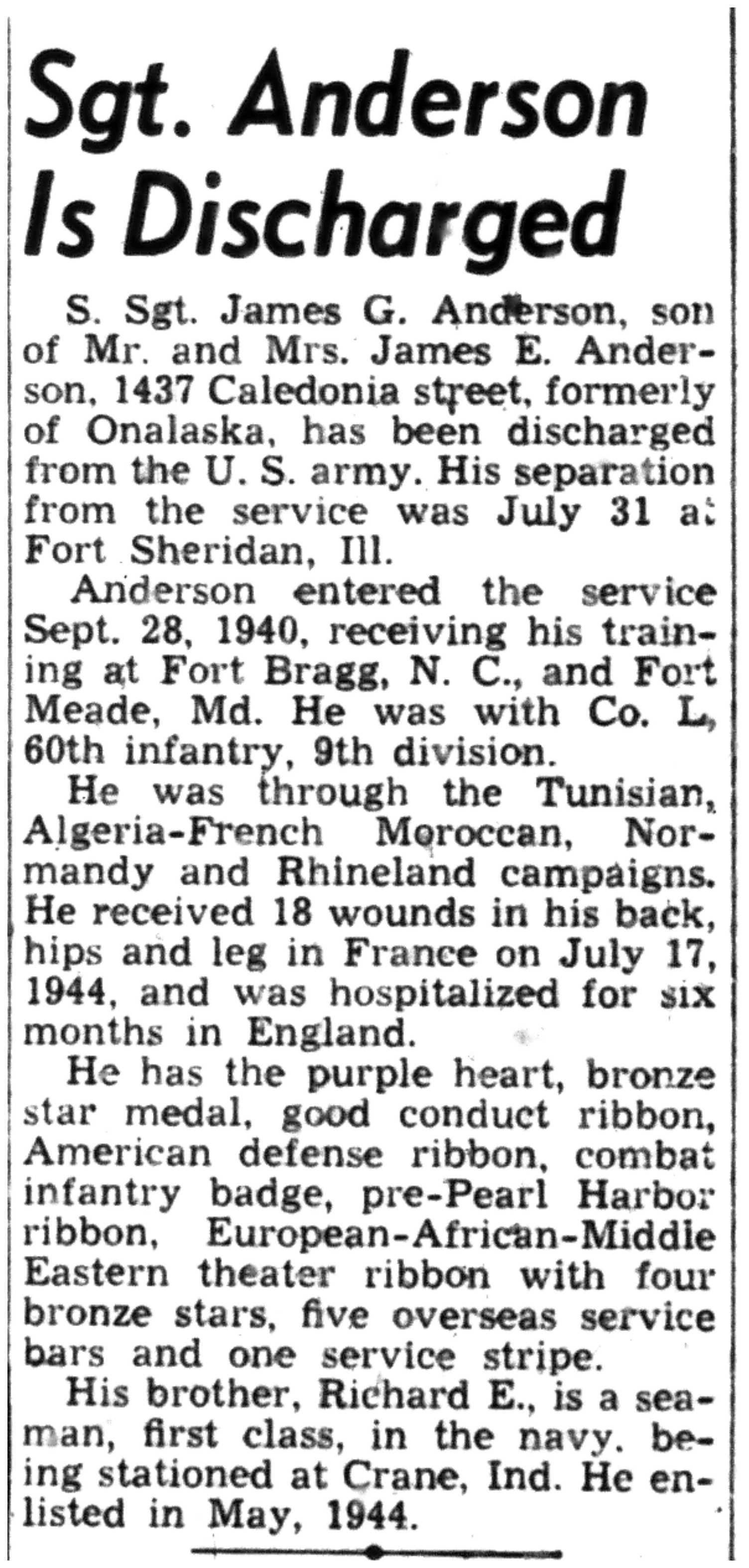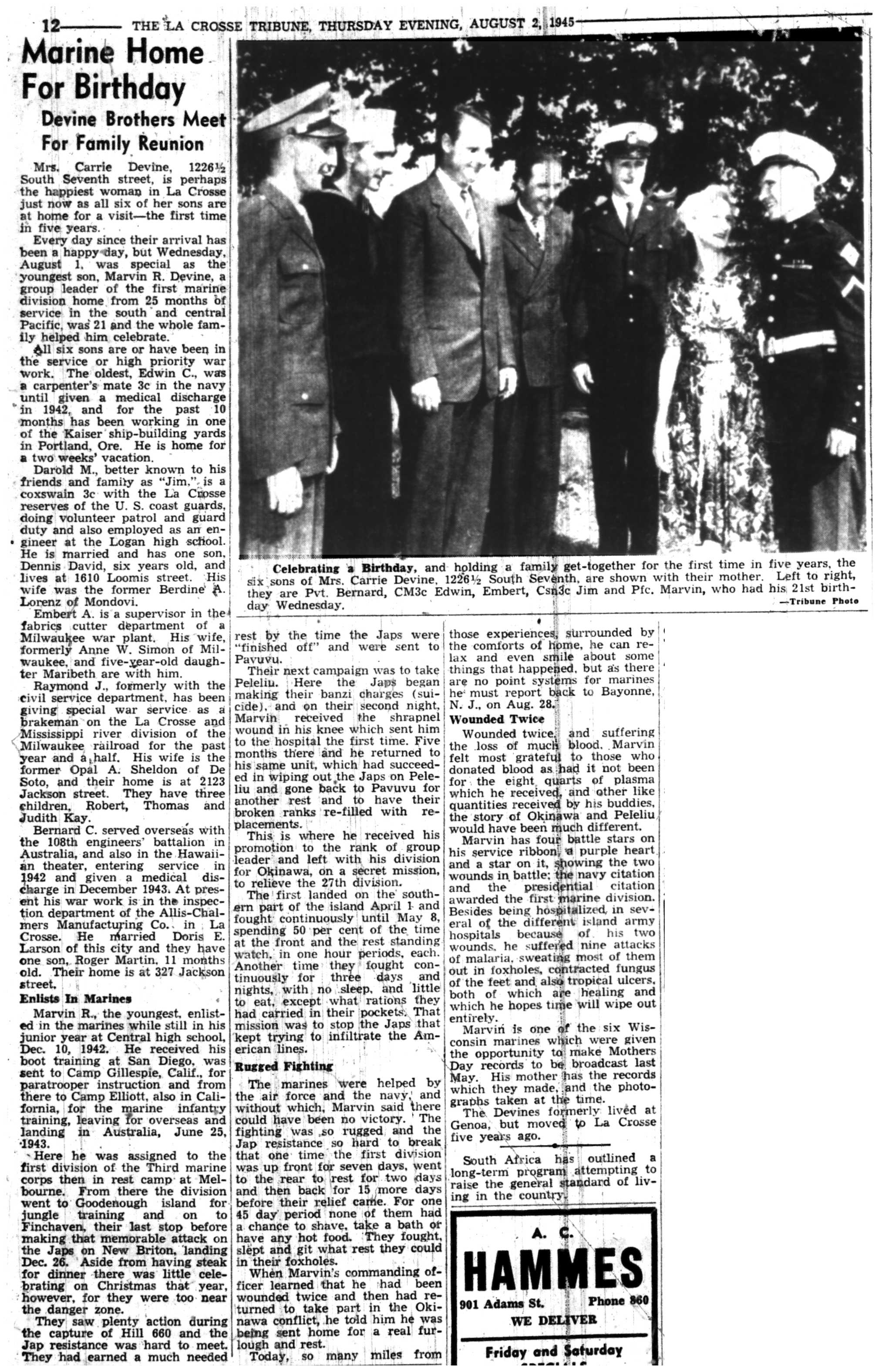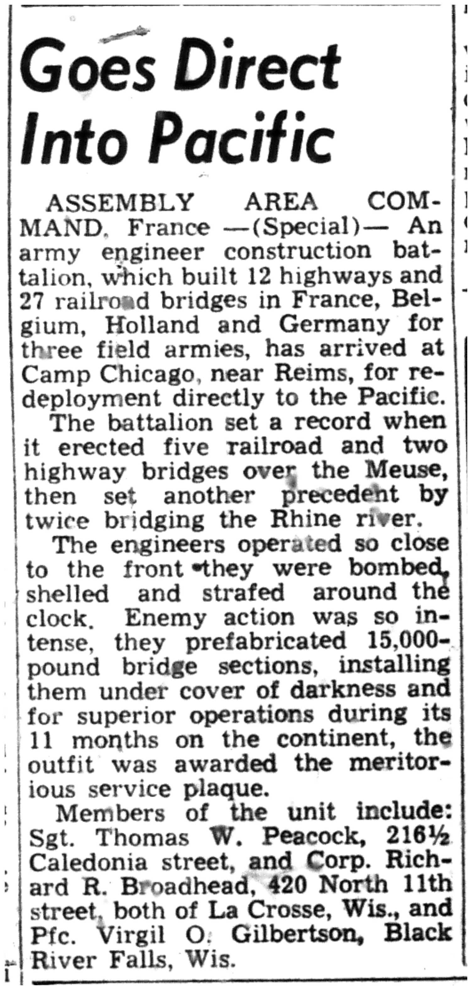 | 1945-8-5 | La Crosse Tribune p7 | |
