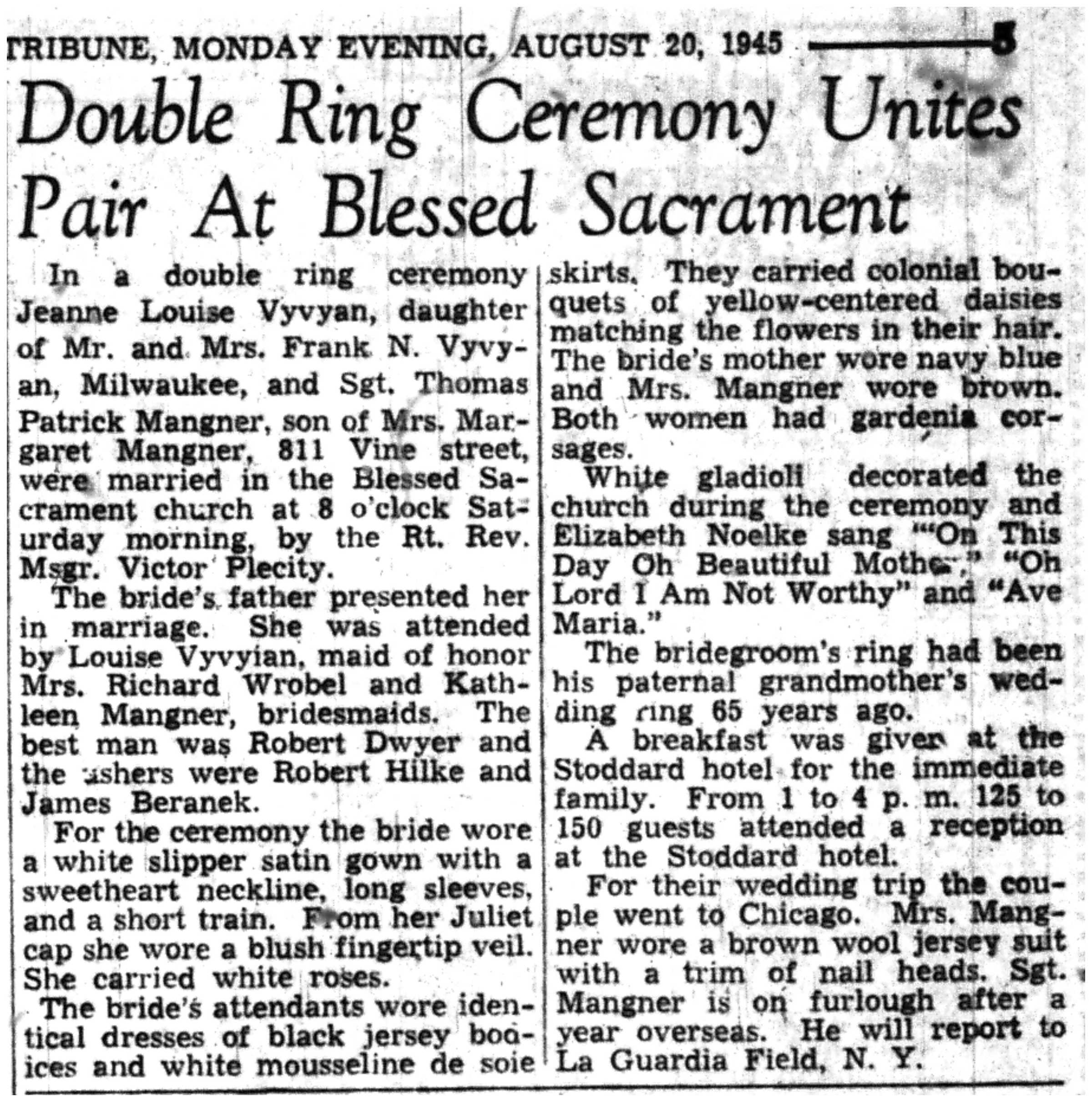 | 1945-8-22 | La Crosse Tribune p11 | |