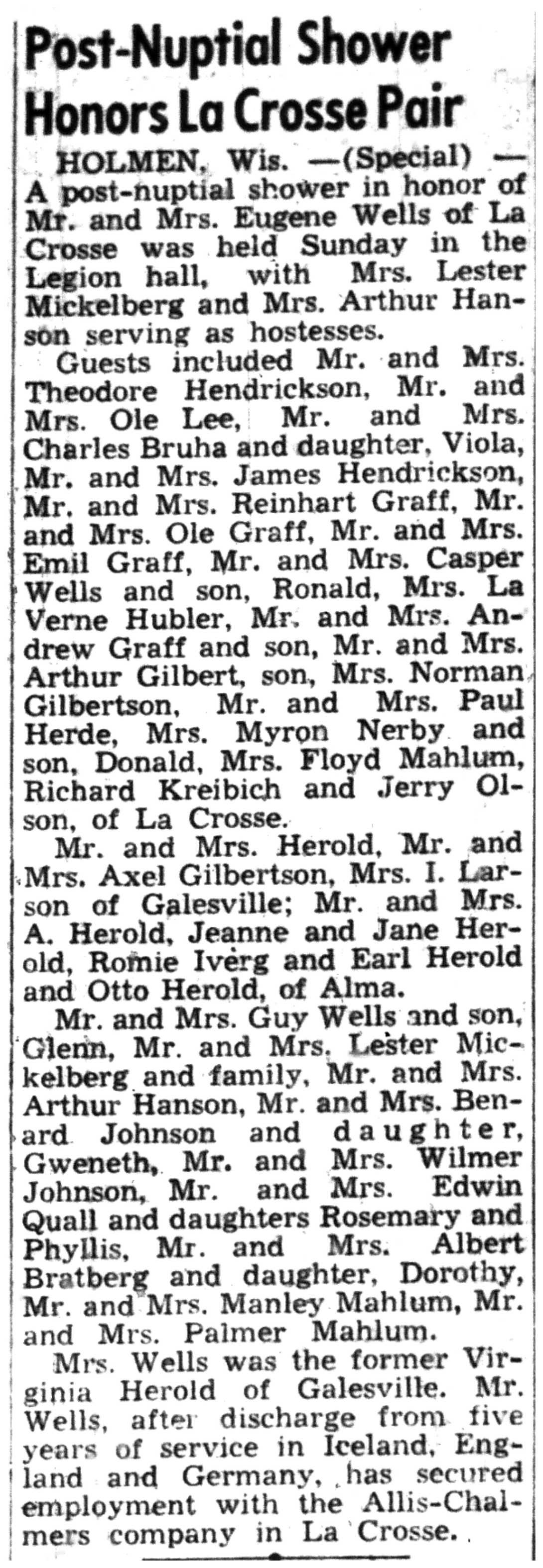 | 1945-8-26 | La Crosse Tribune p14 | |