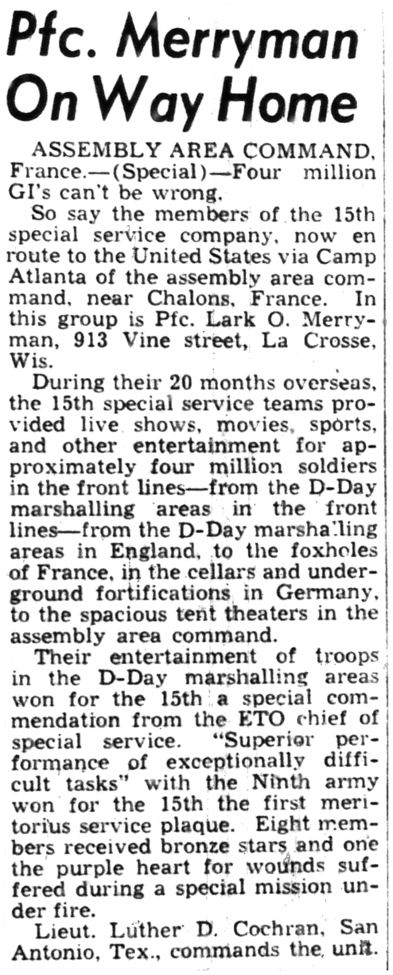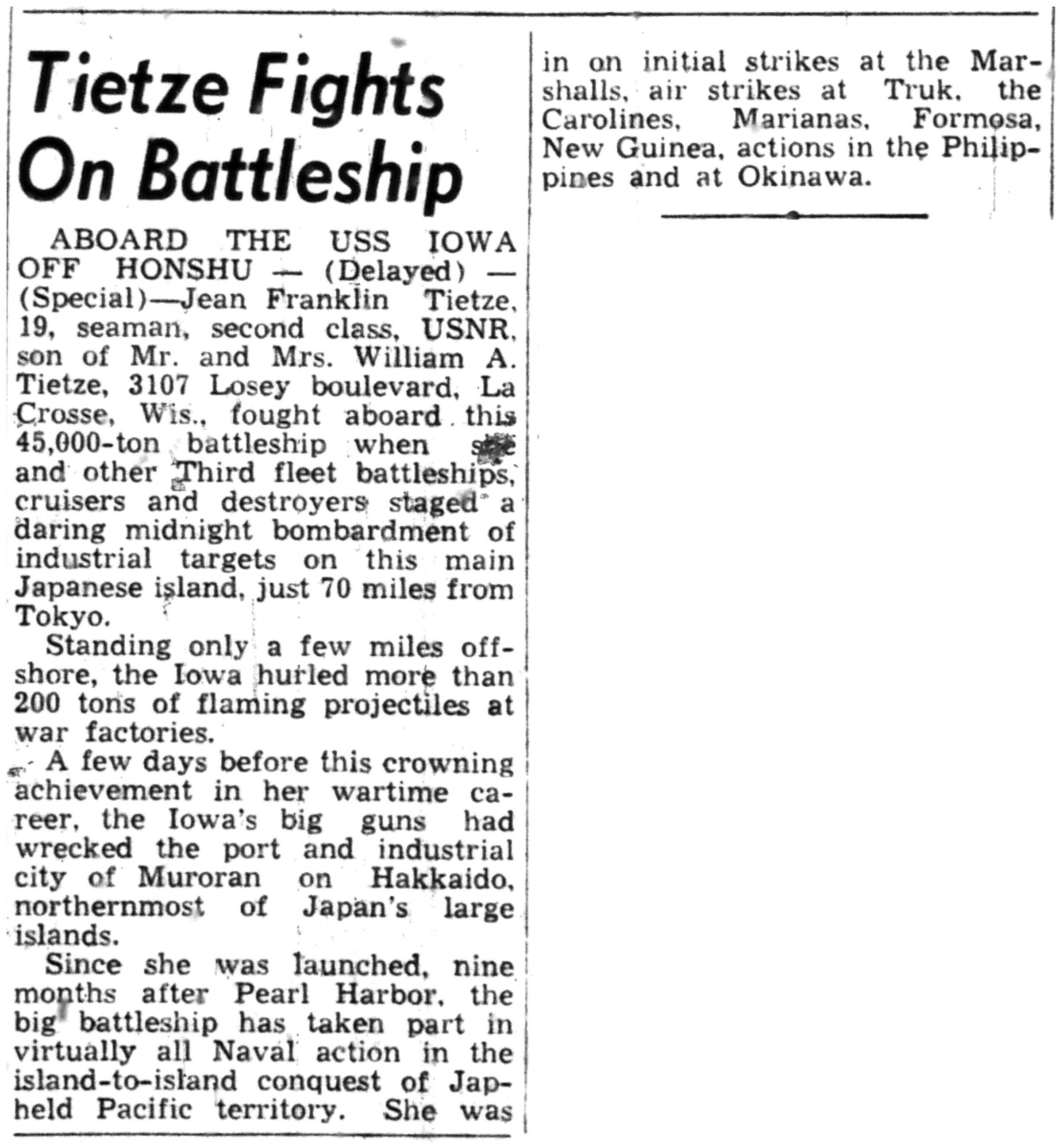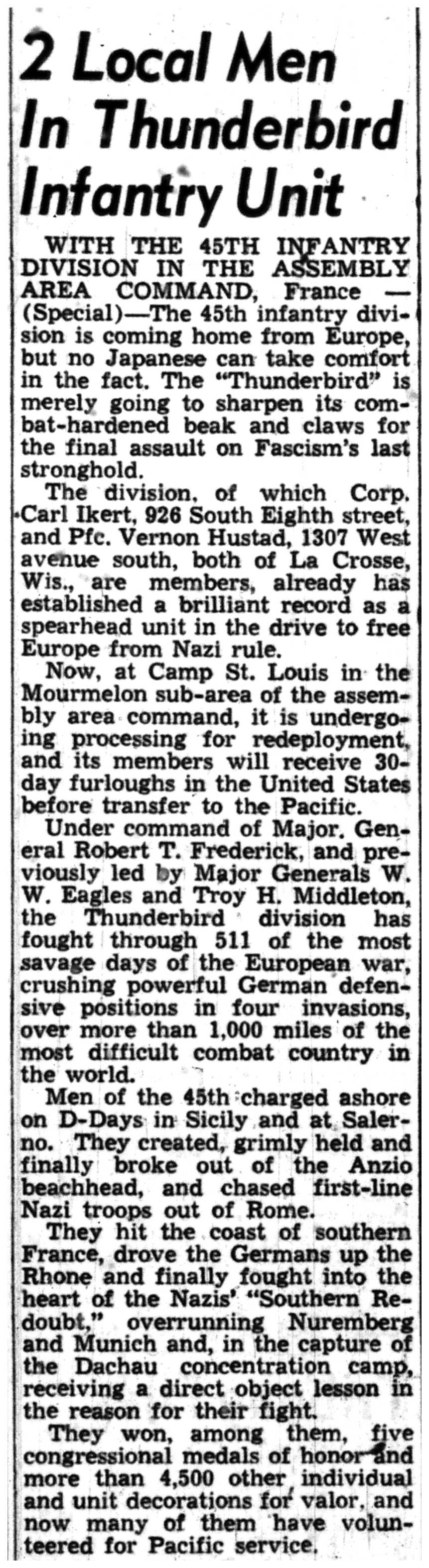 | 1945-8-1 | La Crosse Tribune p2 | |