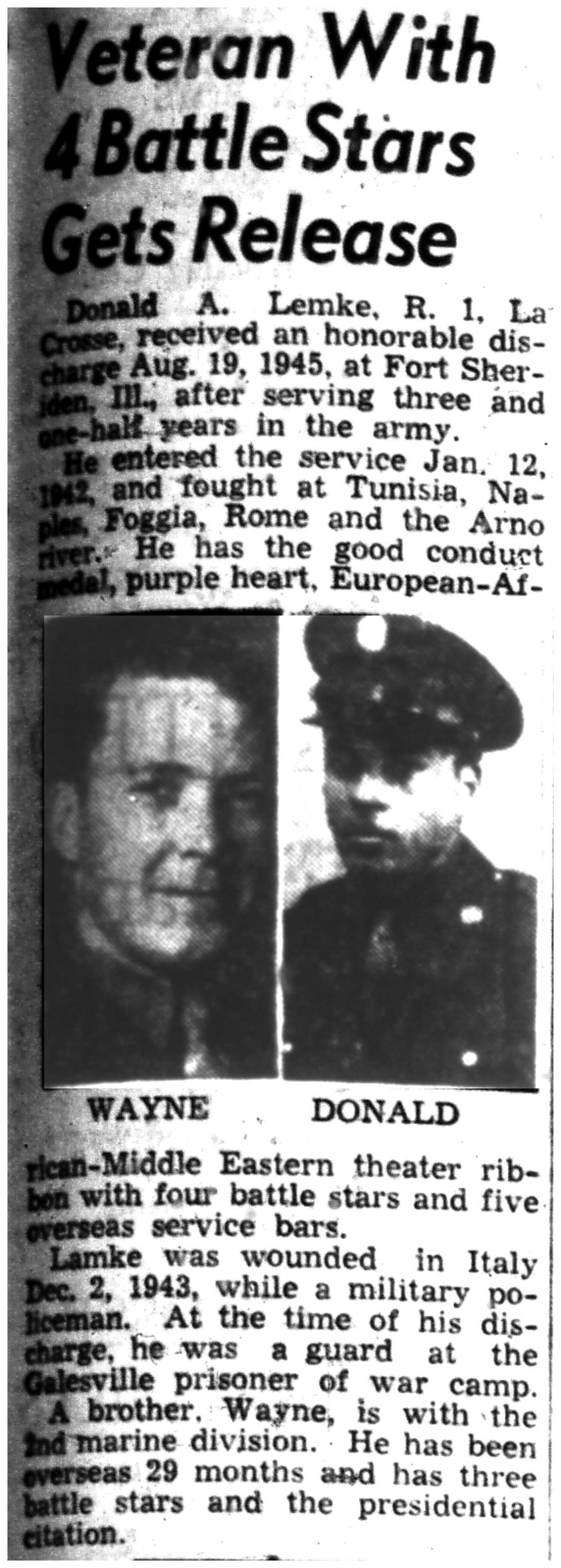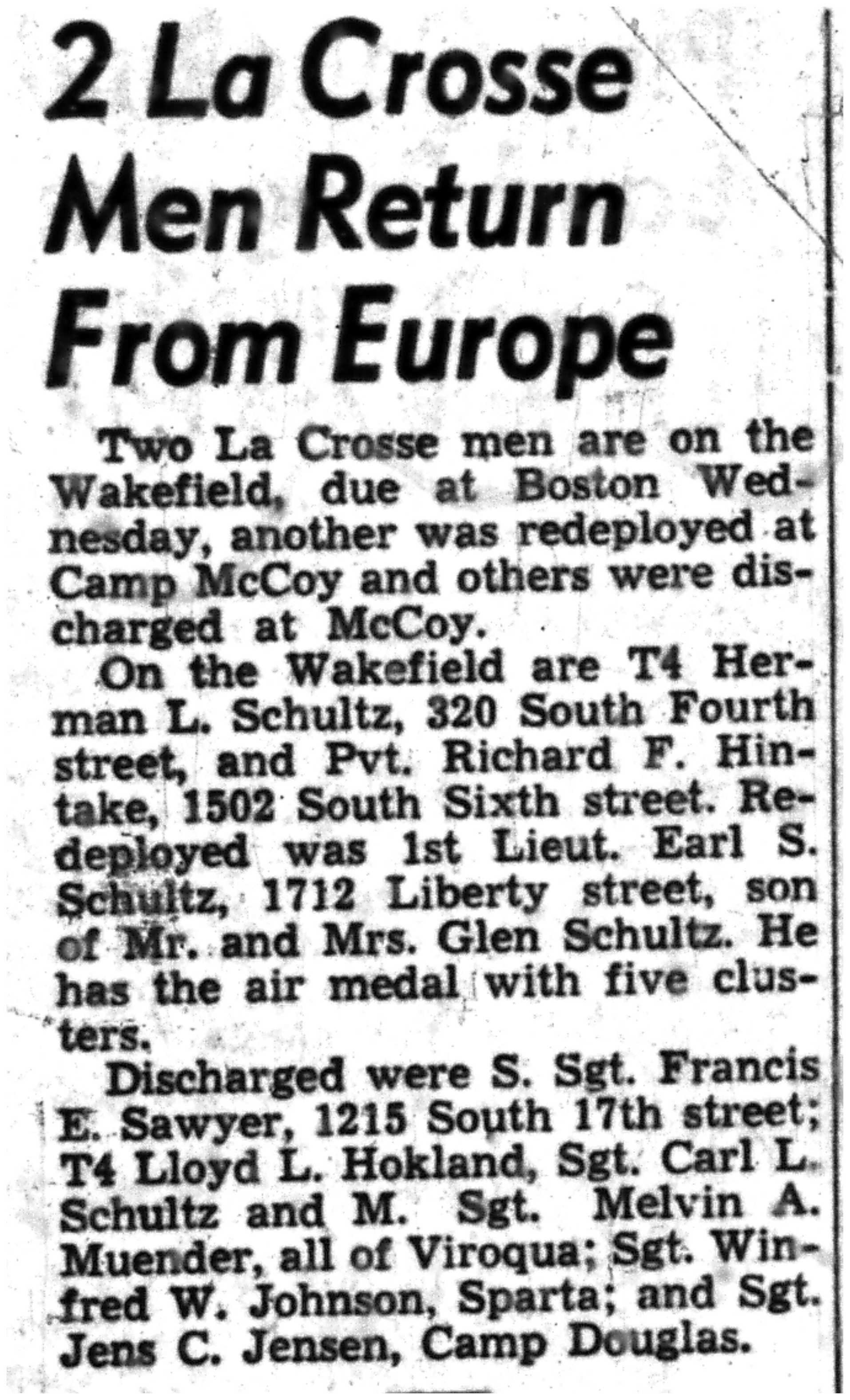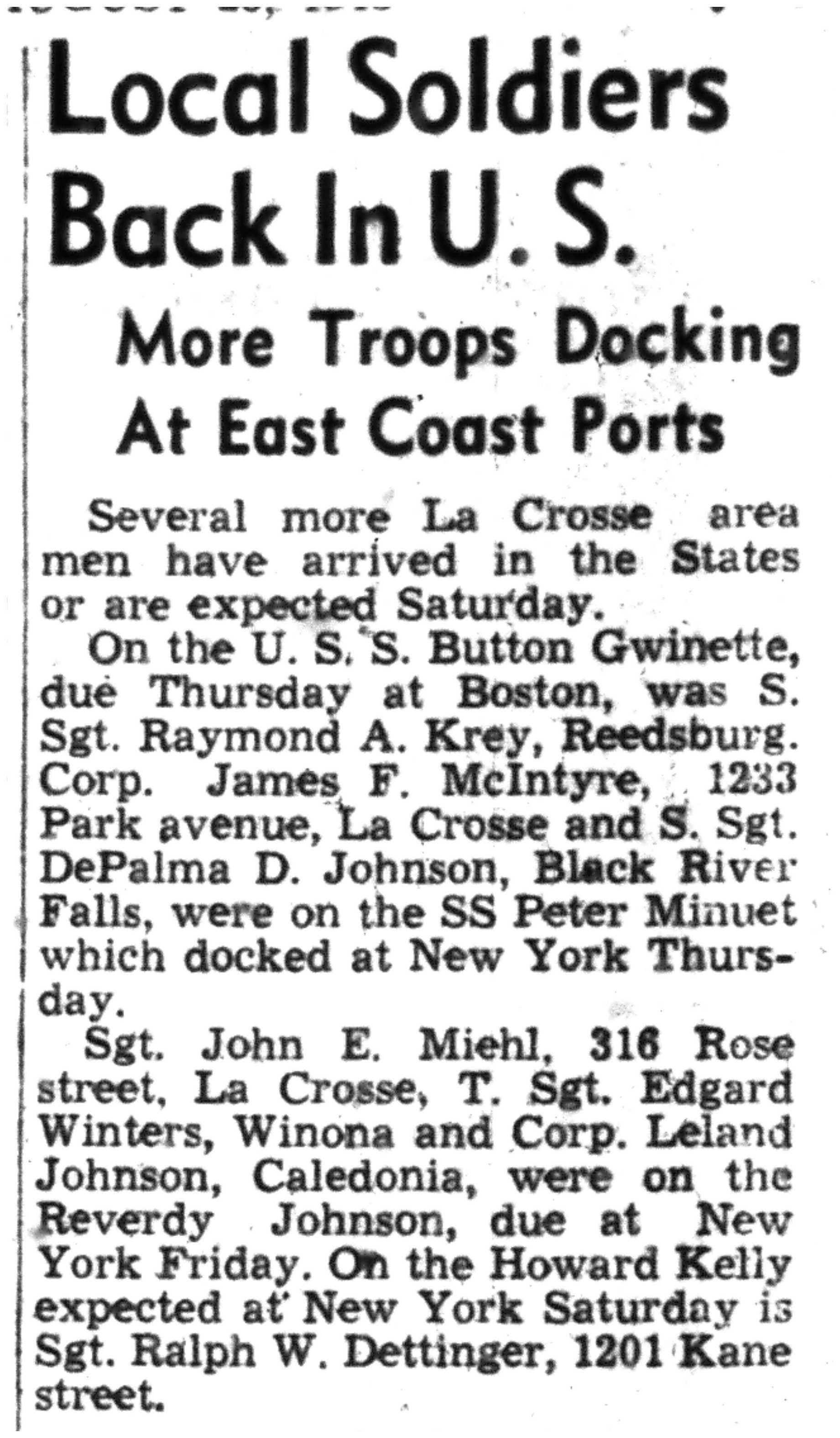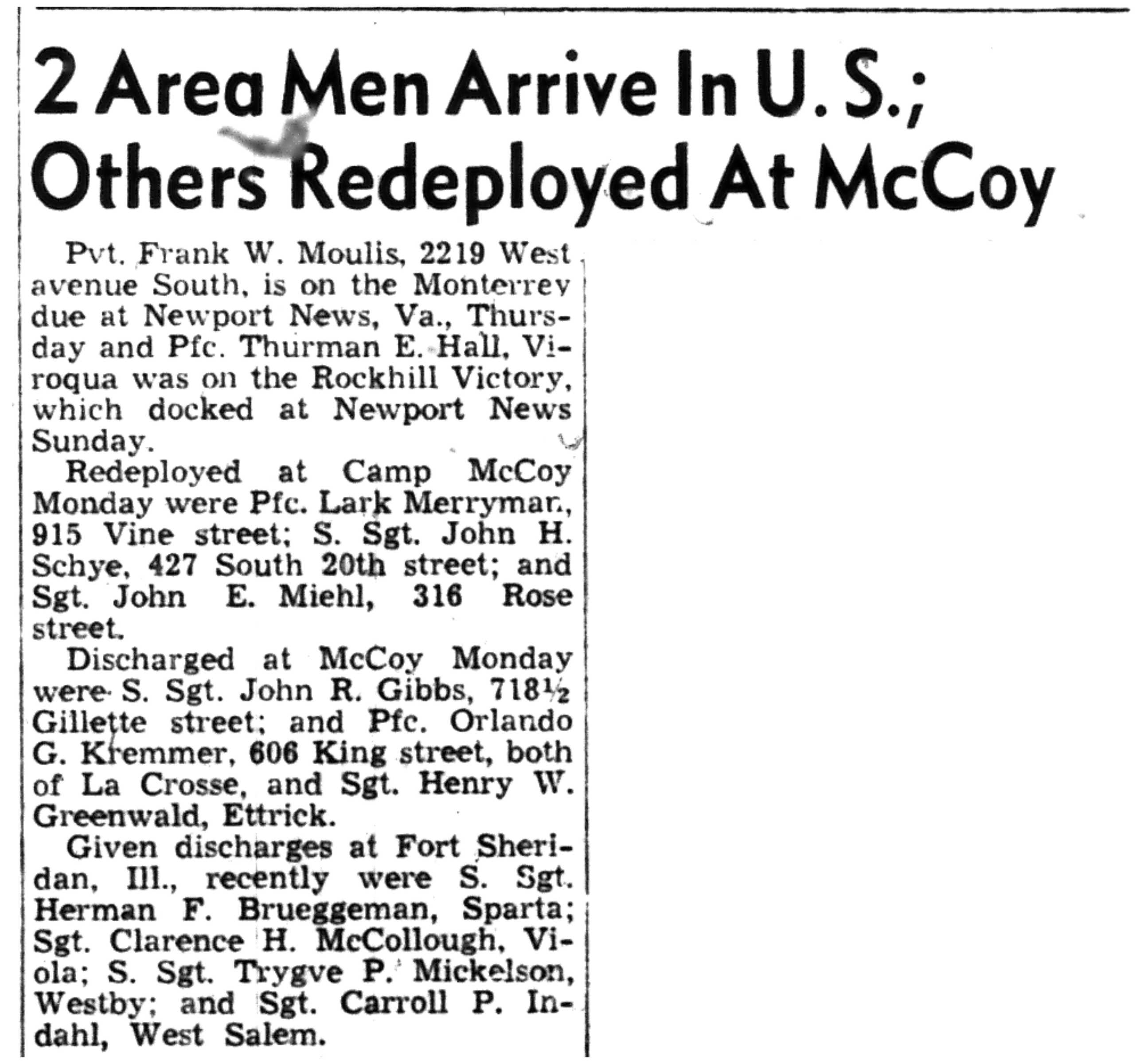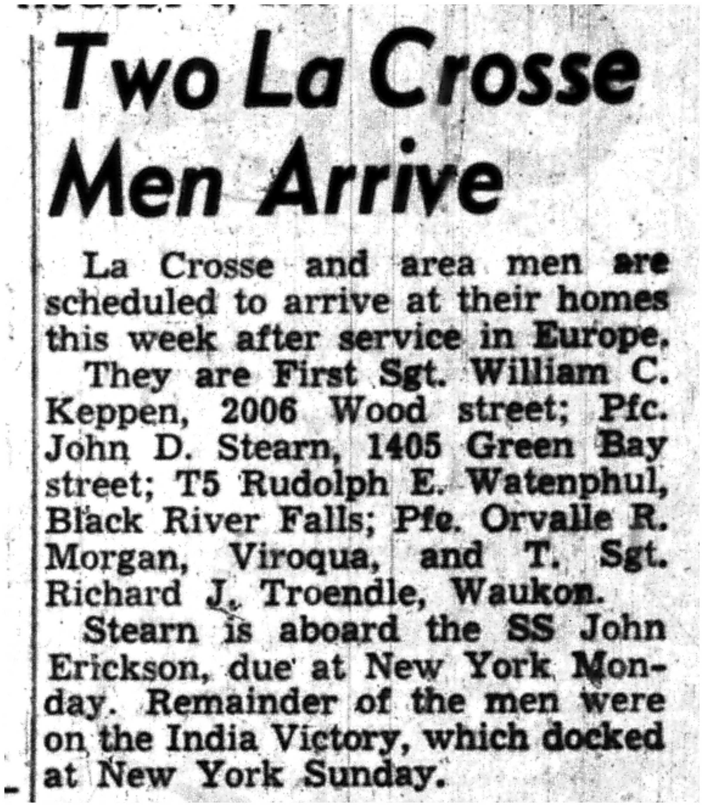 | 1945-8-4 | La Crosse Tribune p2 | |