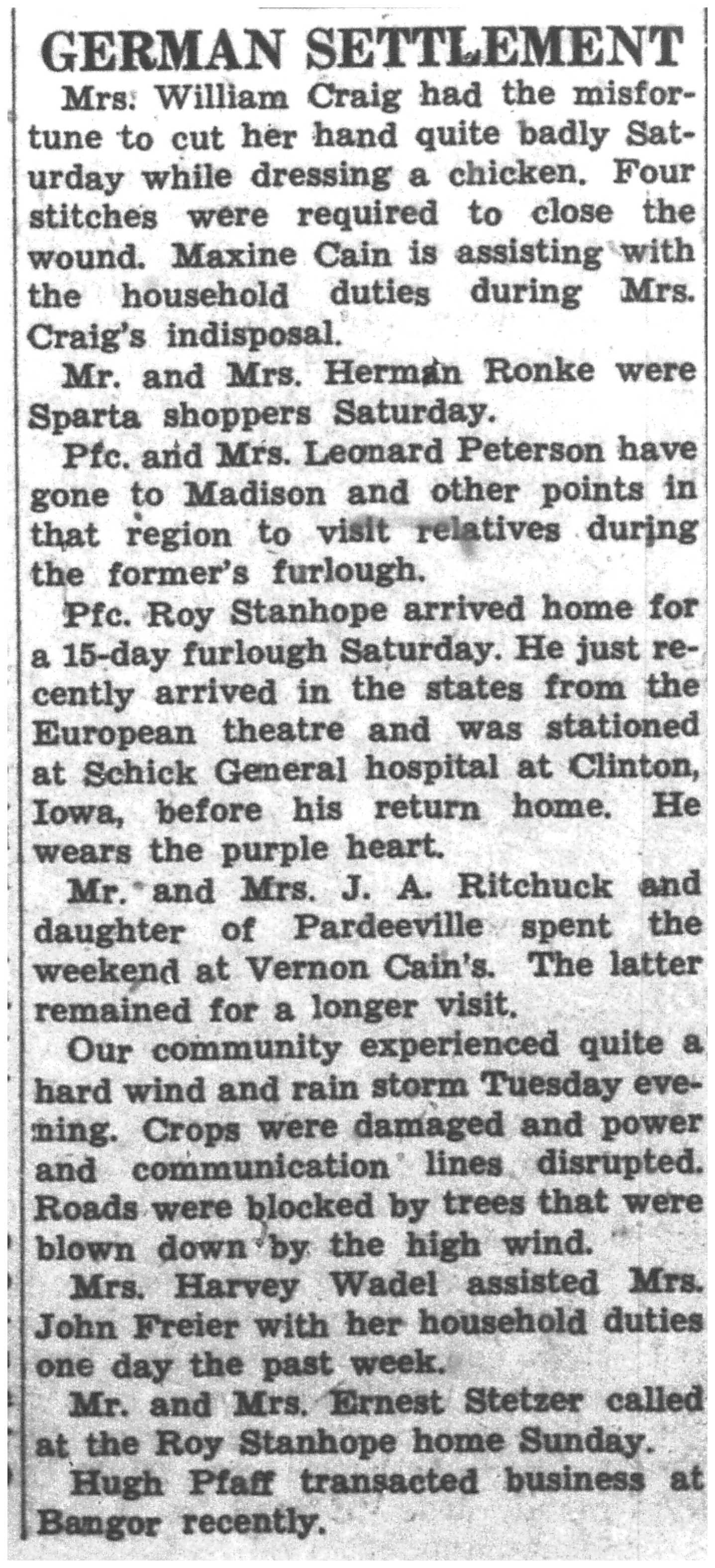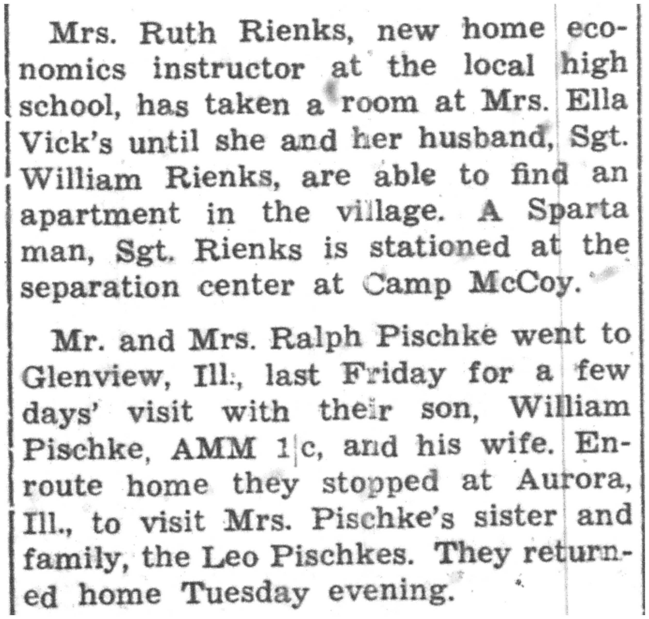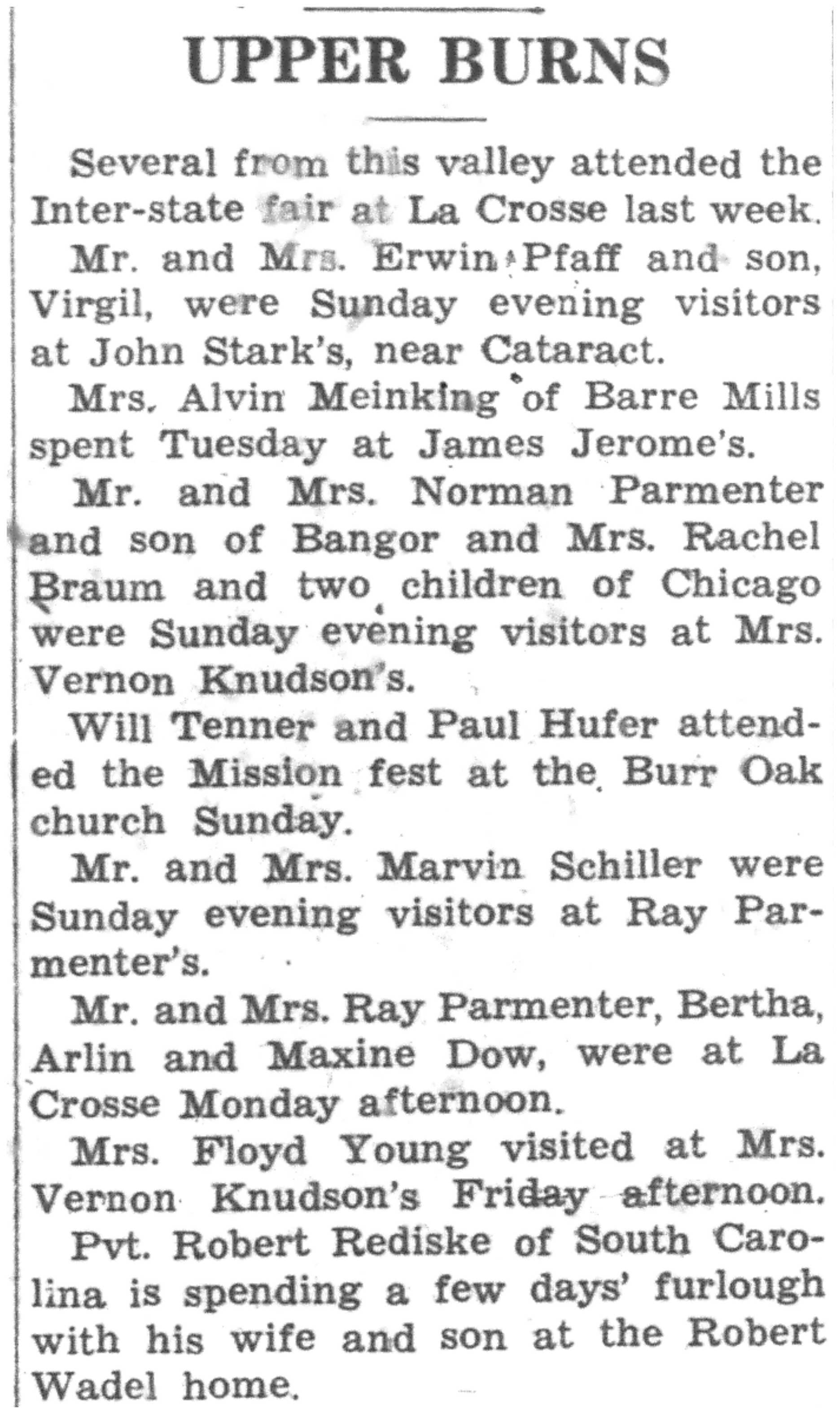 | 1945-8-30 | La Crosse County Record p8 | |