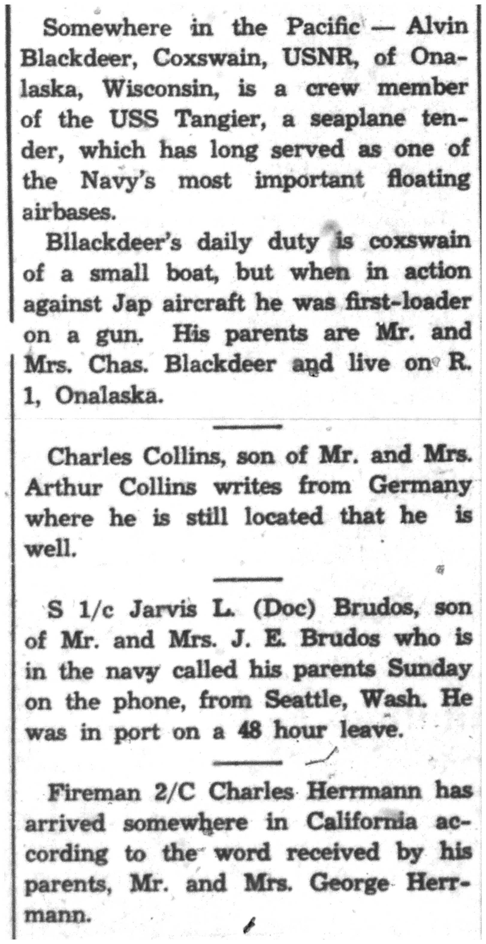 | 1945-8-11 | La Crosse Tribune p7 |