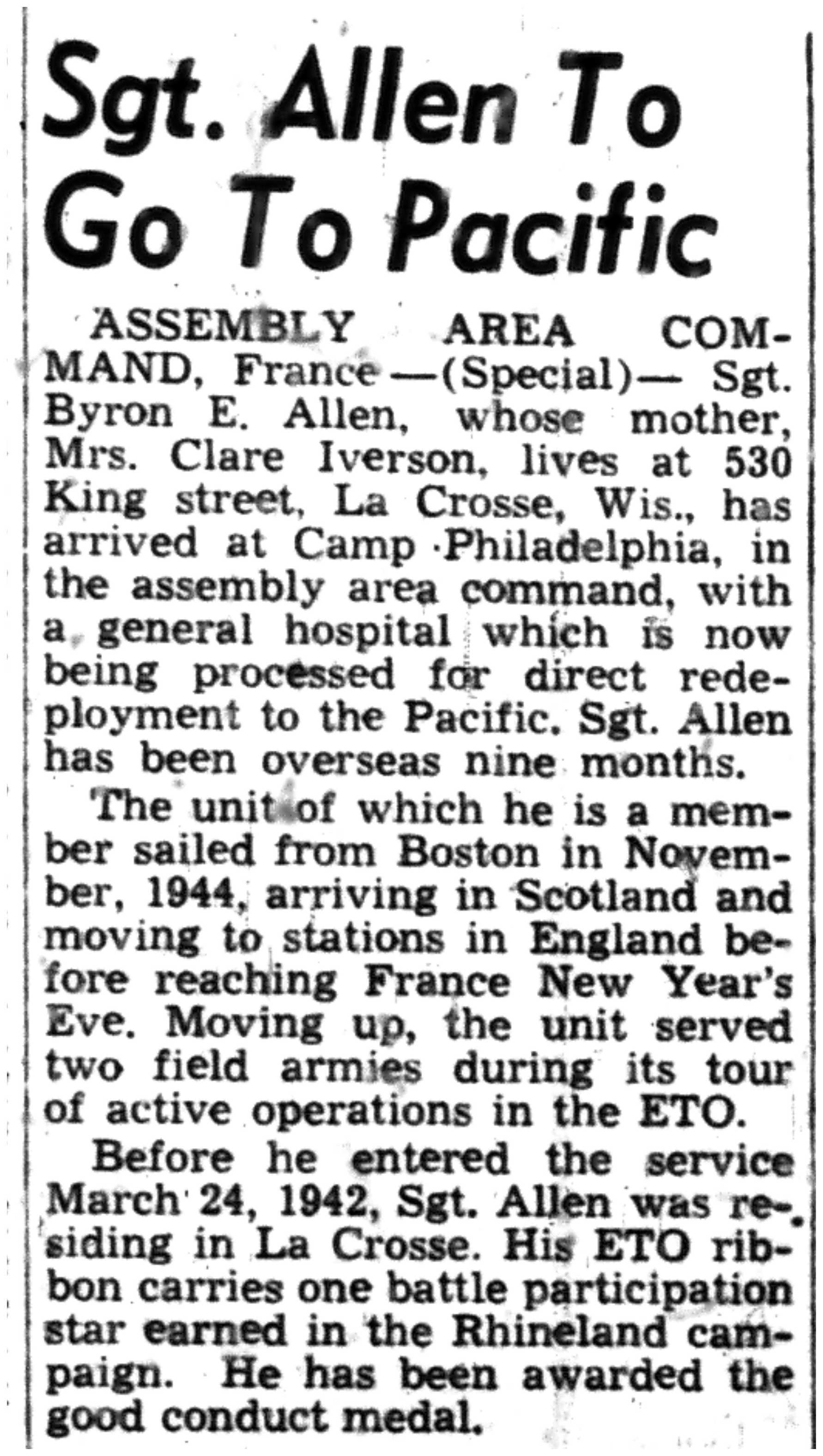 | 1945-8-8 | La Crosse Tribune p5 | |