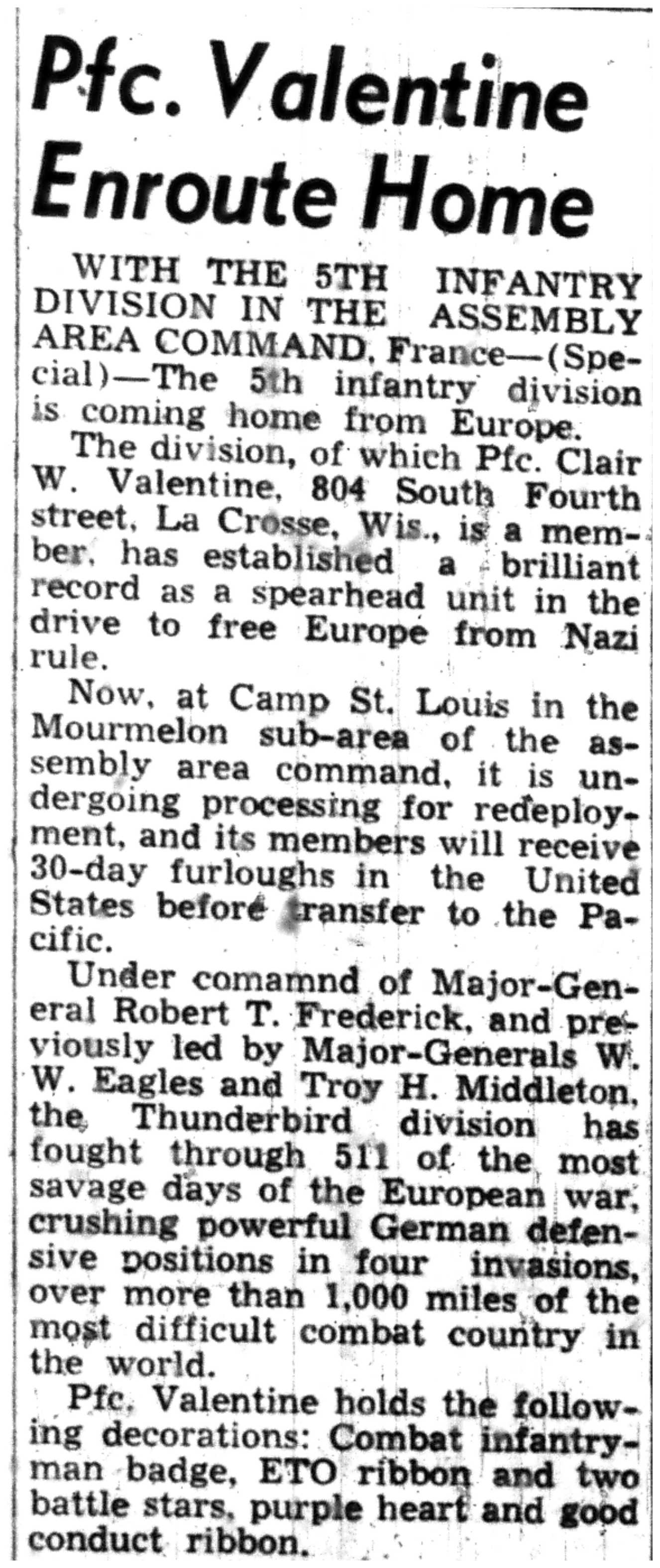 | 1945-8-3 | La Crosse Tribune p5 | |