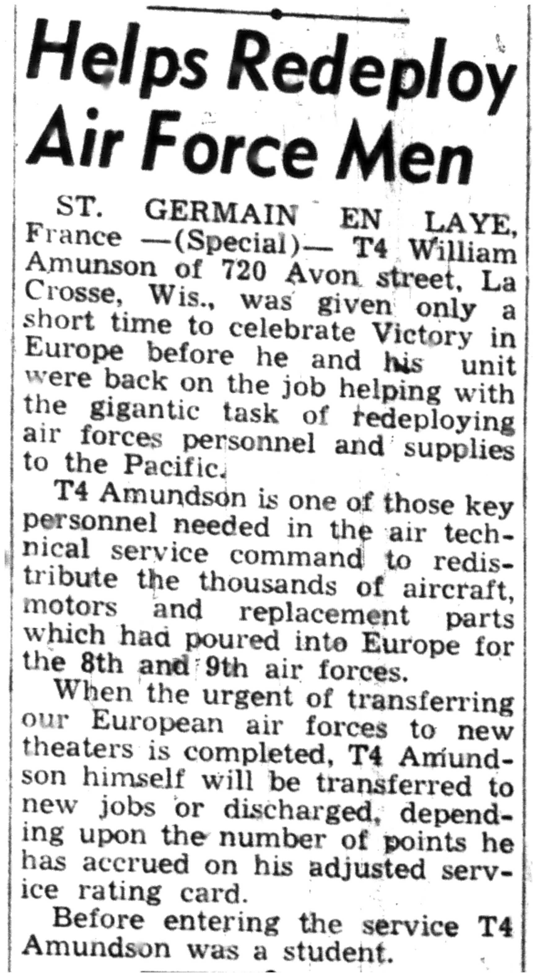 | 1945-8-8 | La Crosse Tribune p3 | |