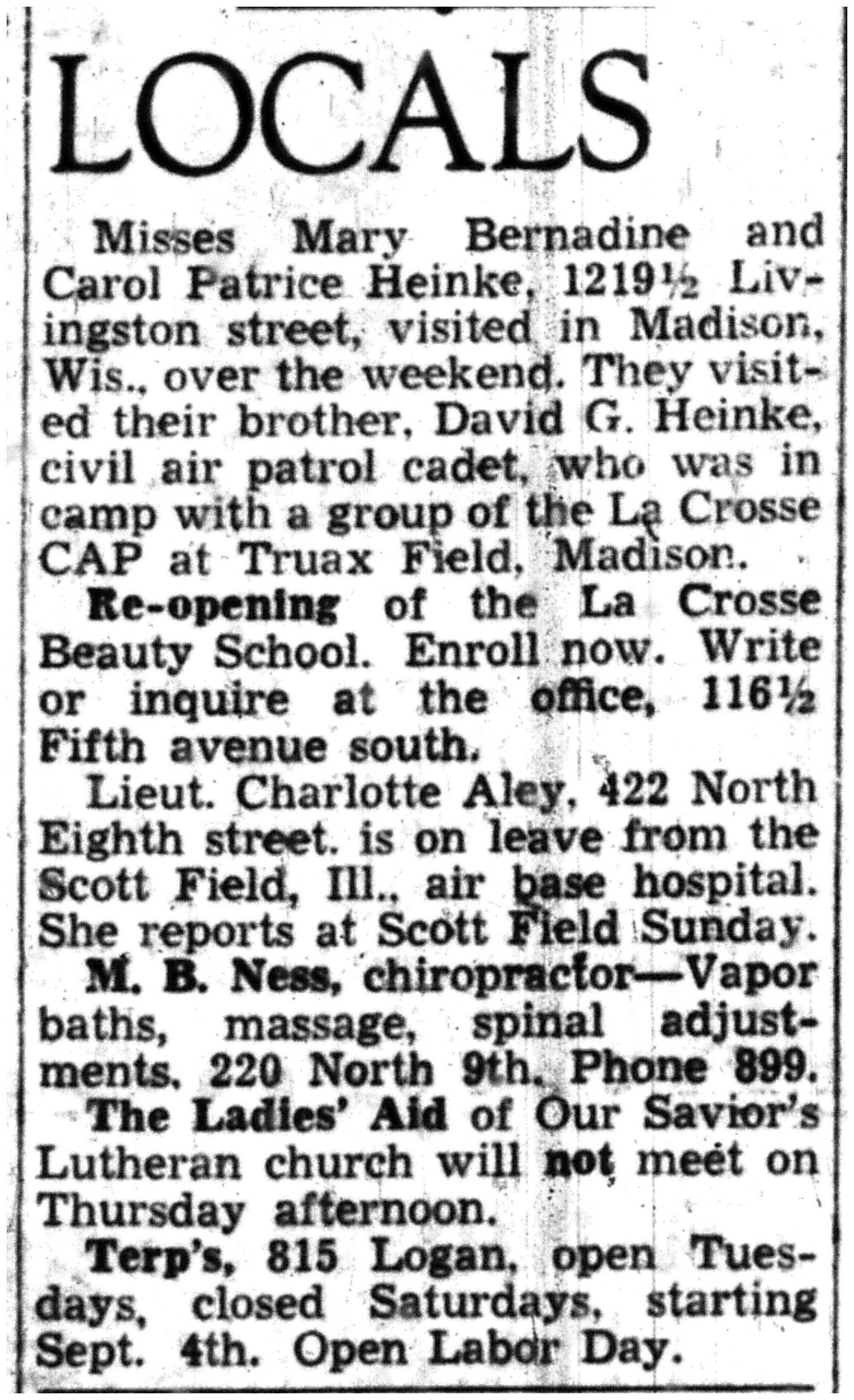 | 1945-8-30 | La Crosse Tribune p8 | |
