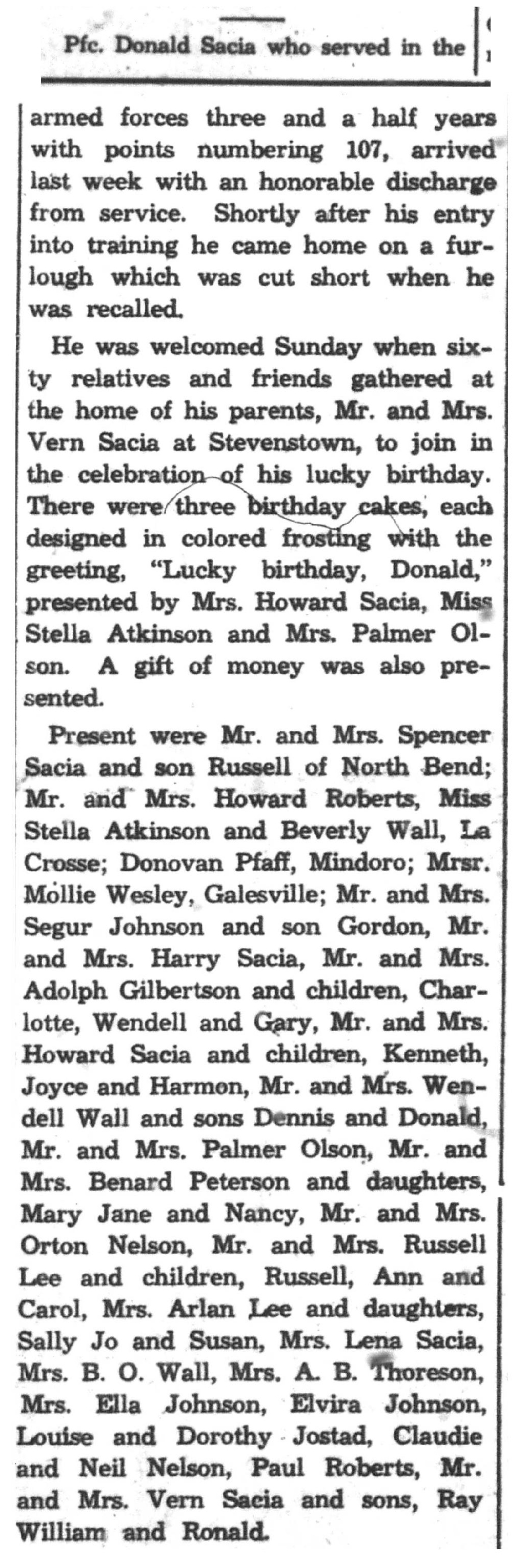 | 1945-8-23 | La Crosse County Record p5 | |