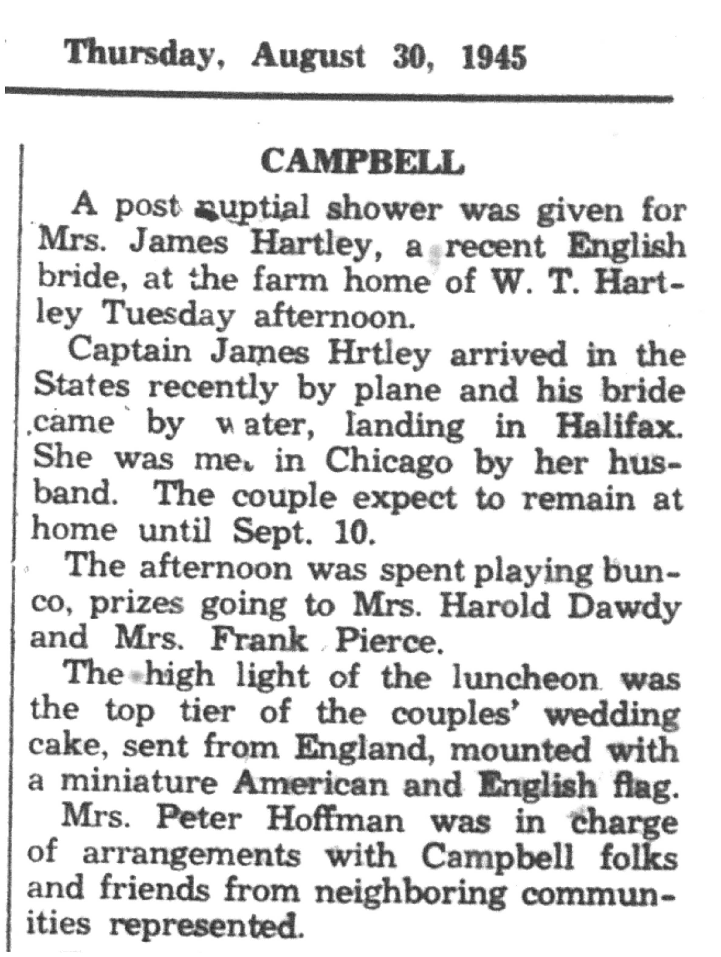 | 1945-8-30 | La Crosse Tribune p14 | |