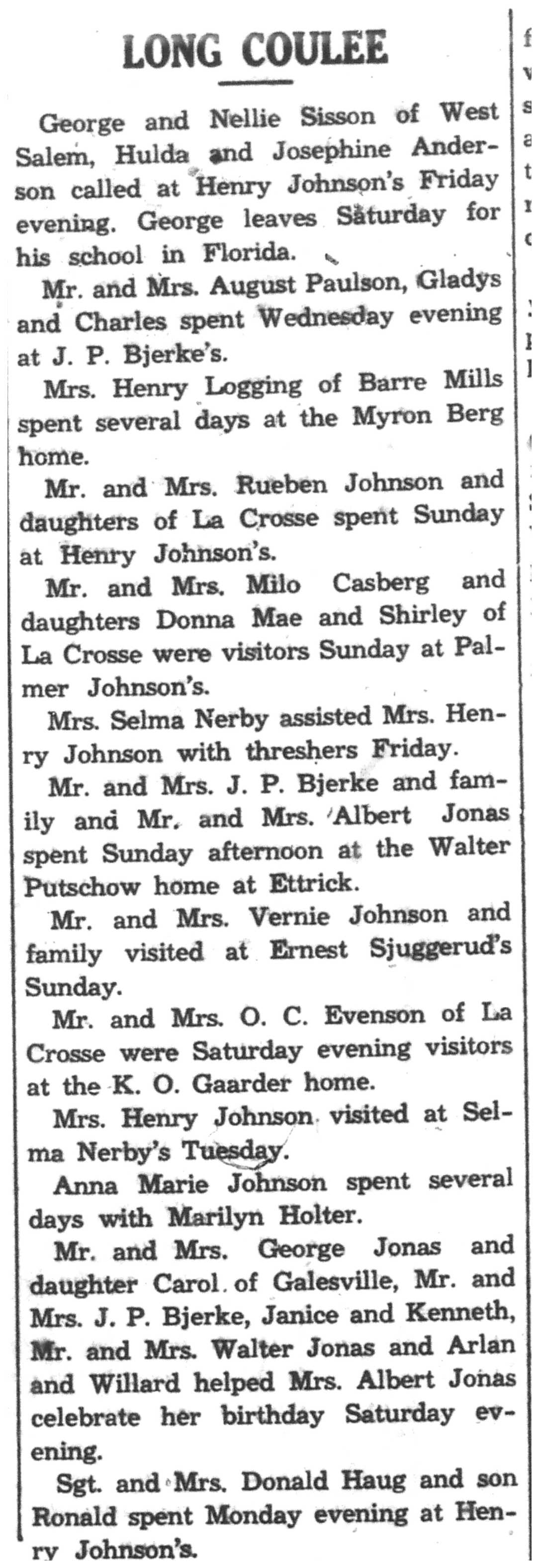 | 1945-8-30 | La Crosse County Record p5 | |