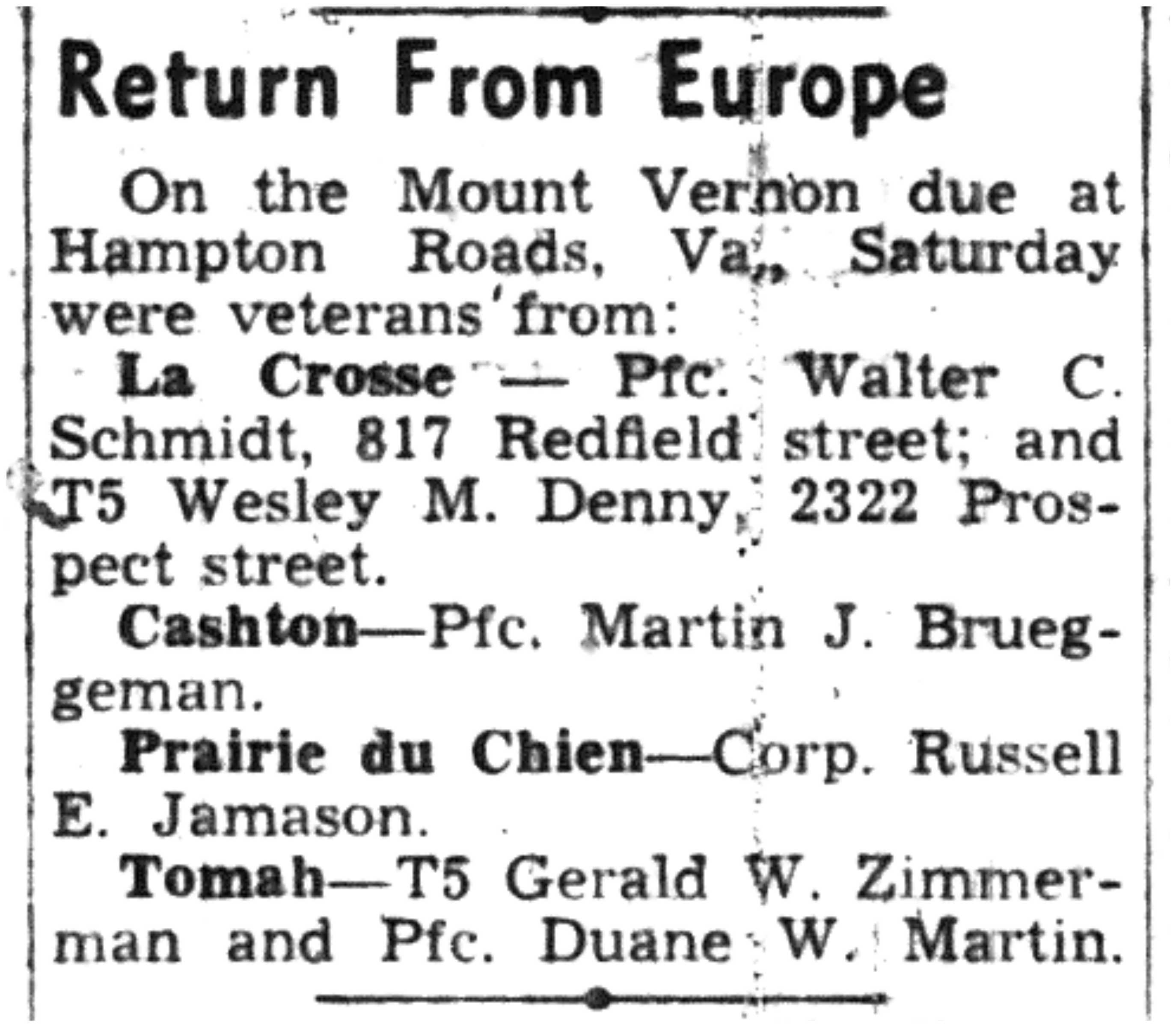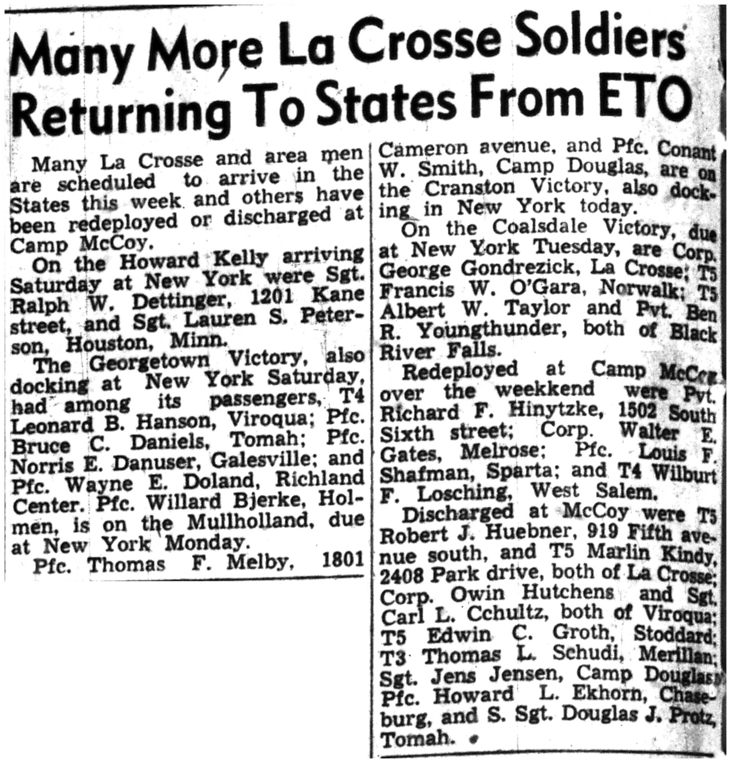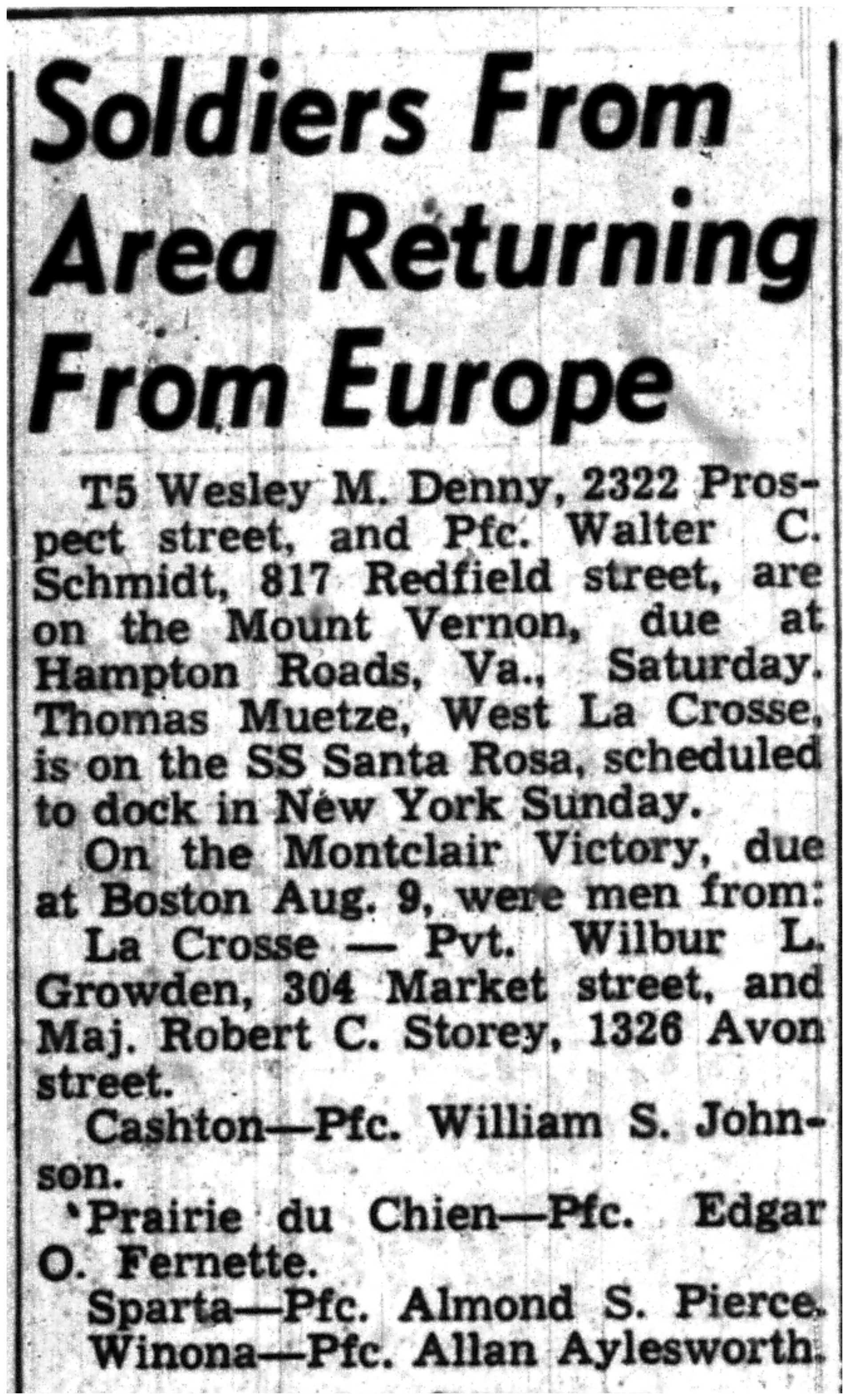 | 1945-8-5 | La Crosse Tribune p4 | |