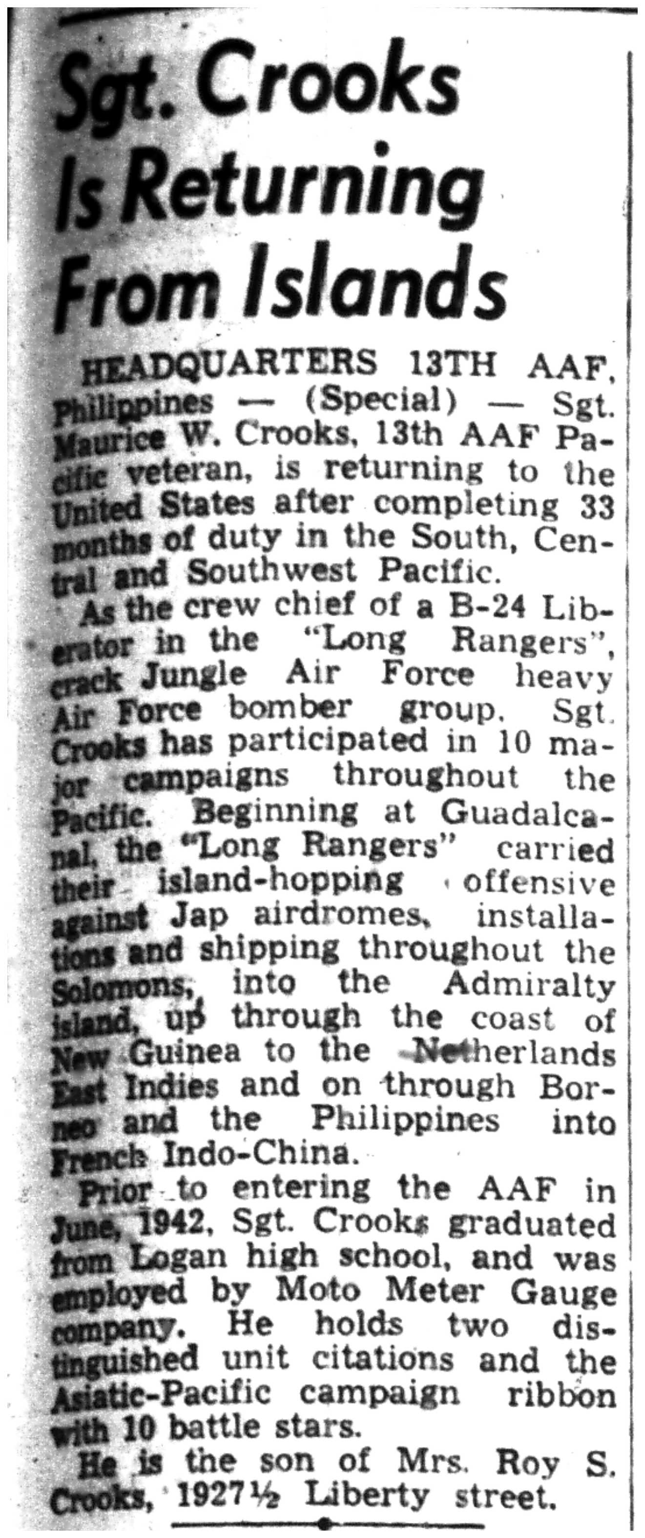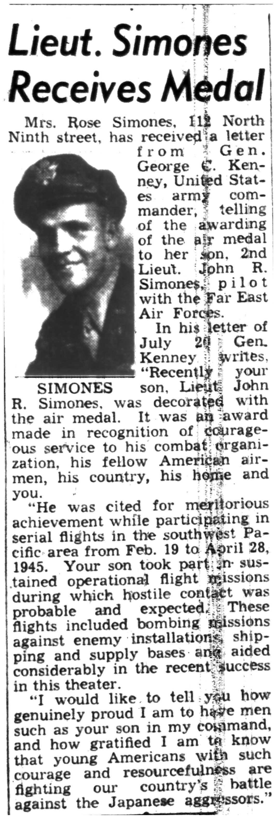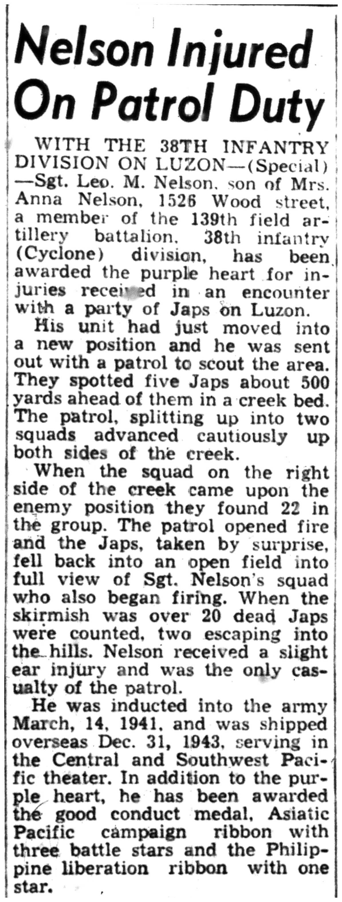 | 1945-8-9 | Non-Pareil Journal p5 | |