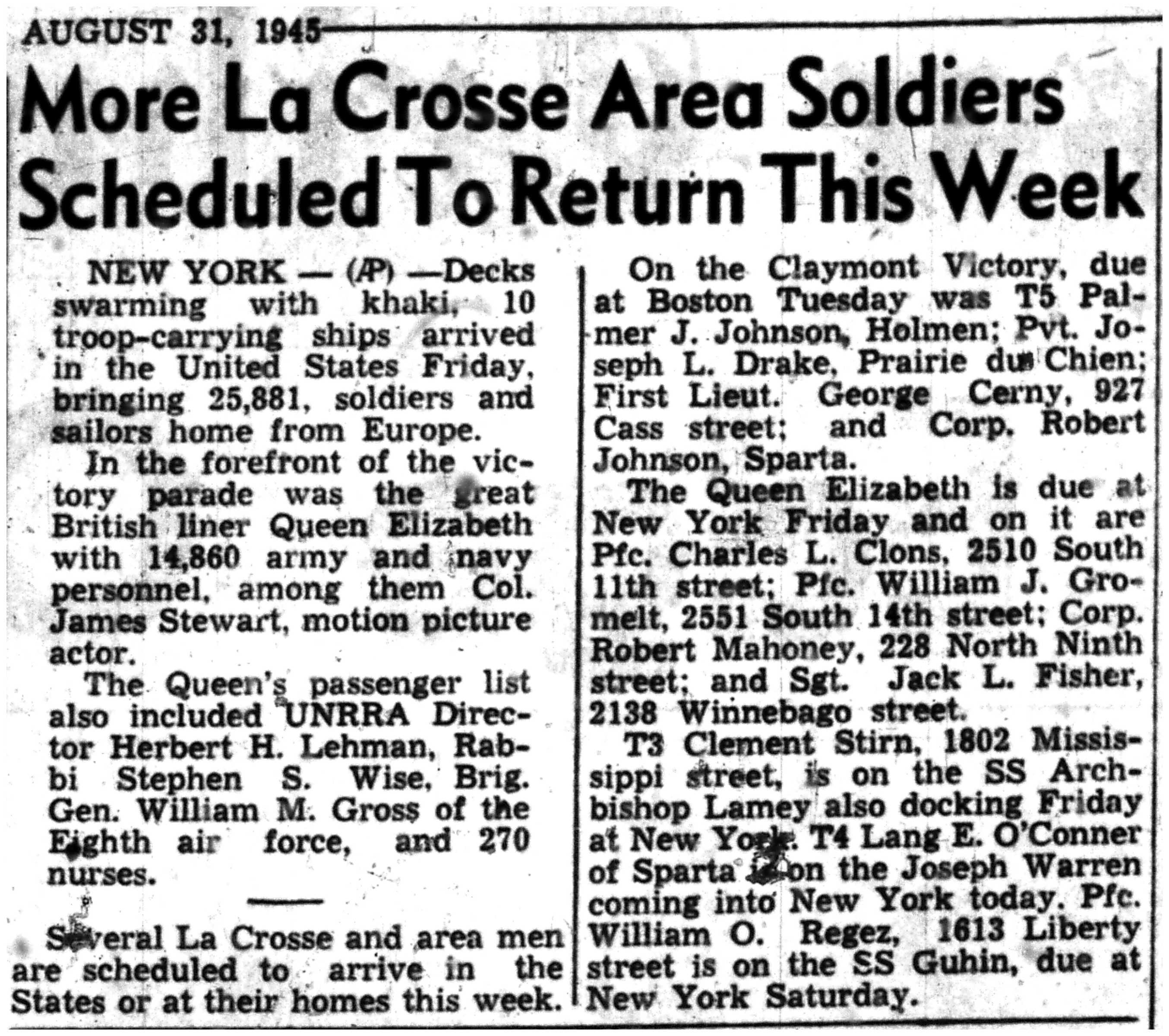 | 1945-8-31 | La Crosse Tribune p6 |
