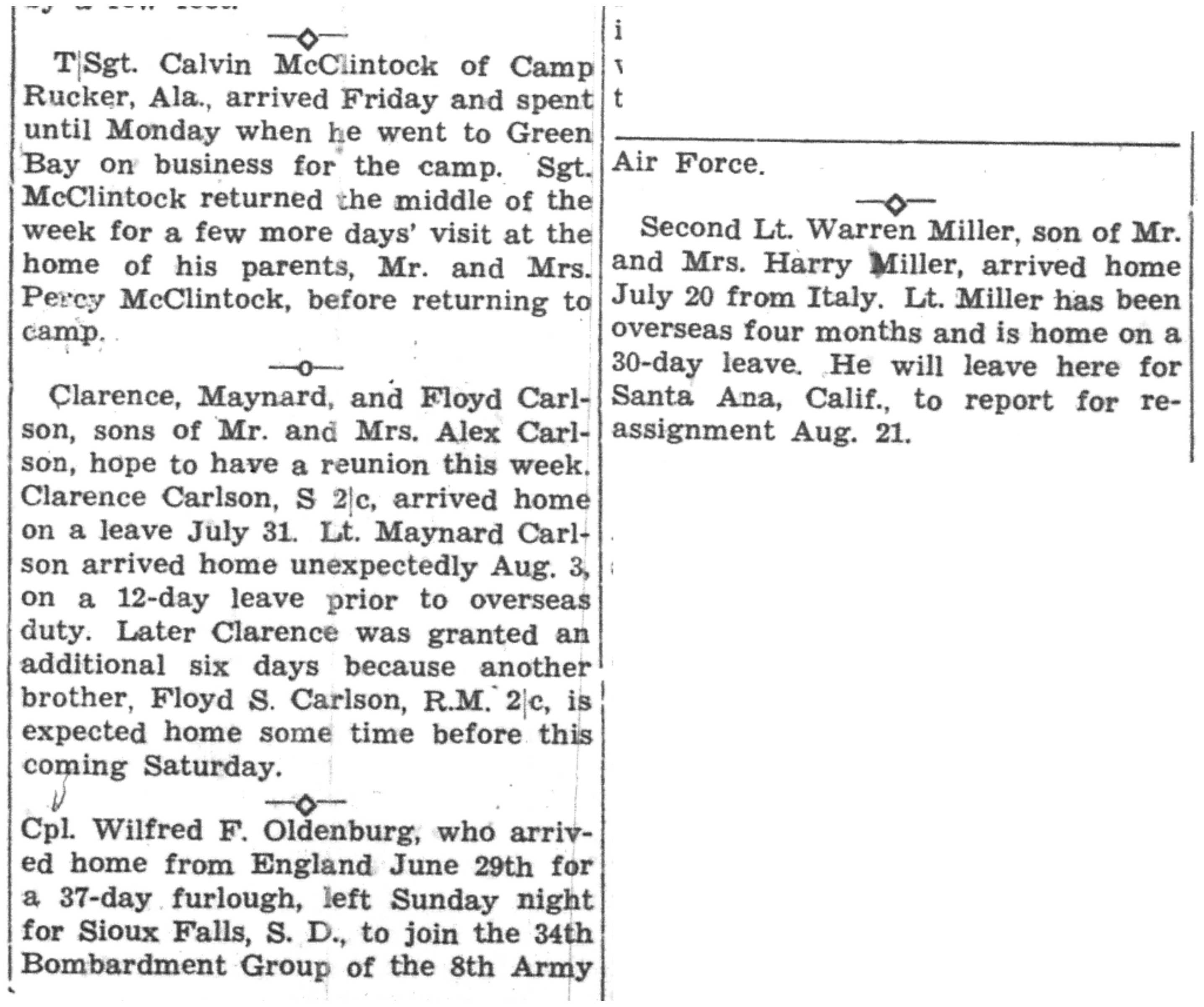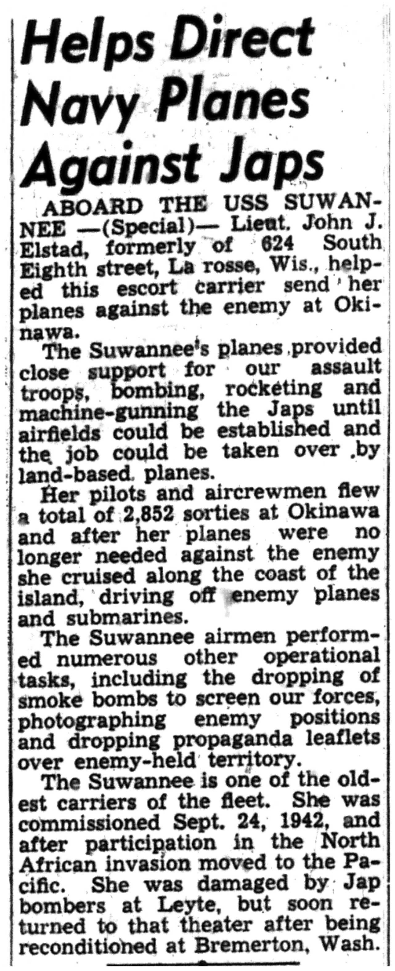 | 1945-8-2 | La Crosse Tribune p7 | |