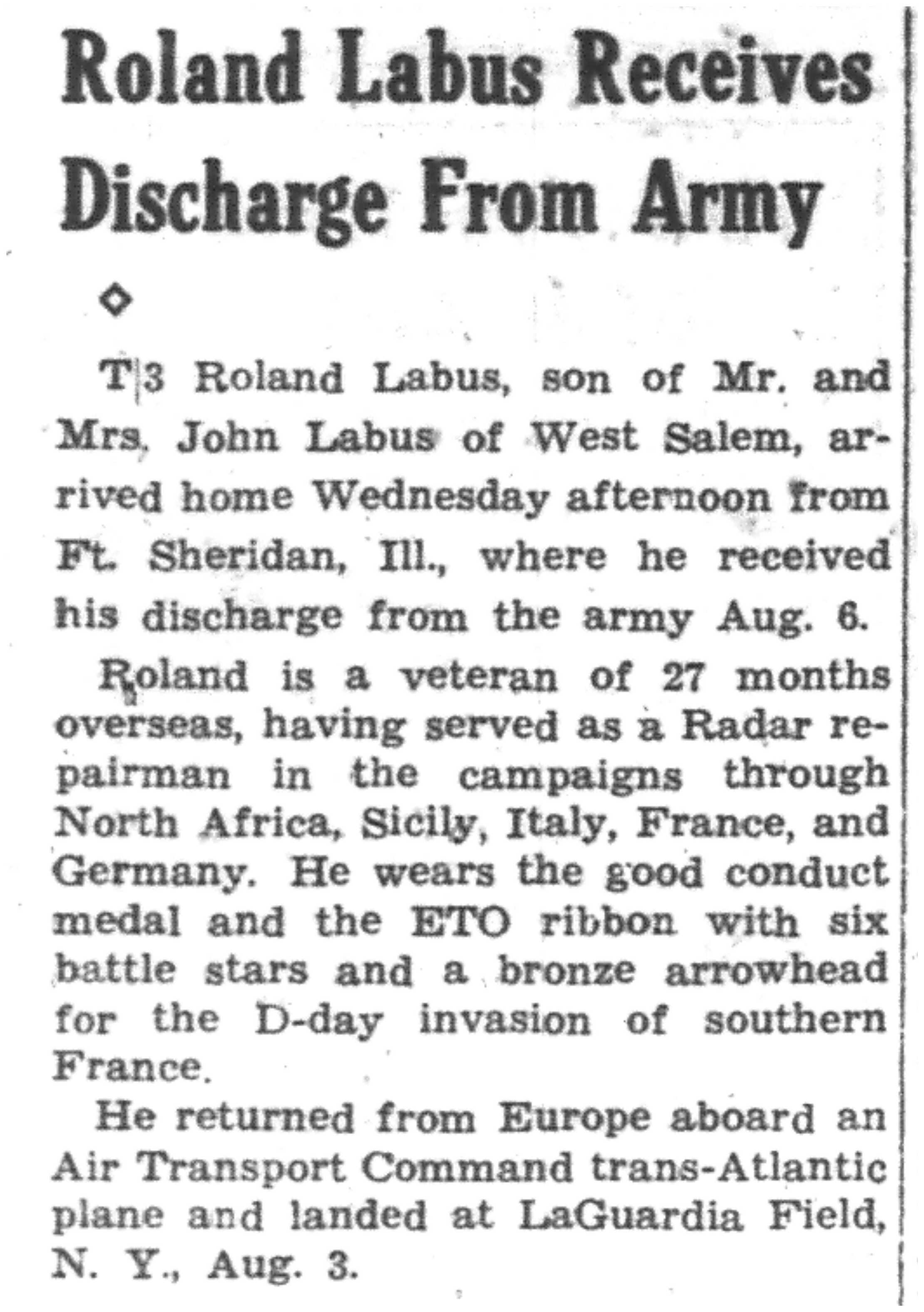 | 1945-8-1 | La Crosse Tribune p8 | |