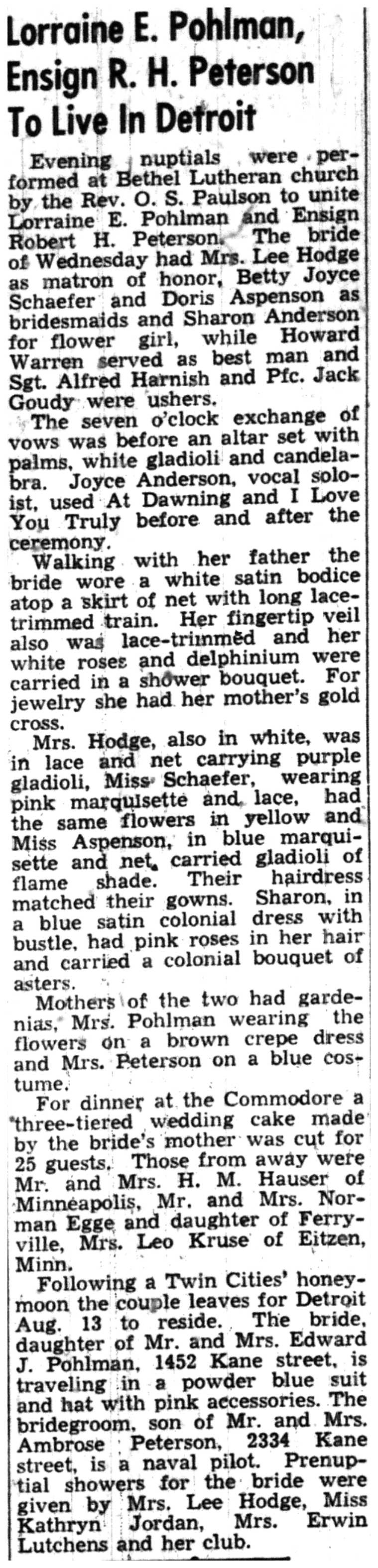 | 1945-8-22 | La Crosse Tribune p14 | |