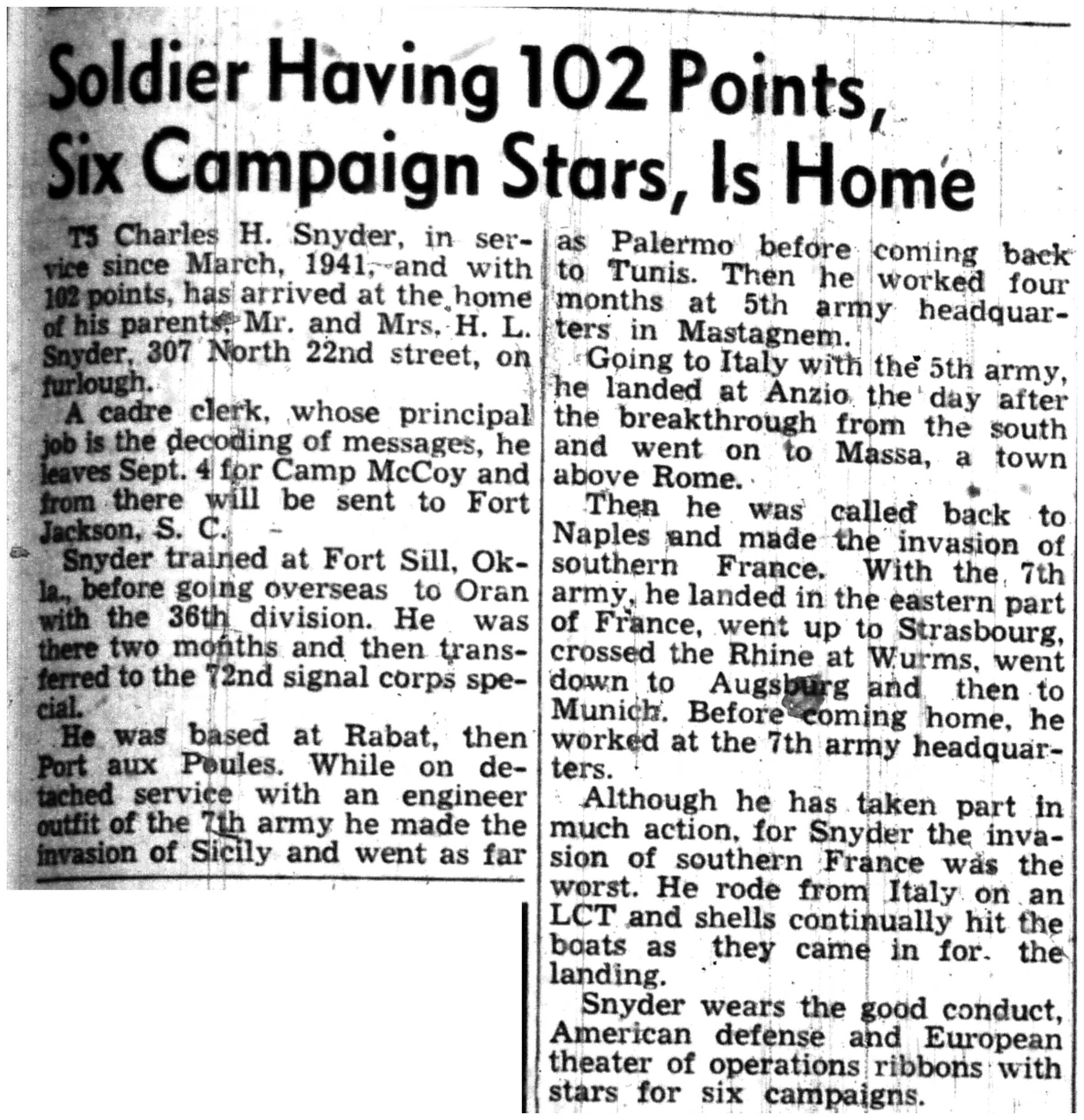 | 1945-8-3 | La Crosse Tribune p6 | |