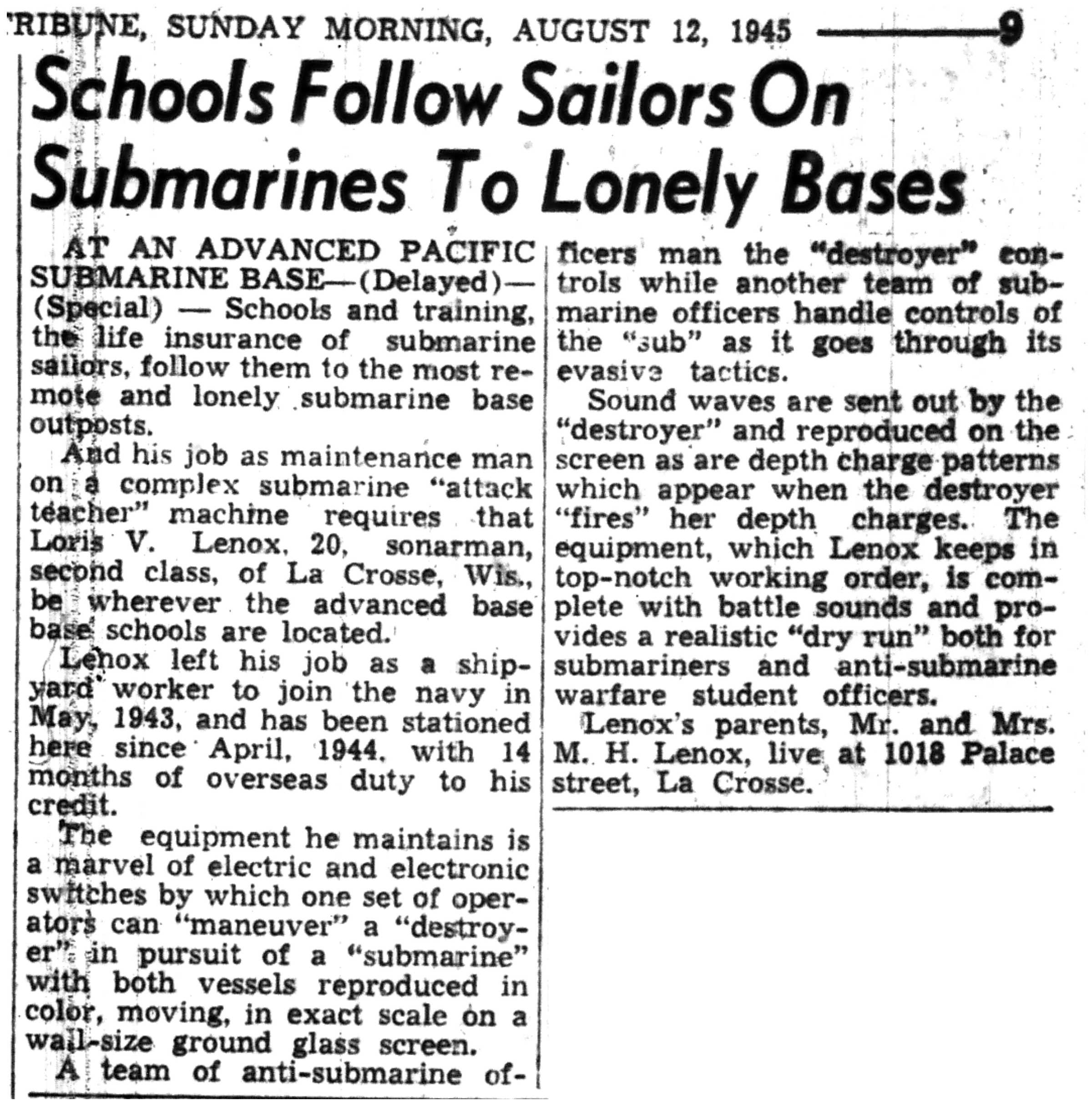 | 1945-8-12 | La Crosse Tribune p9 | |