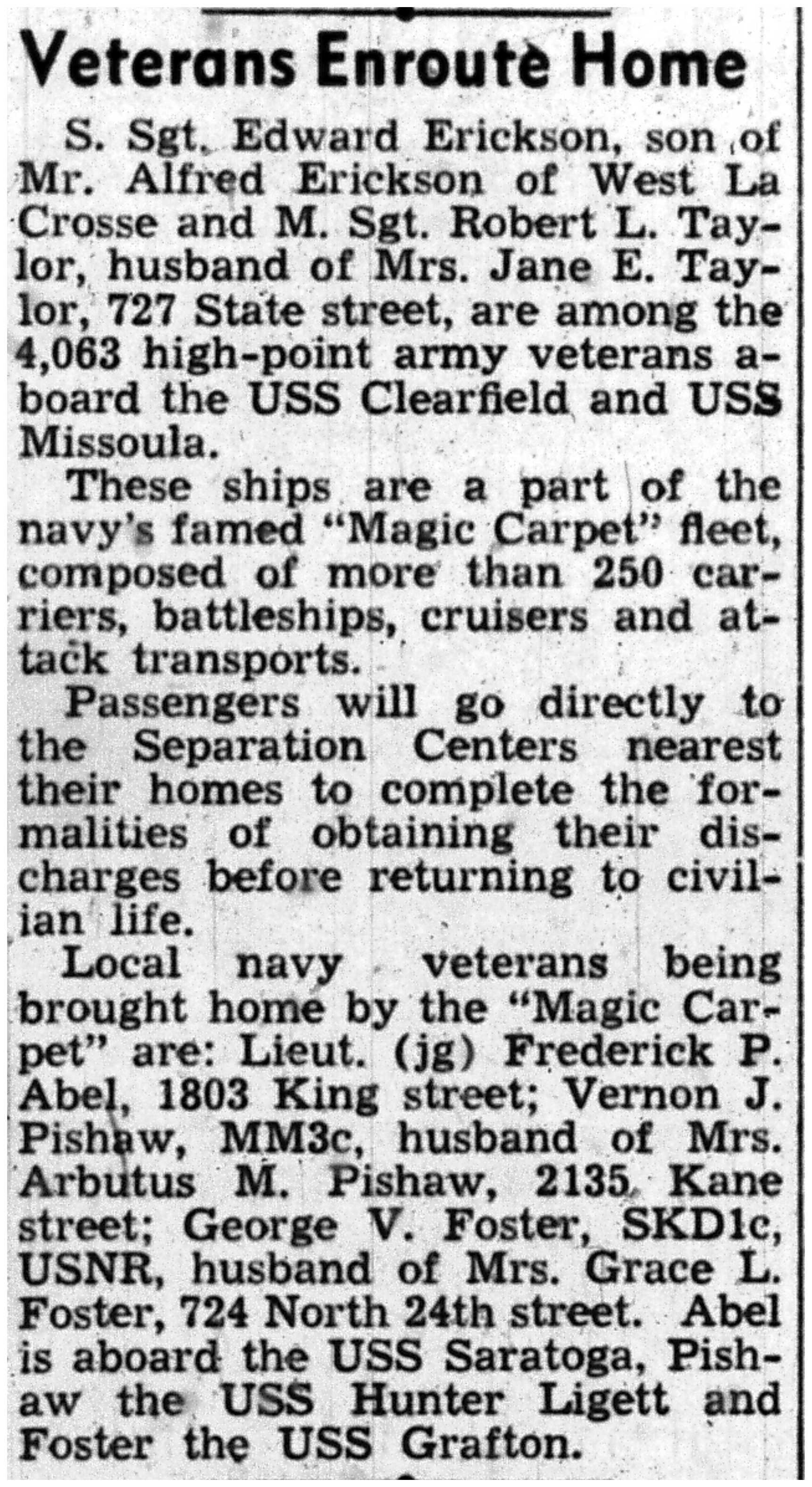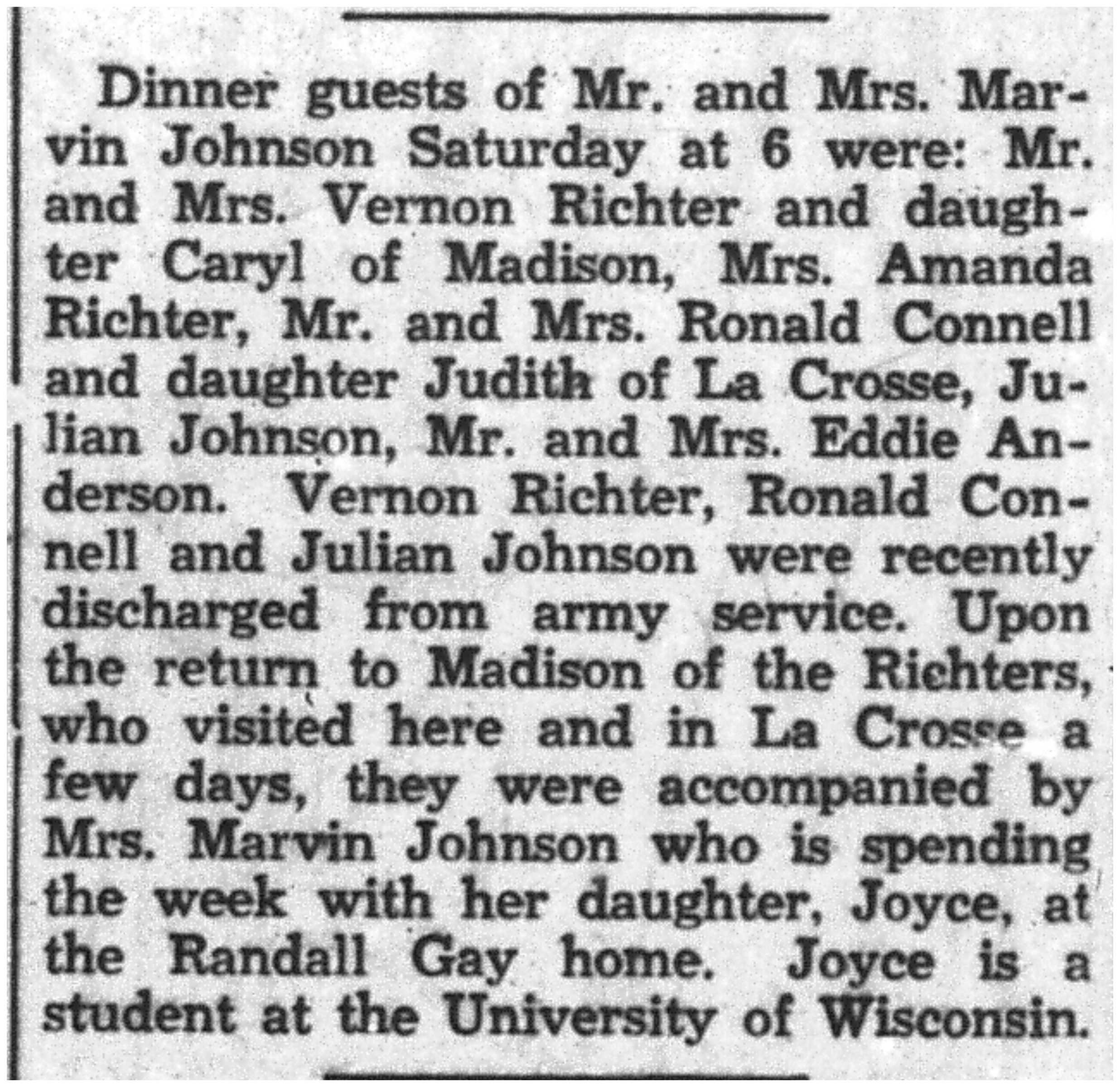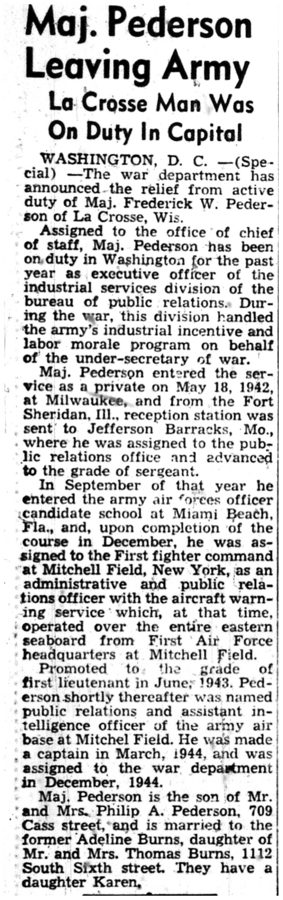 Donald Anderson, Robert Van Tassel, Roy Miller, Arthur Kelly, Grant Koch, Kenneth Doherty, Arthur Wittenberg, Patricia McLaughlin, R E Howland Jr, Warren Kuettel, Patrick Kelly, Marvin Philpot, Robert LaFleur, Raymond Waldel, Harold Evenson, Wilbur Spreiter, Robert Gibbons, Willard Parker, Bernard Hilke, Earl Hansen