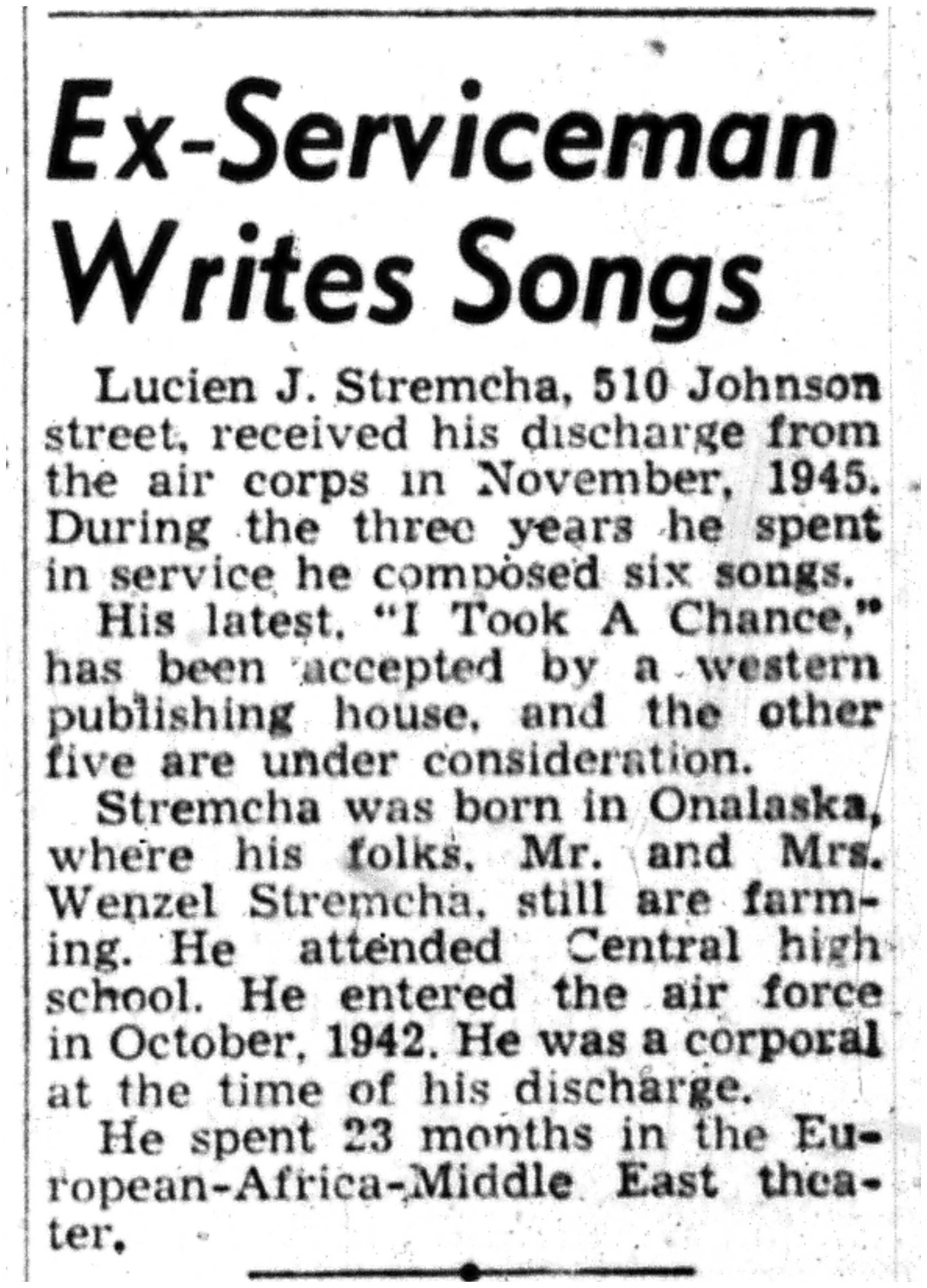 Julian Johnson, Arnold Johnson, Wenzel Stremcha