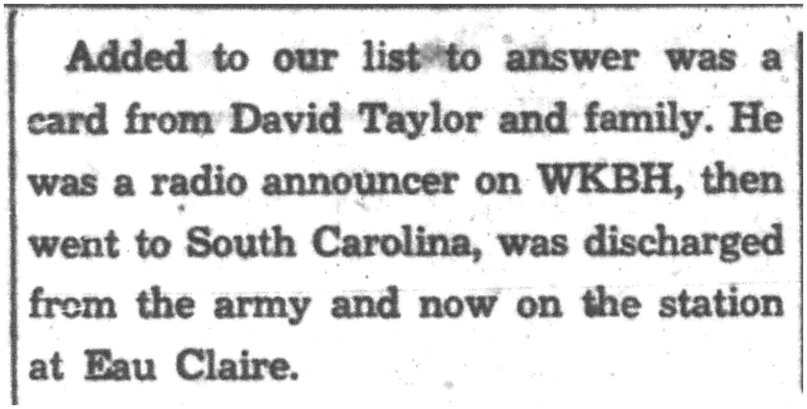 Elver Phillips, Albert Muenzenberger, Harvey Krause, George Arentz, Eugene Harning, Lloyd Weigel, D. W. Baeder, William Alland, Kenneth Pertzsch, Henry Kenyo, Robert Kenney, Raymond Larson, Gordon Grude, R. C. Roloff, Richard Young, Melvin Sobkowiak, Ruth Ardelle, Robert Kimball, Robert Smith, Logan Brickson