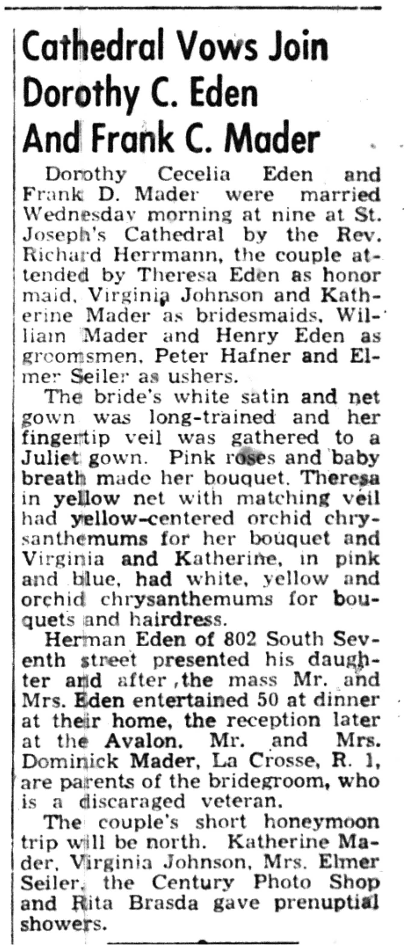 Edward Blank, Rudolf Cremak, Benjamin Loomis, Roy Munsen, John Beyer, Paul Hoeft, Douglas Schaller, Lawrence Stetter, Wilbert Nesseth, LeRoy Beier, Sidney Wolden, Norman Anderson, Robert Rose, Ralph Widner, Arnold Knudtson, Clayton Connell, Harold Morley, Immanuel Frey, J. A. Joseph, George Paskvan, Donald Field, Kenneth Riel, Merle Brown, Ernest Domnie