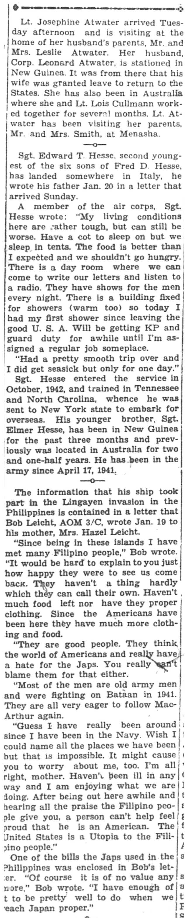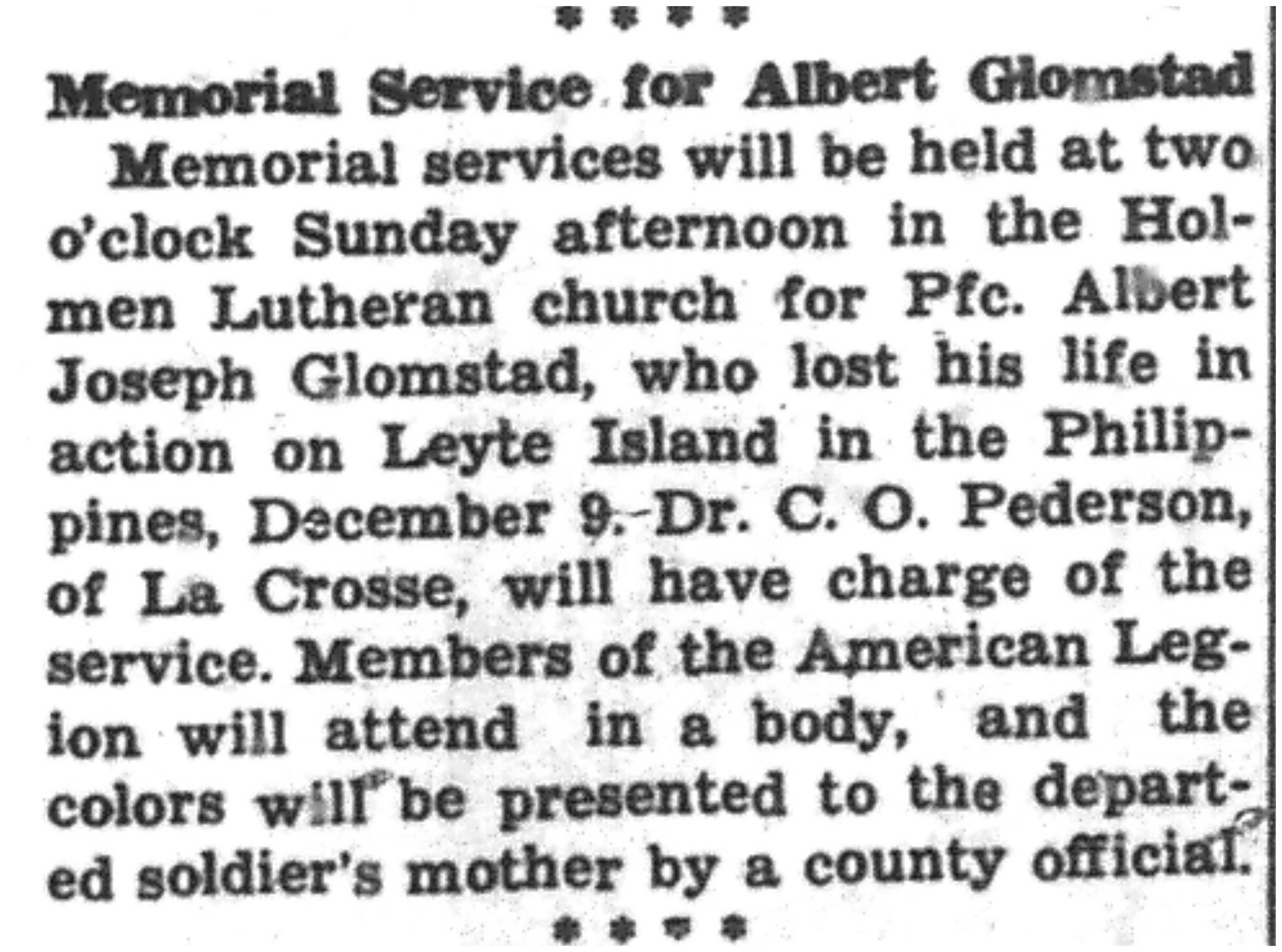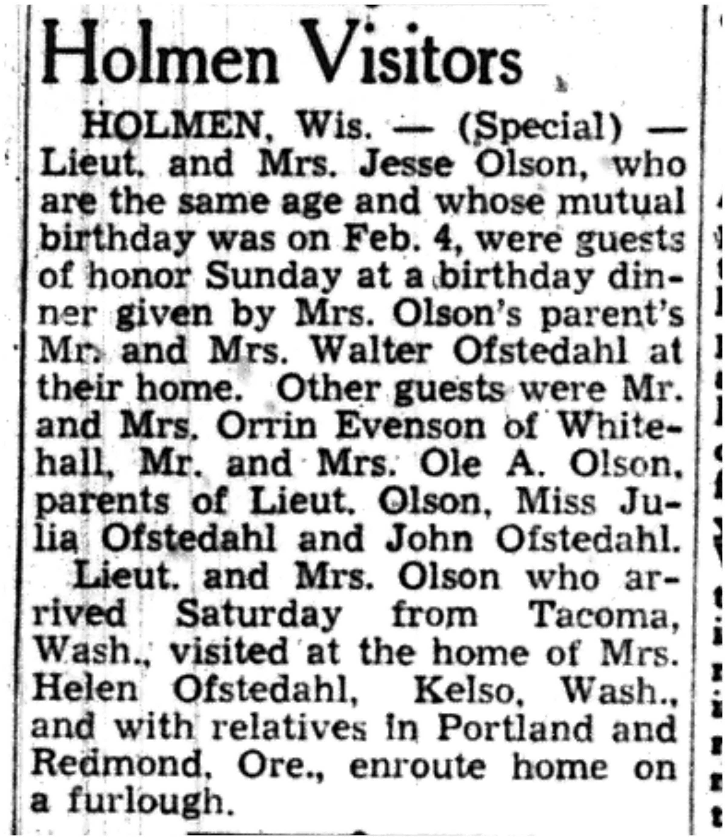 | 1945-2-6 | La Crosse Tribune p4 | |
