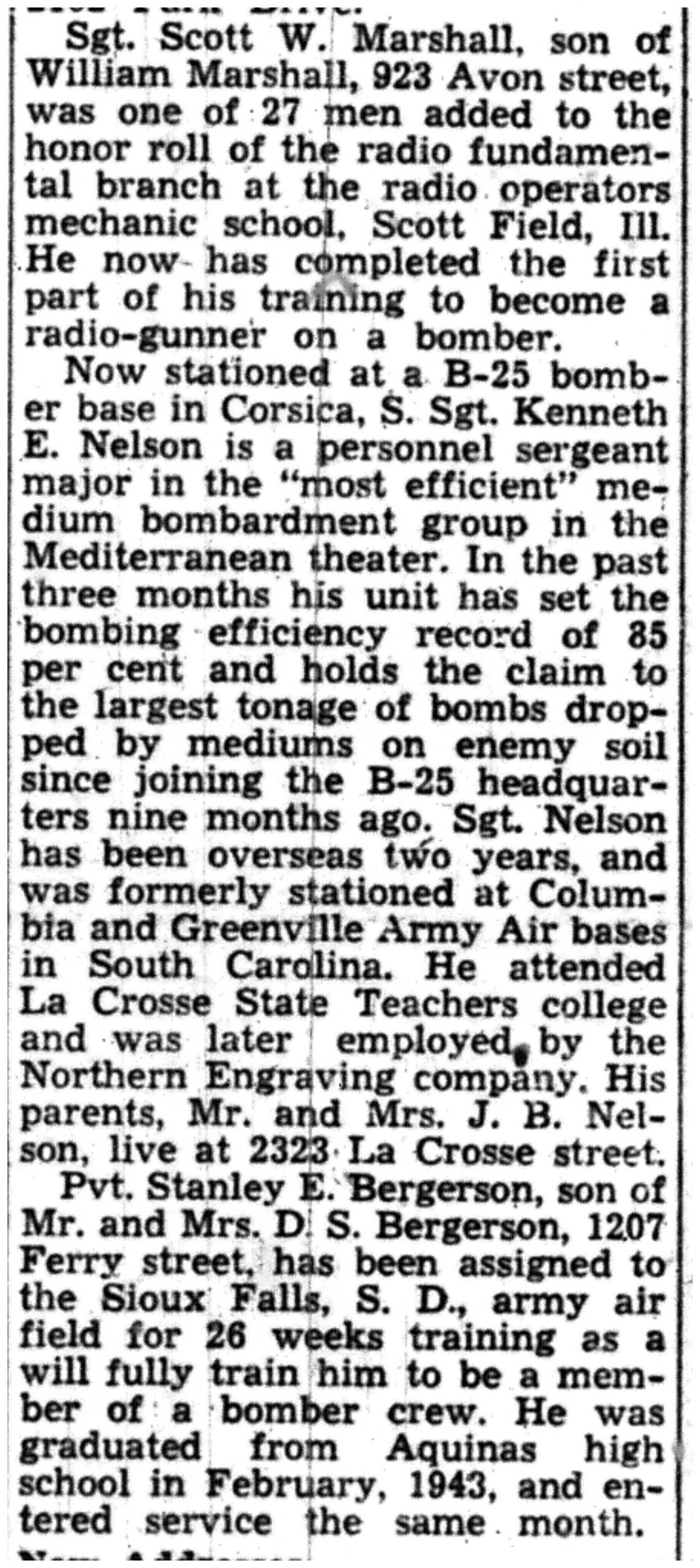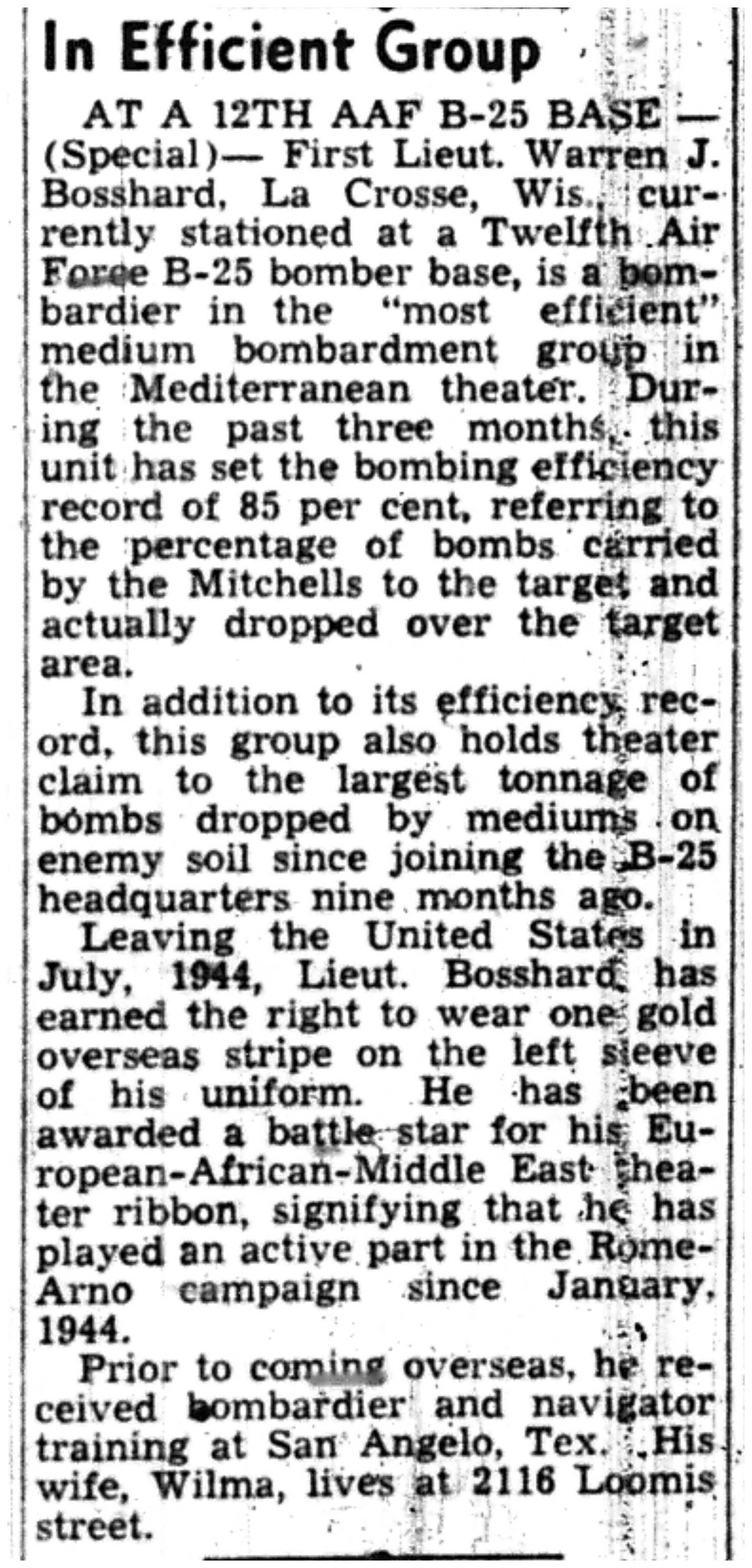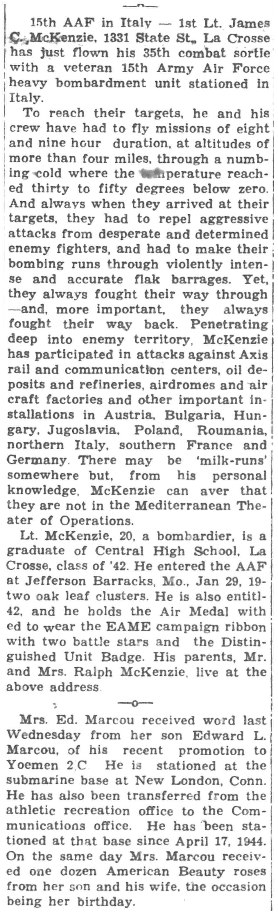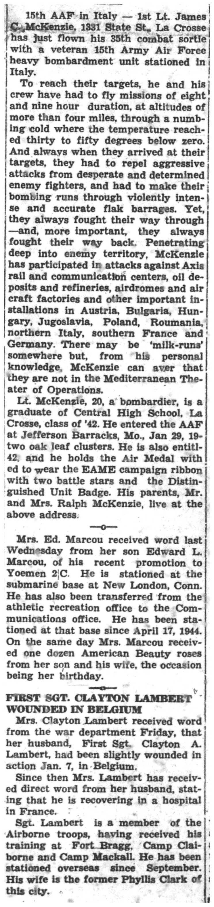 | 1945-2-2 | La Crosse Tribune p5 | |