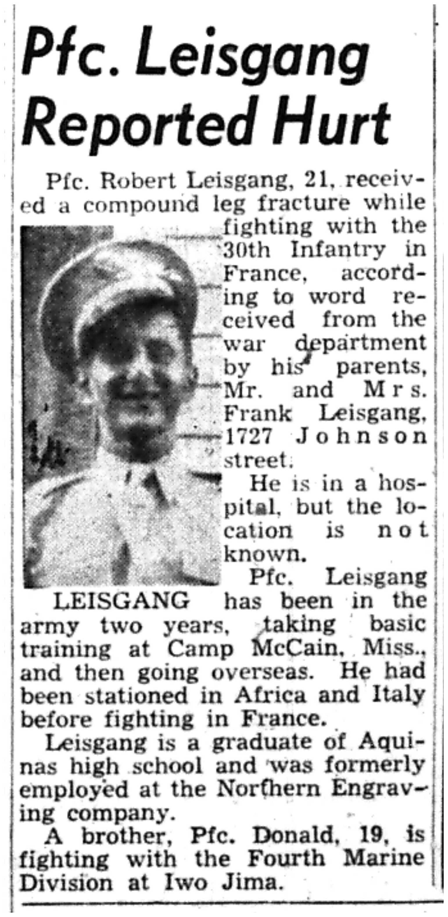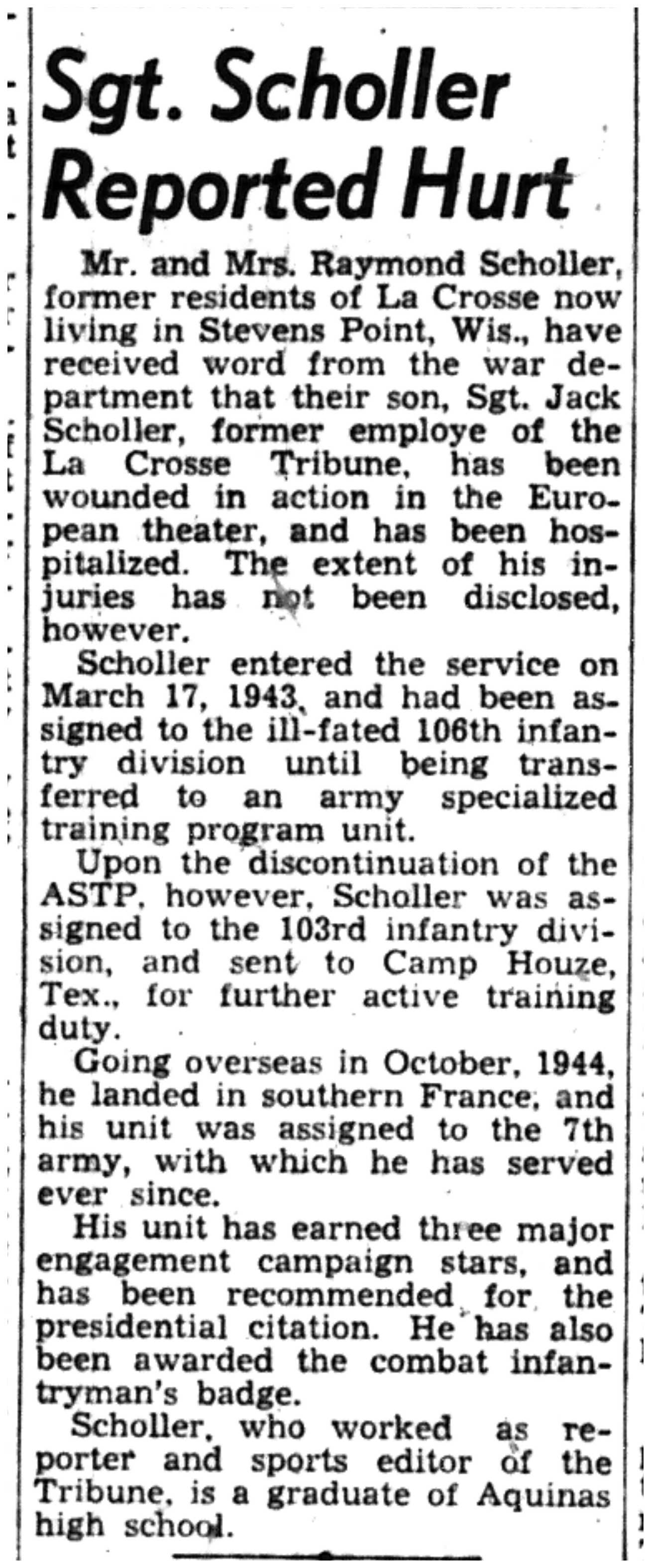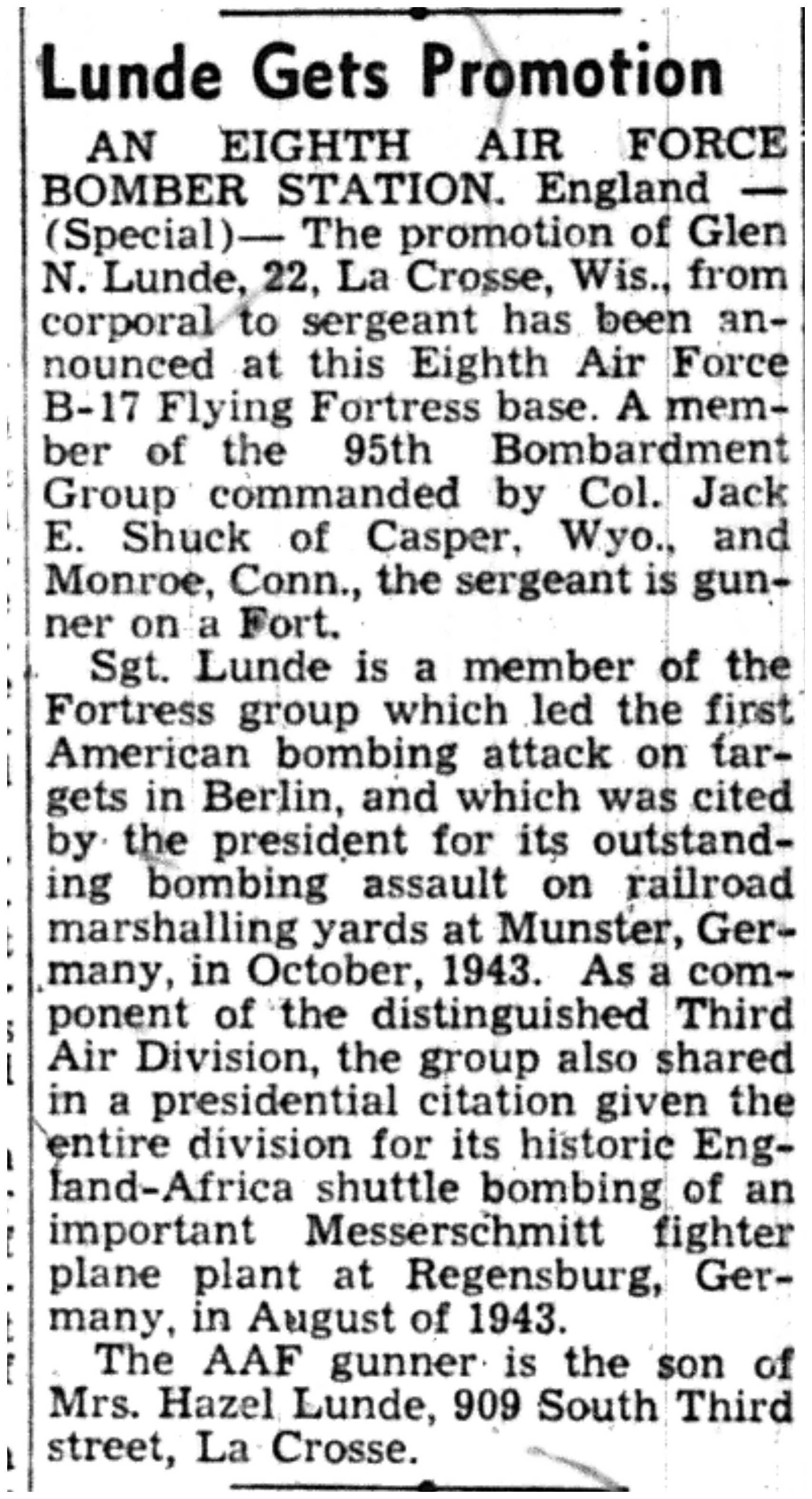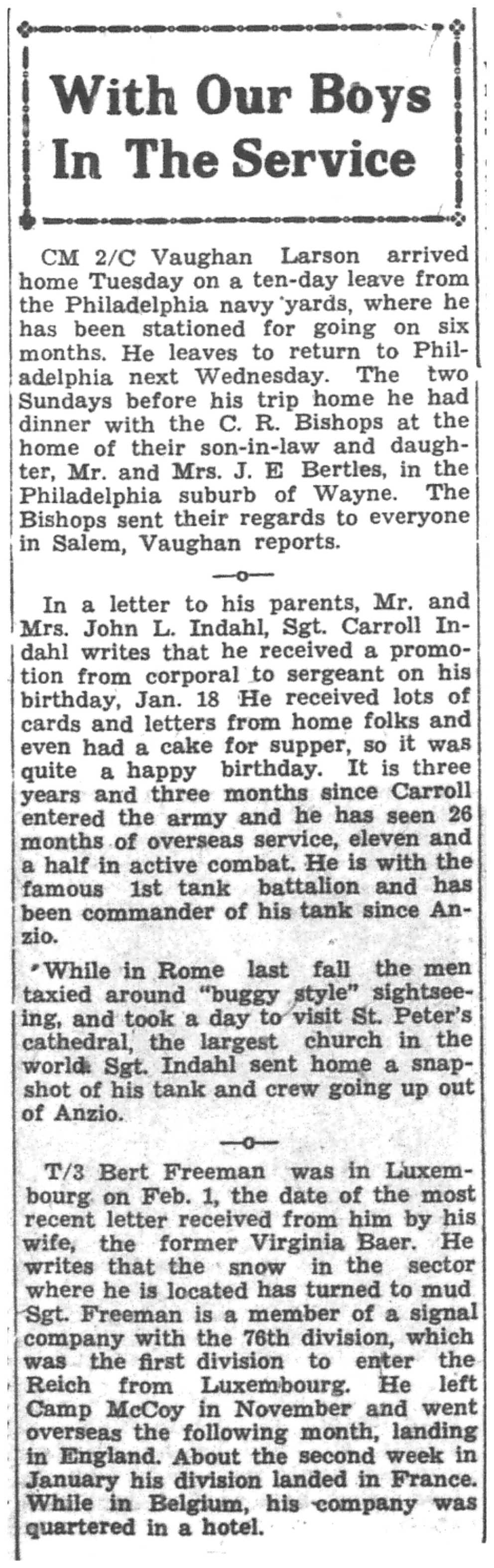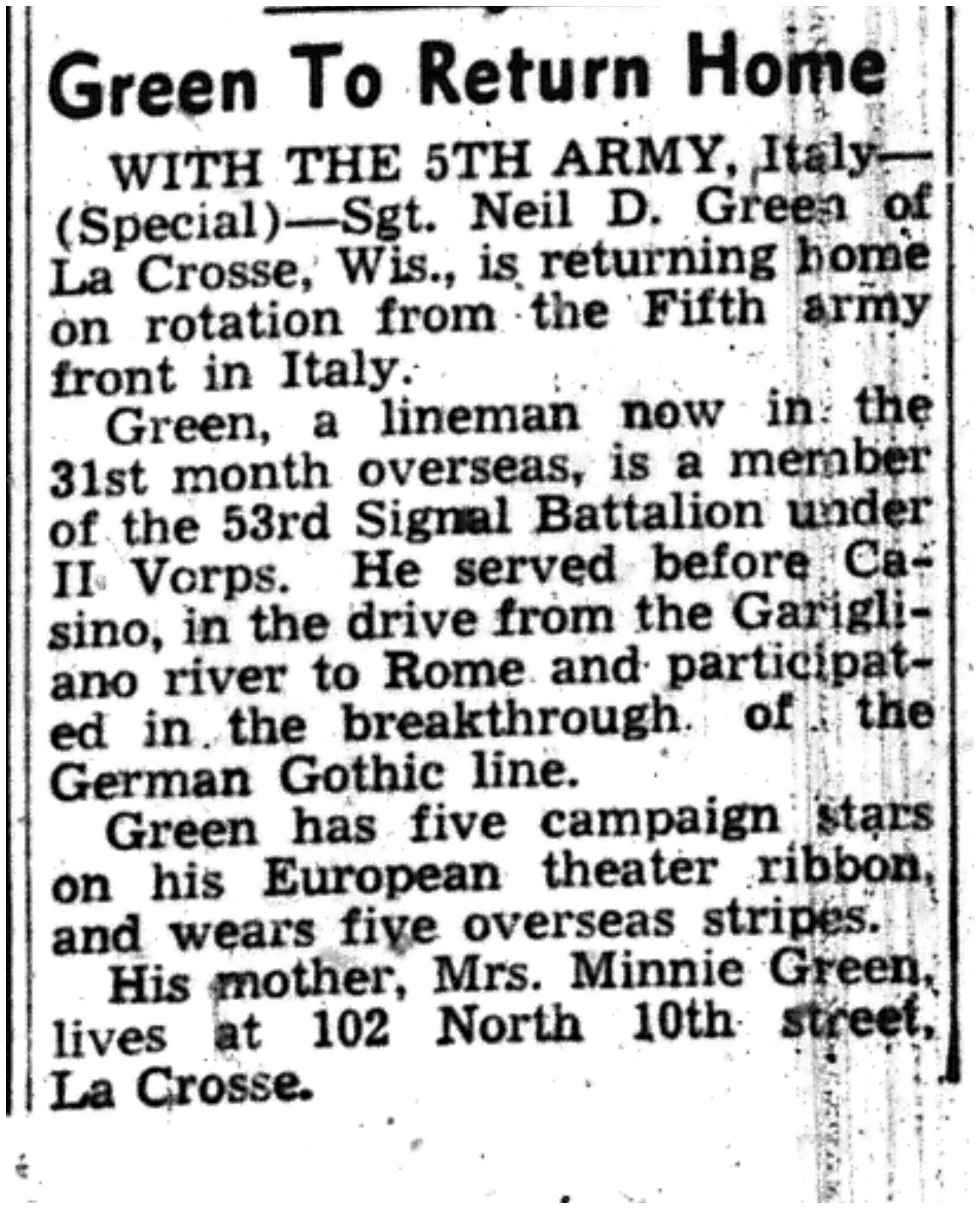 | 1945-2-2 | La Crosse Tribune p5 | |