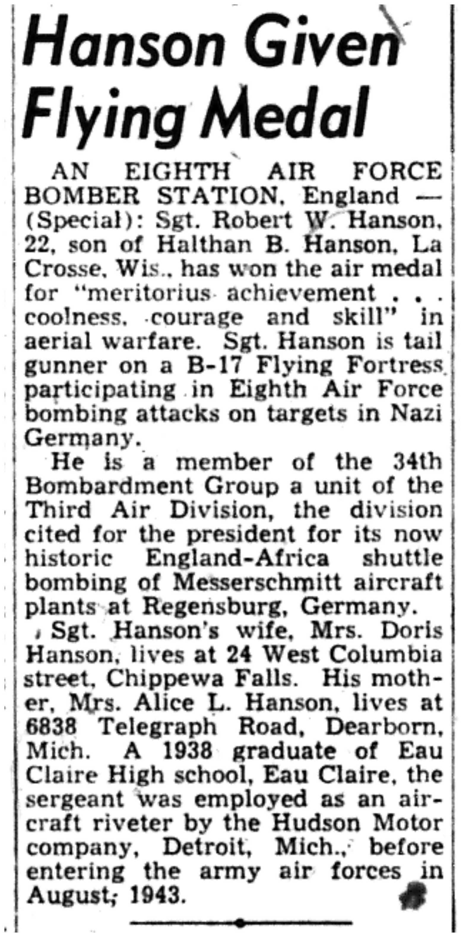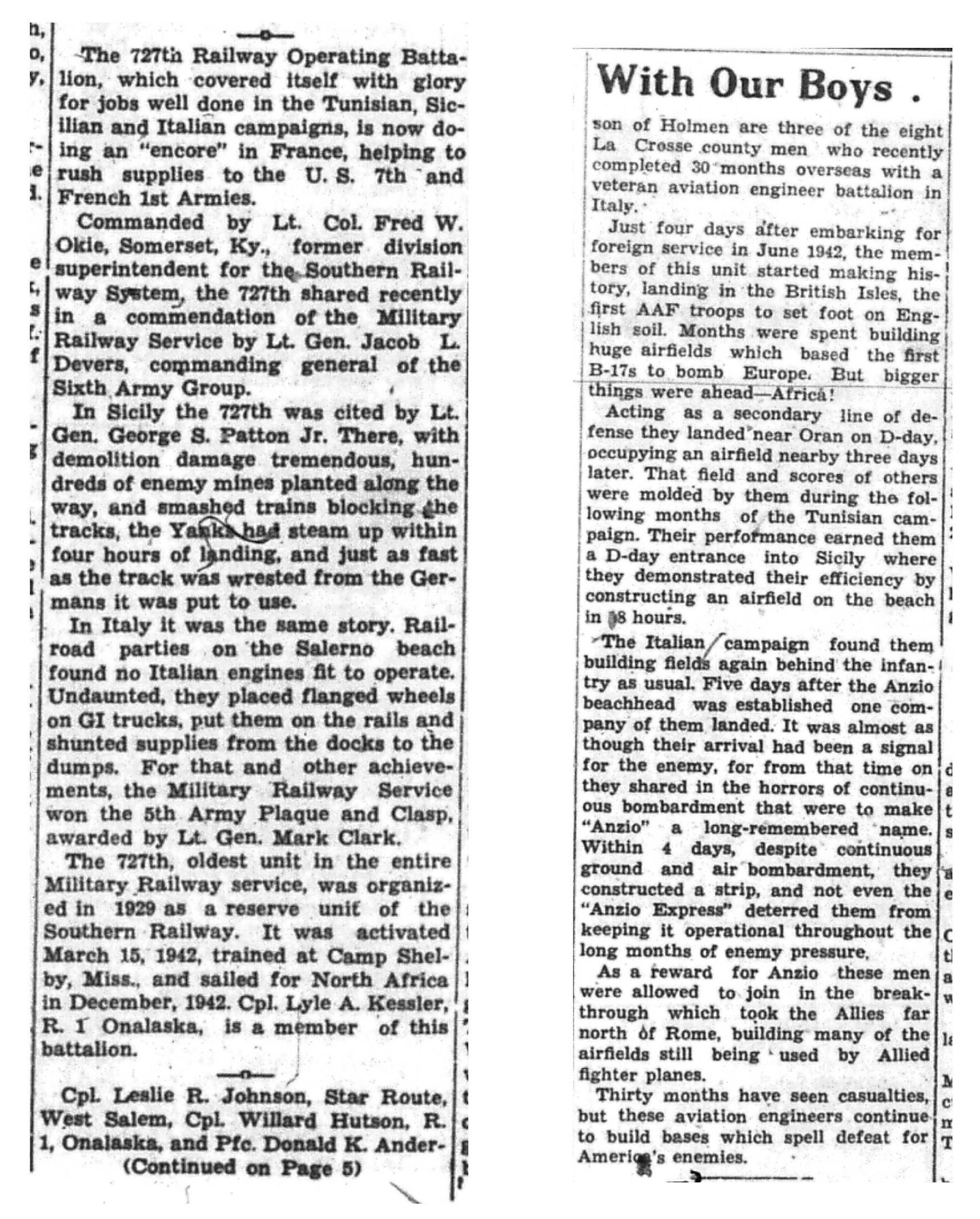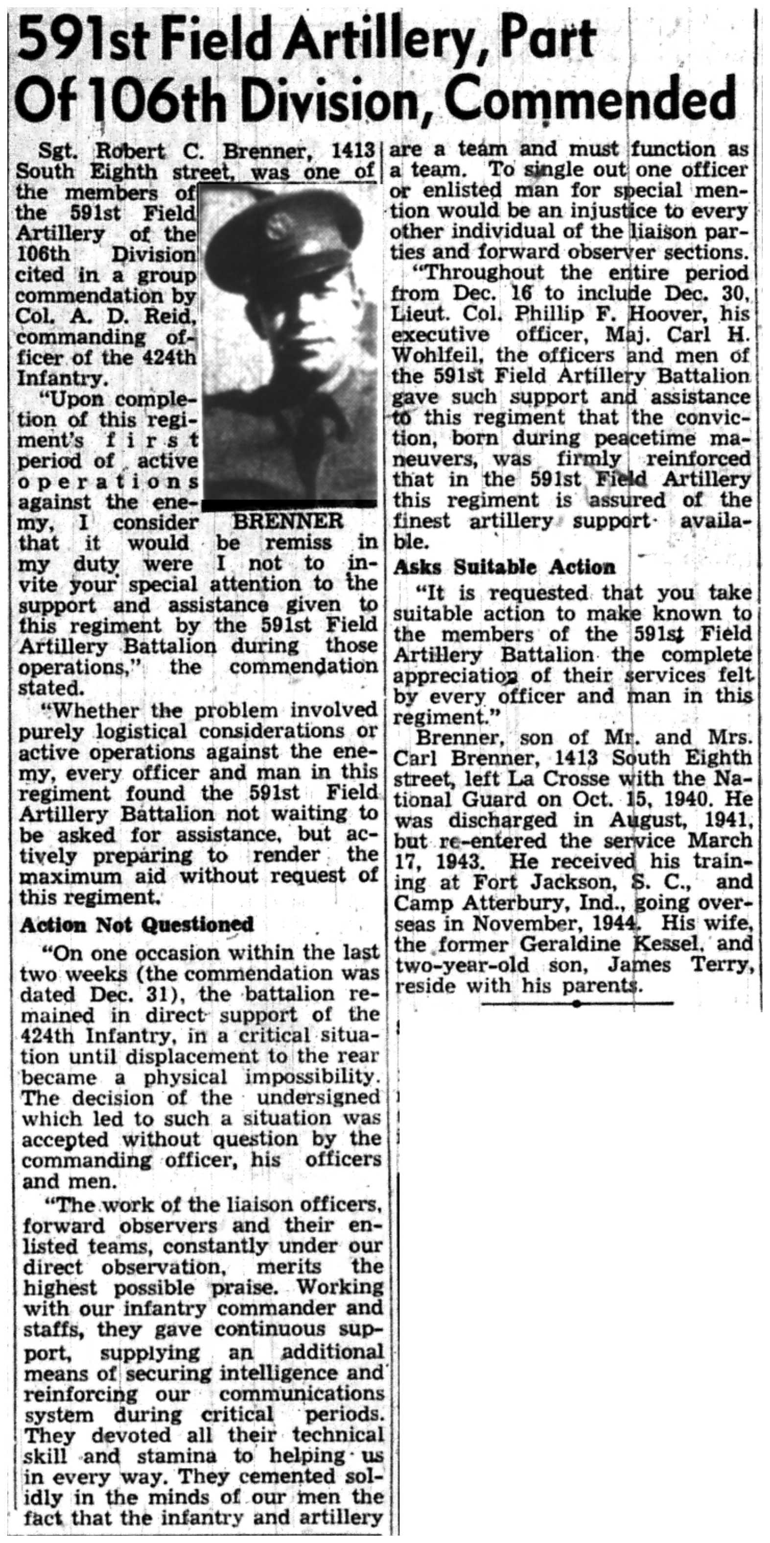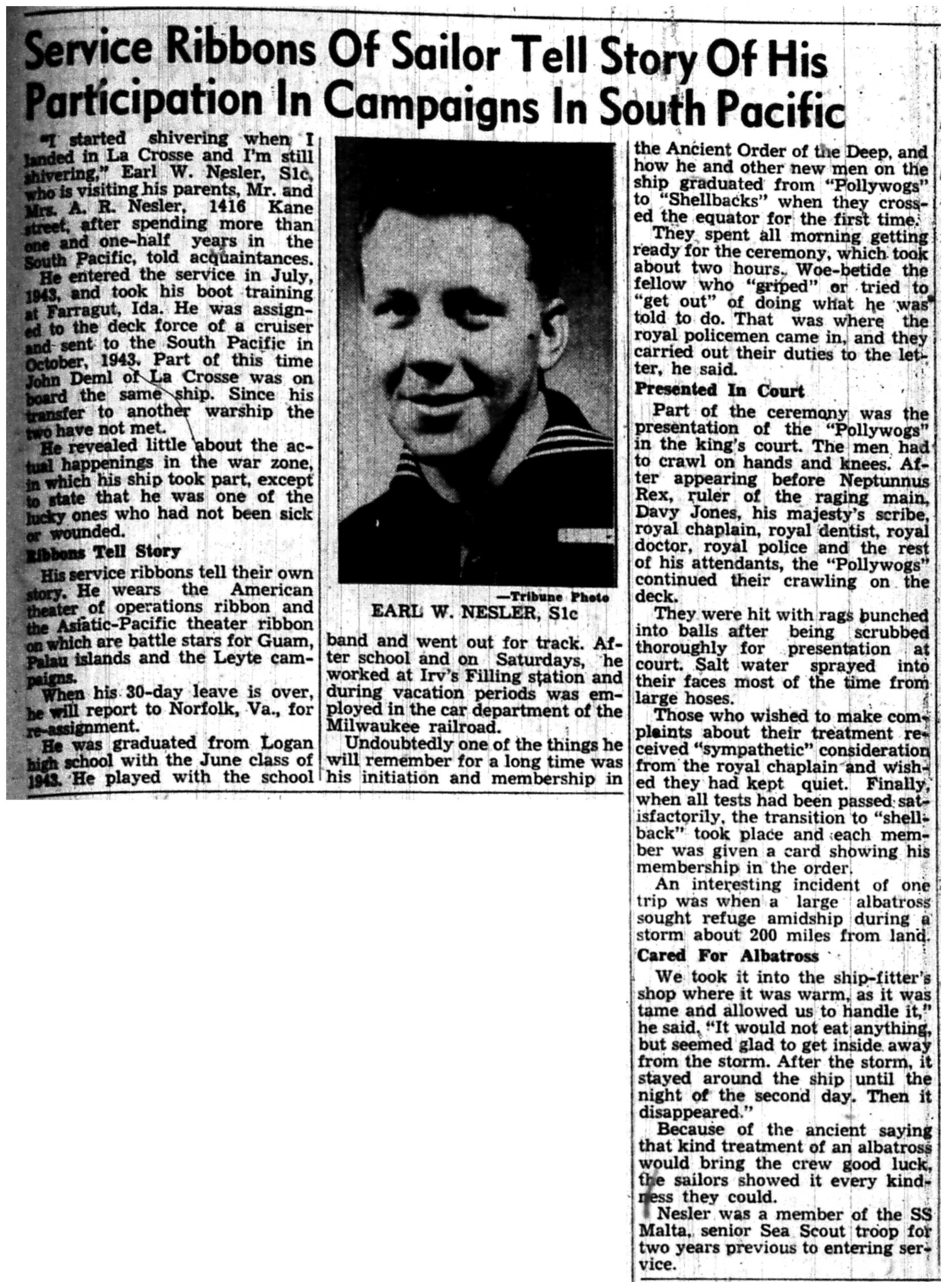 | 1945-2-2 | La Crosse Tribune p5 | |