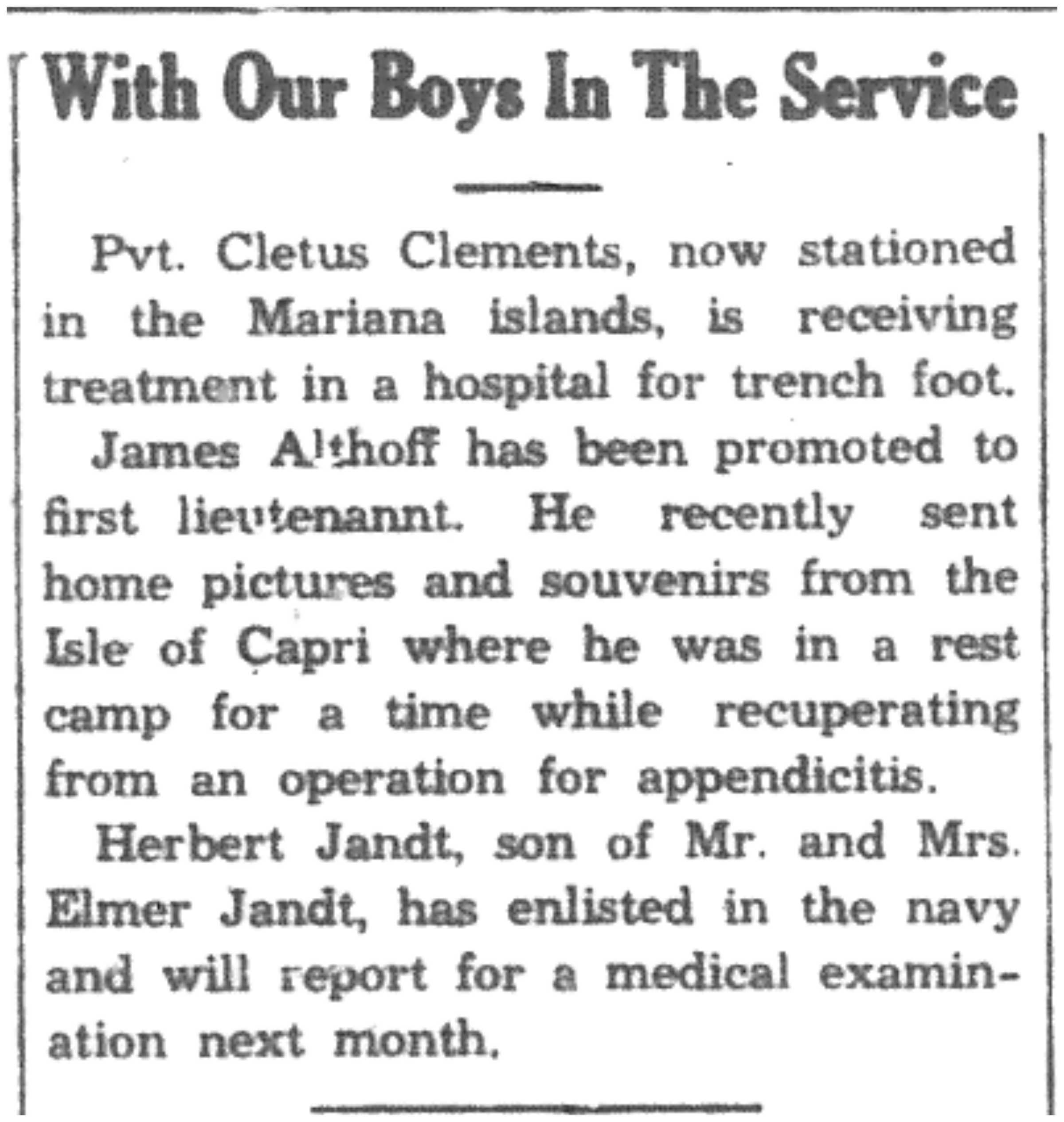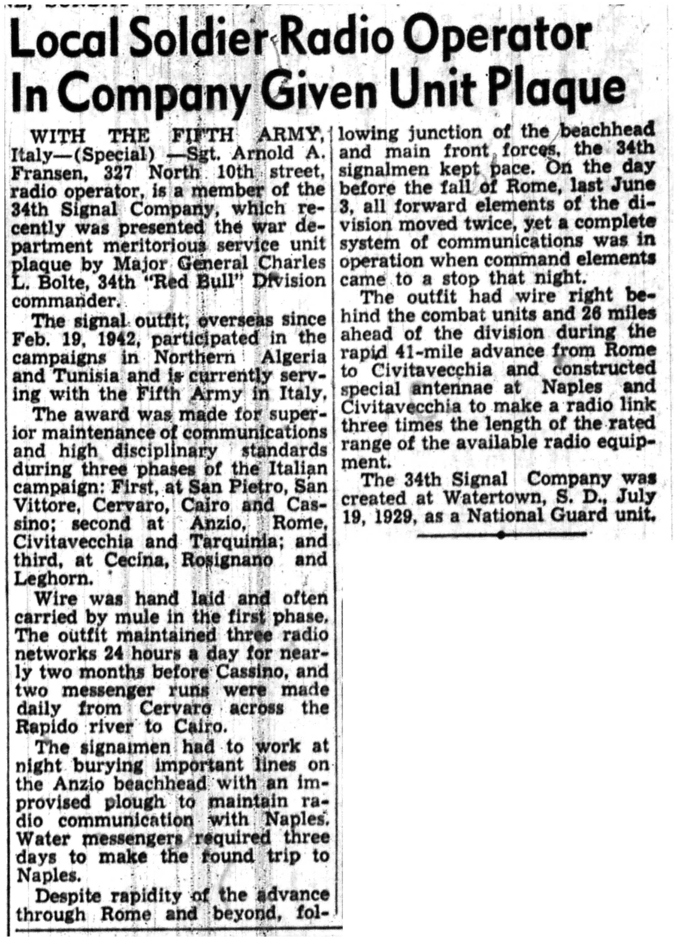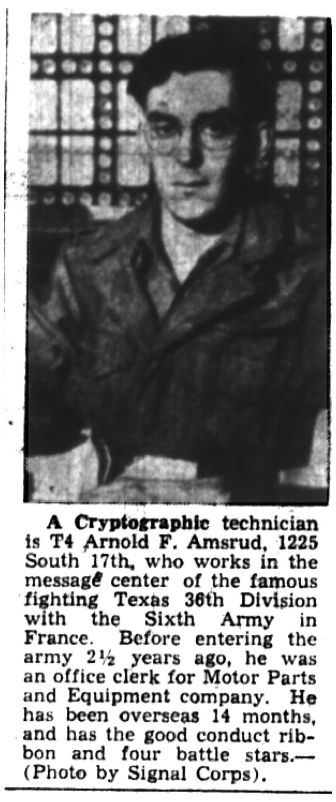 | 1945-2-8 | Non-Pareil Journal p4 | |