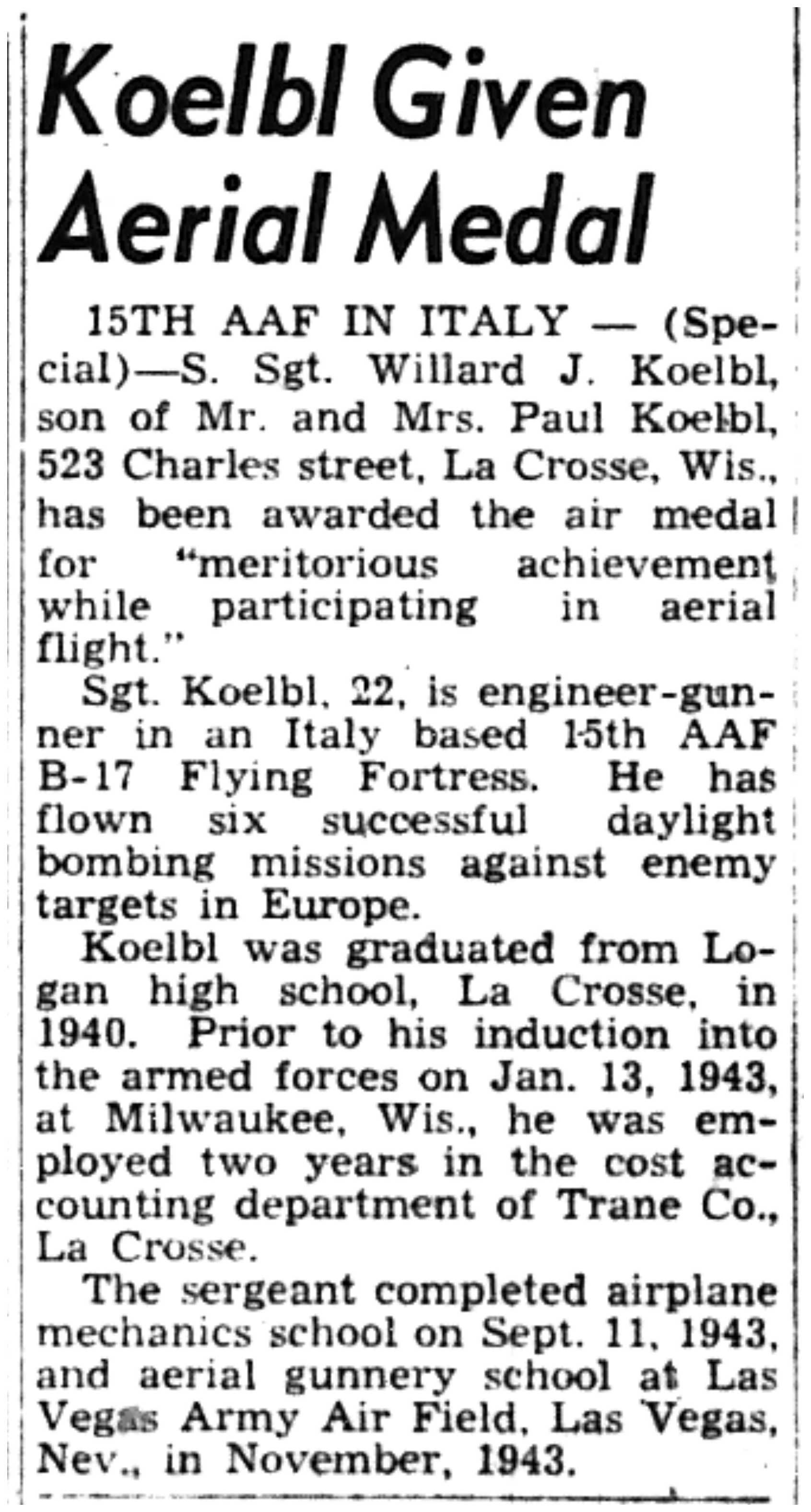 | 1945-2-25 | La Crosse Tribune p14 | |