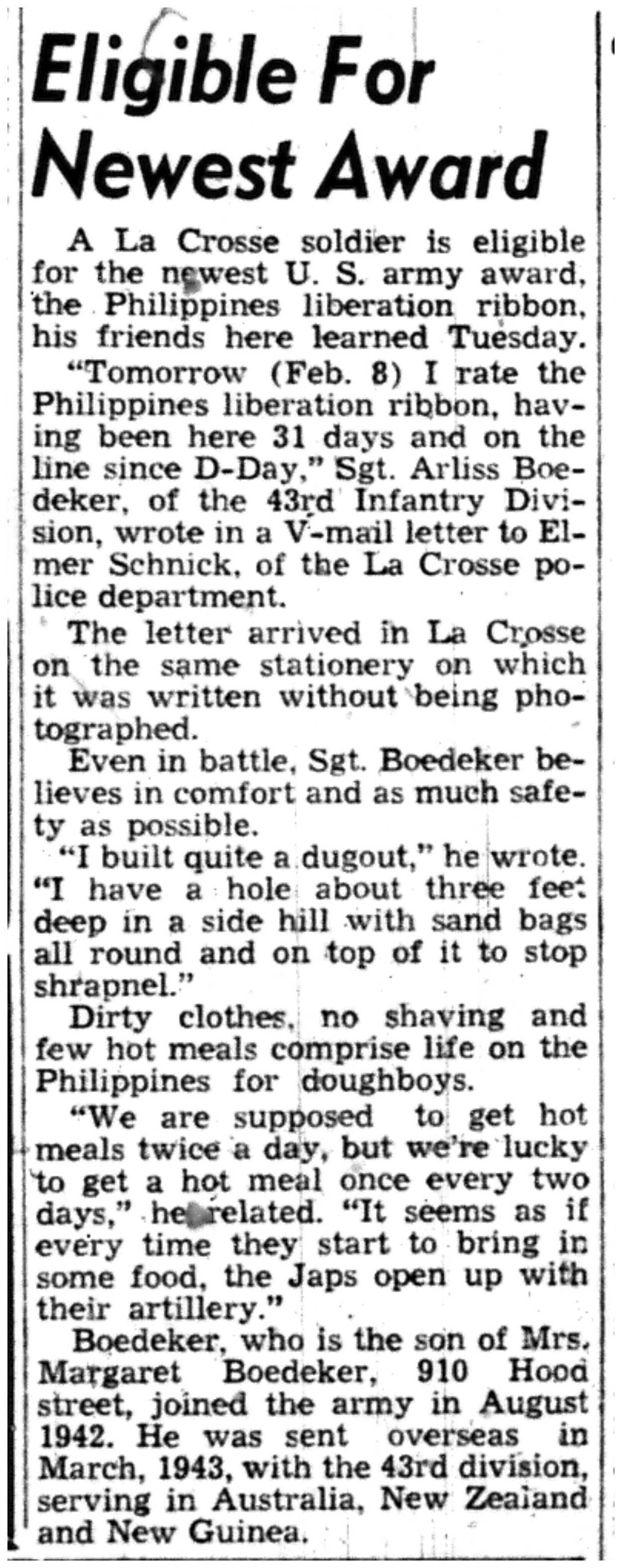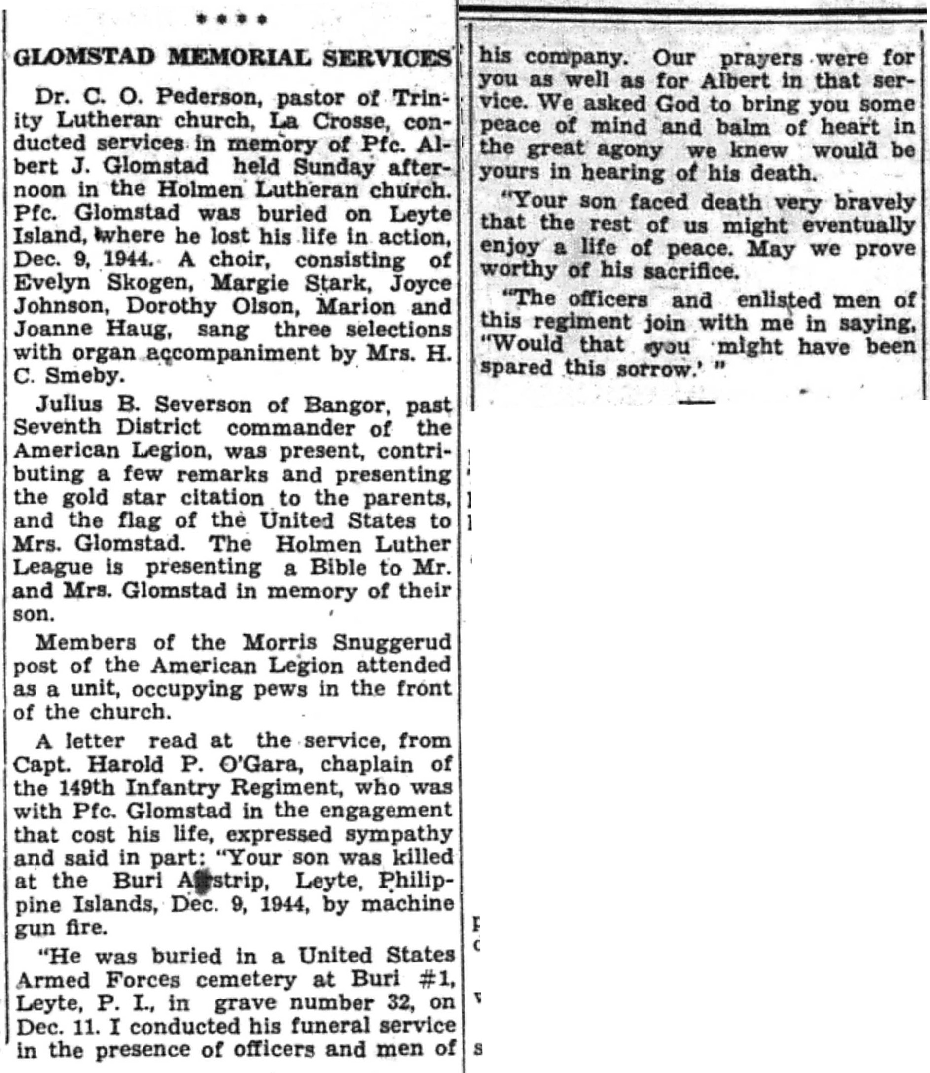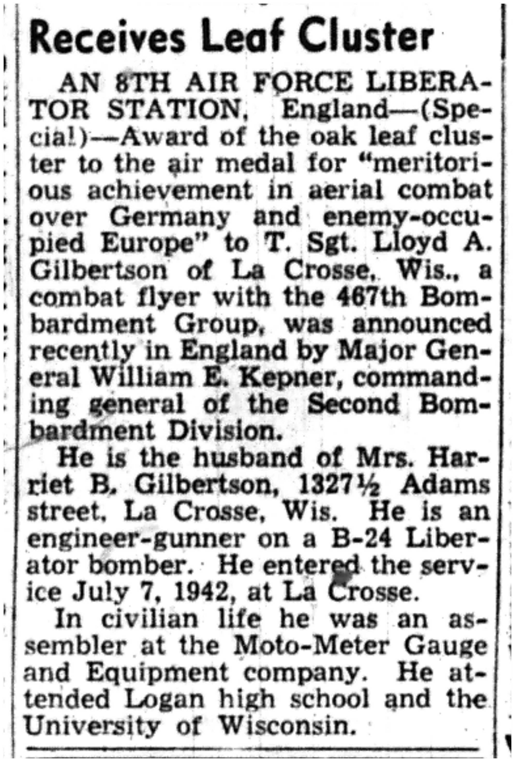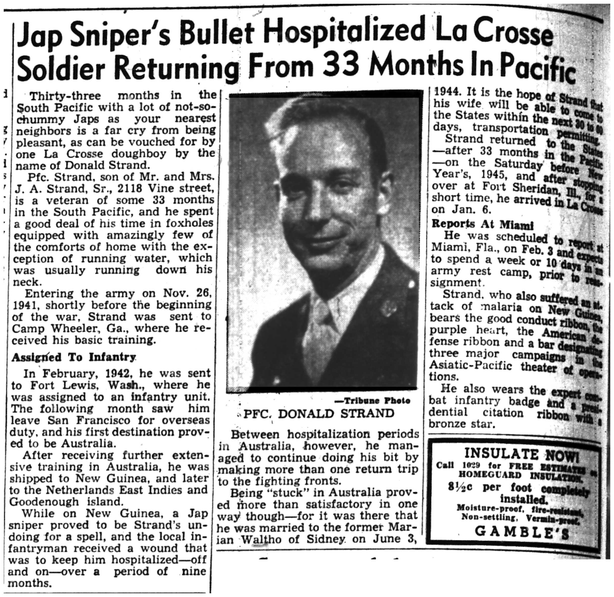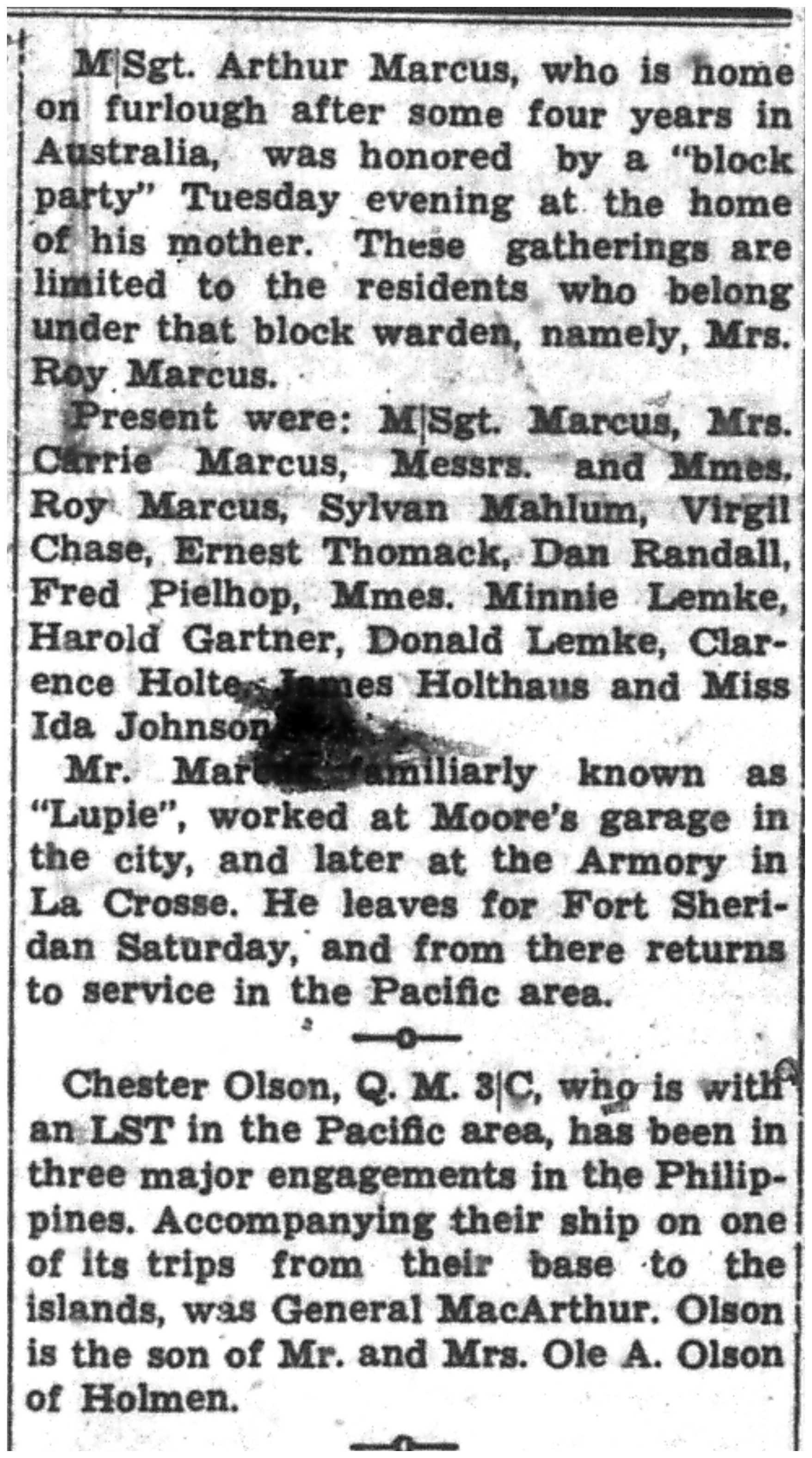 | 1945-2-8 | La Crosse Tribune p4 | |
