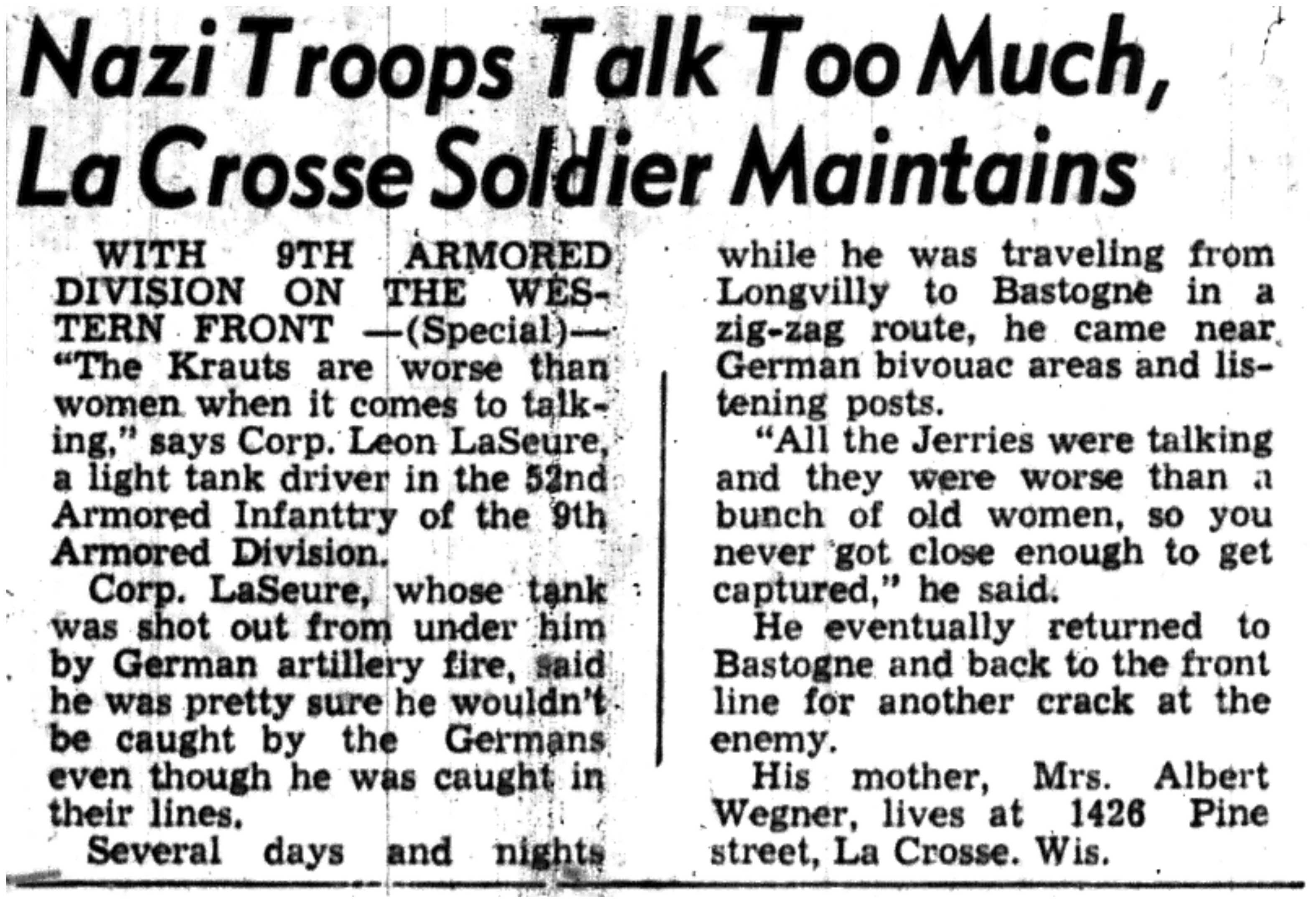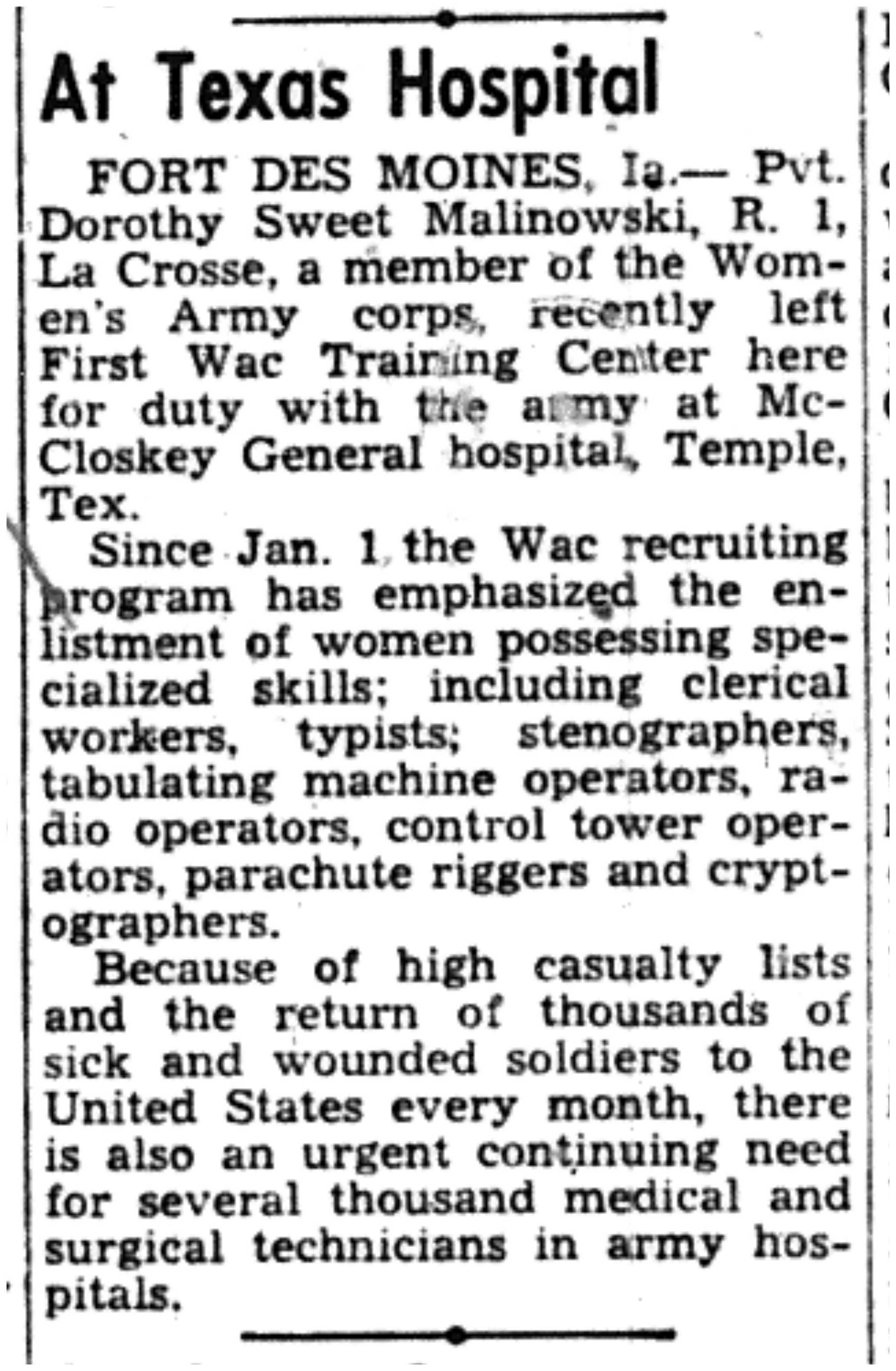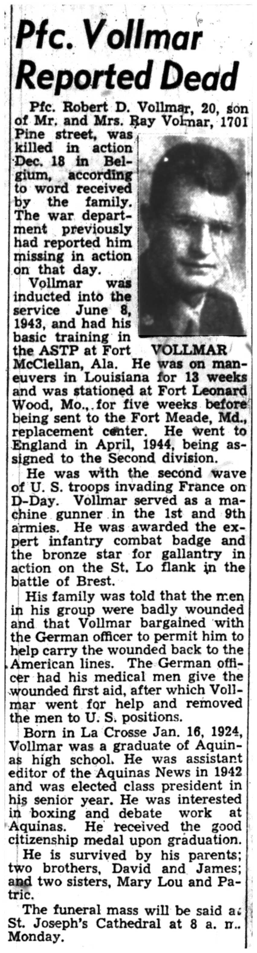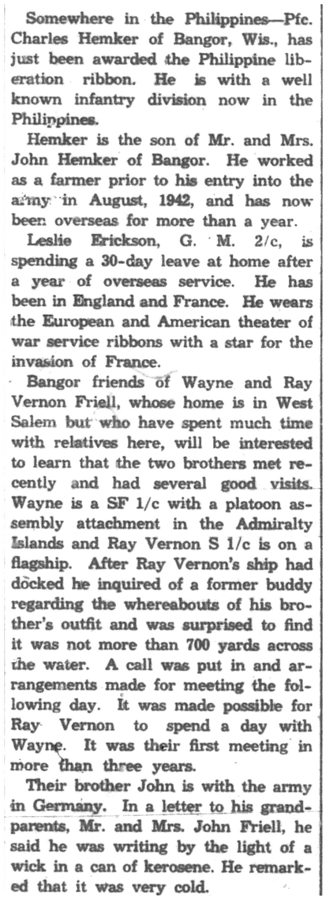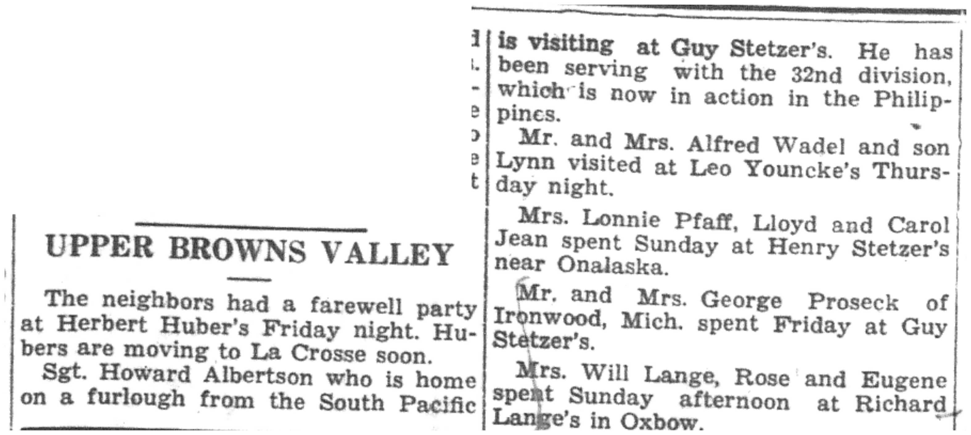 | 1945-2-8 | La Crosse Tribune p4 | |