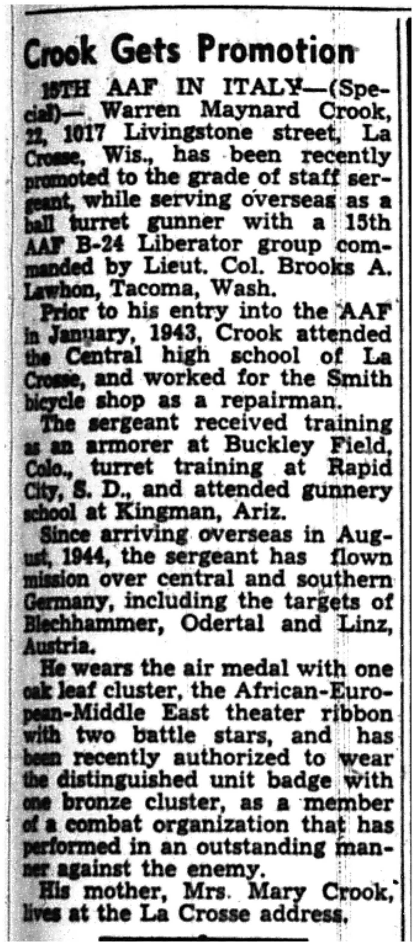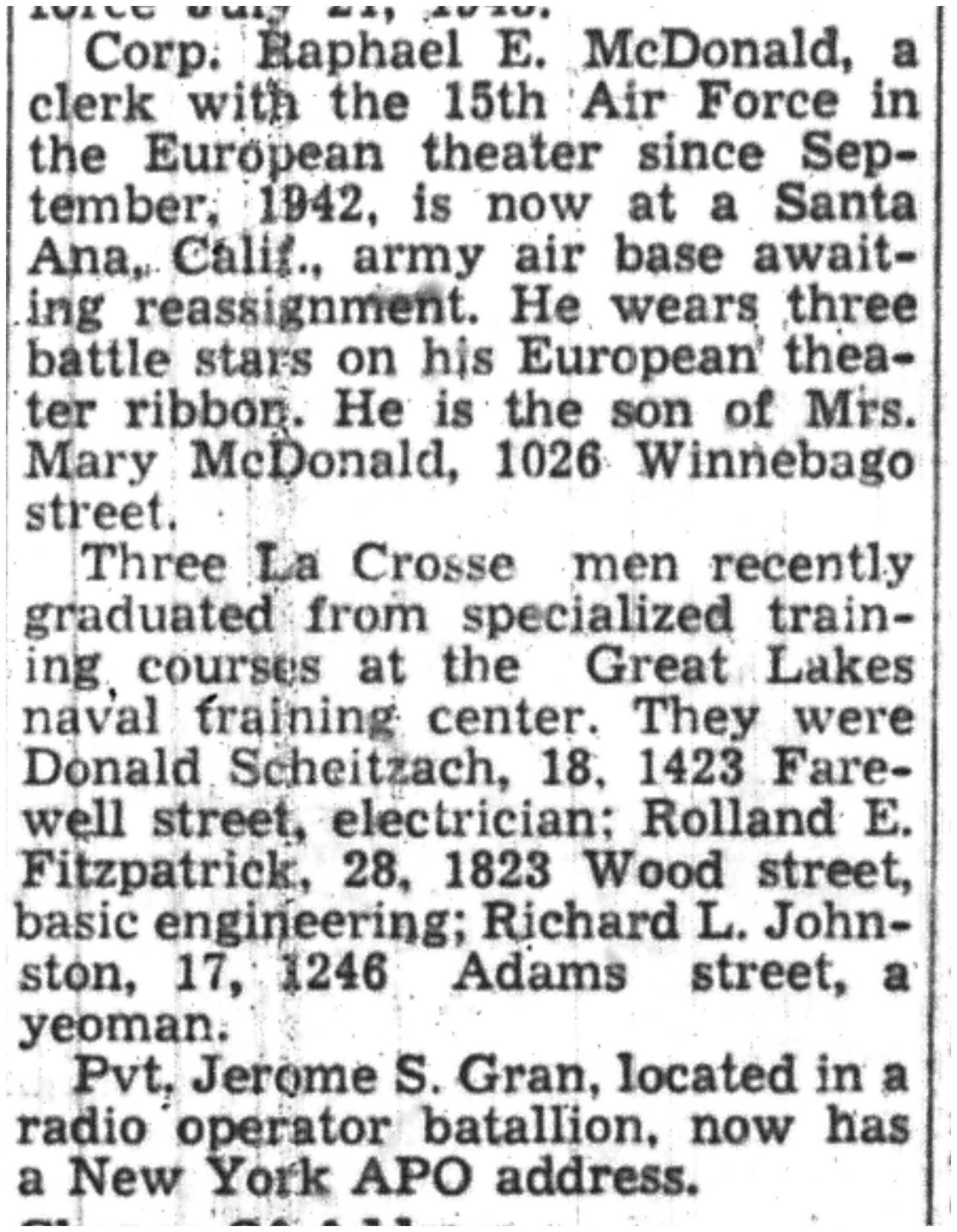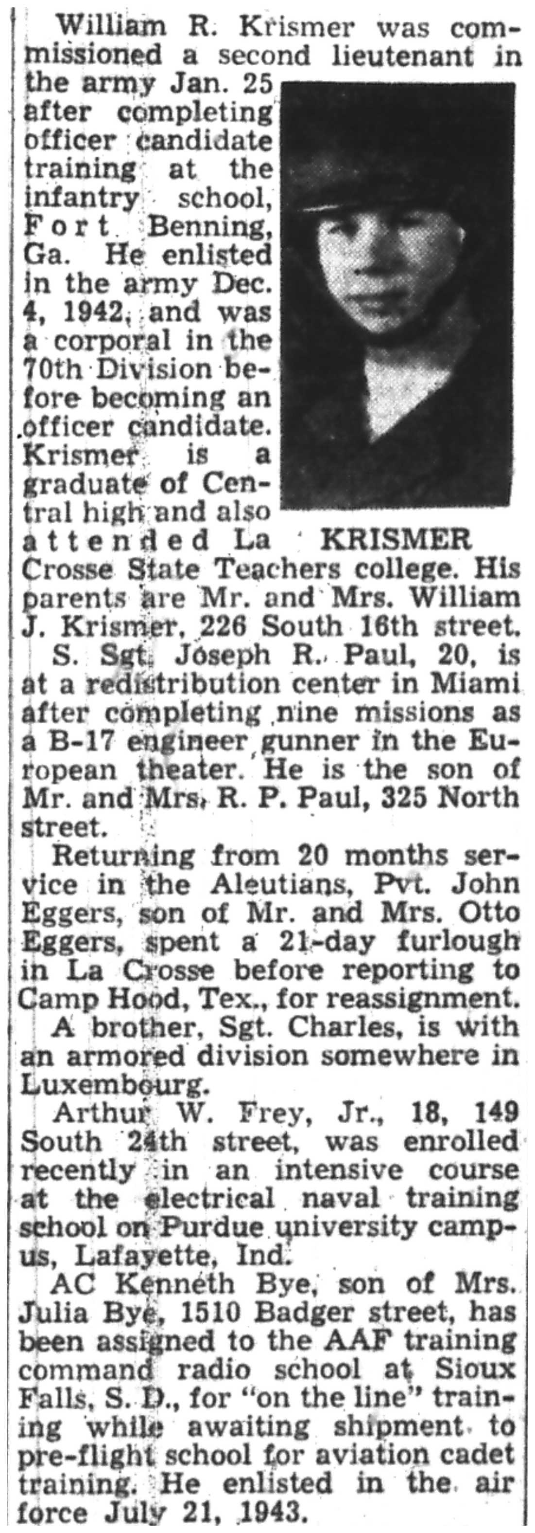 | 1945-2-28 | La Crosse Tribune p3 | |