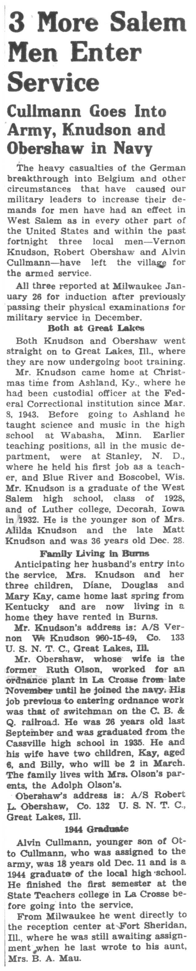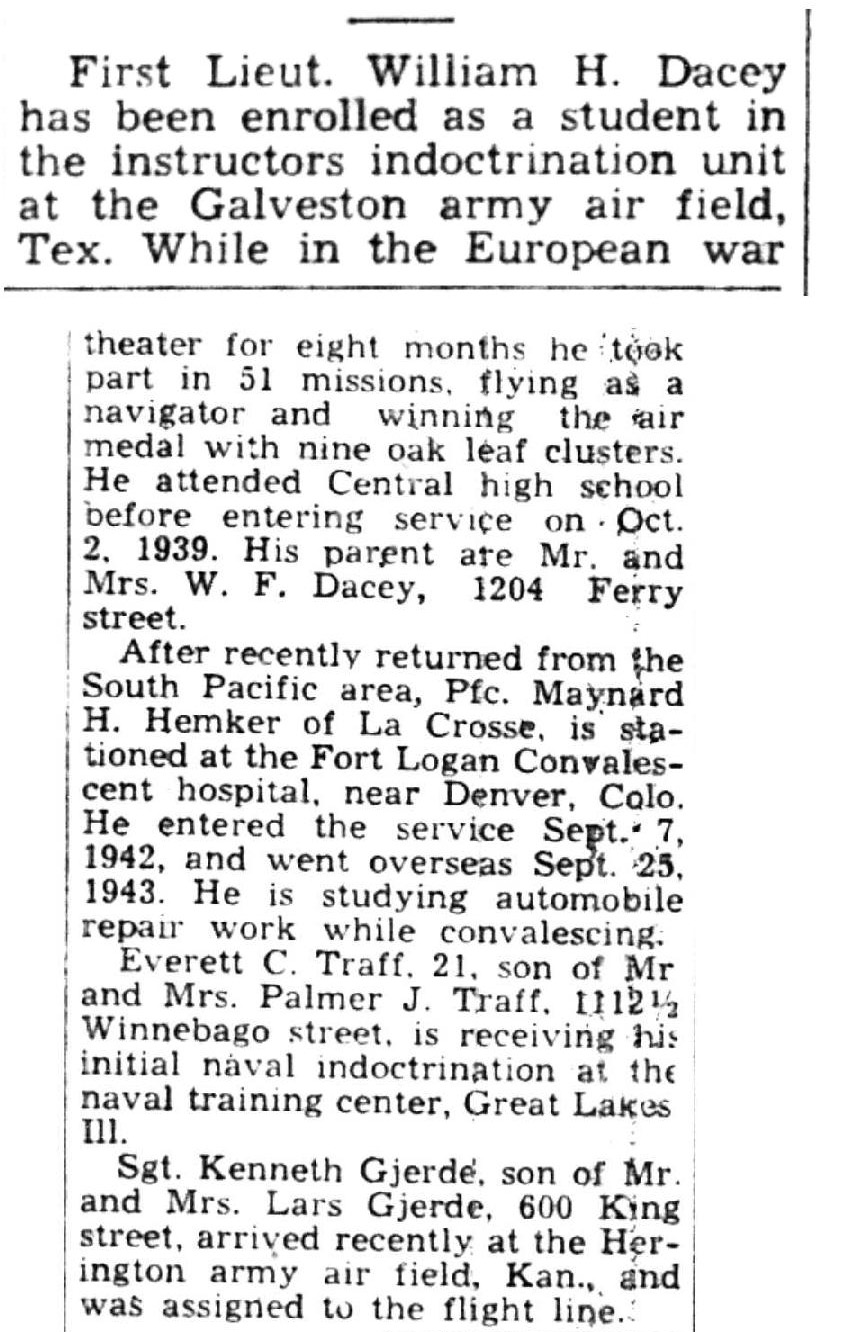 | 1945-2-2 | La Crosse Tribune p7 | |