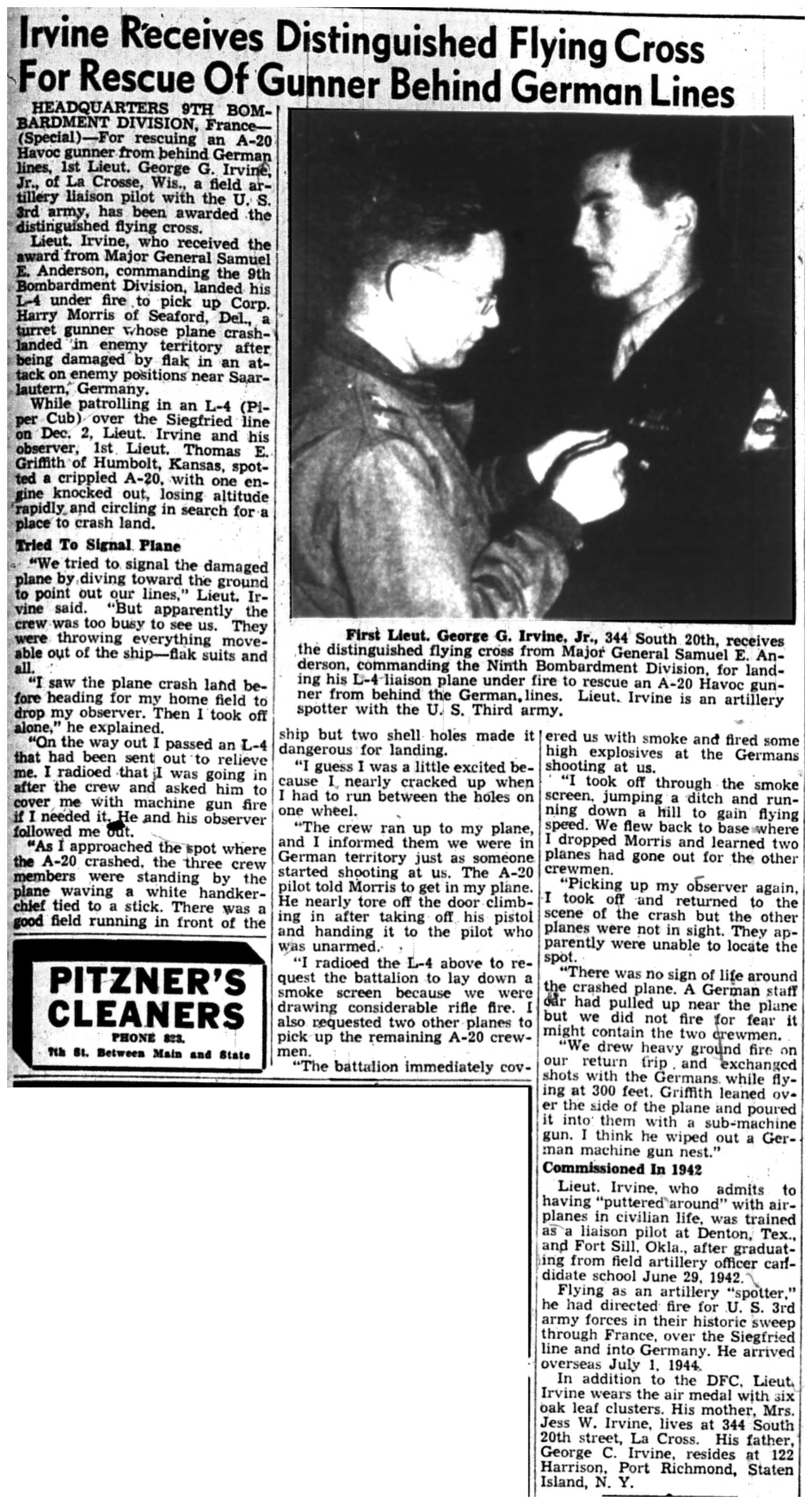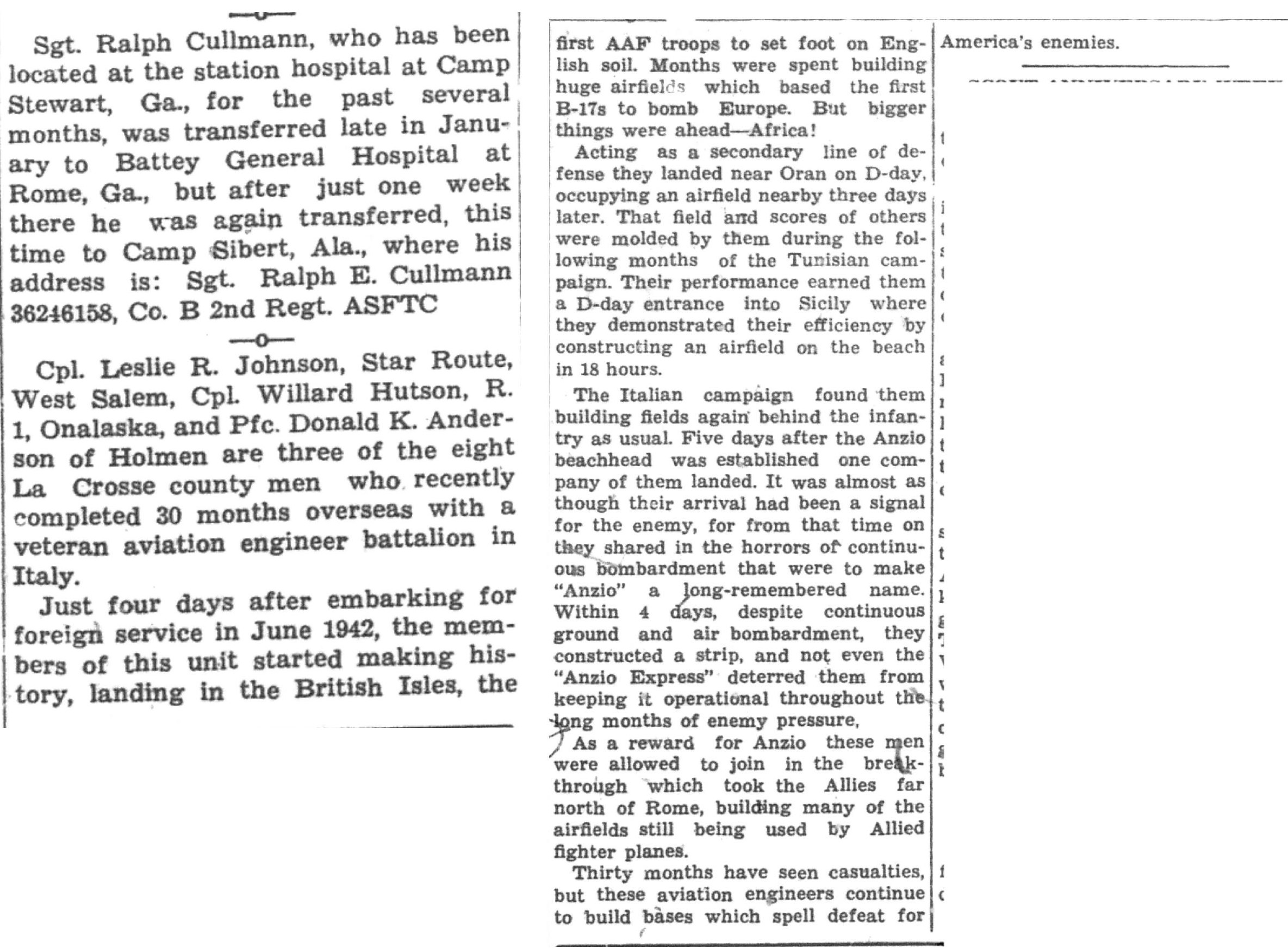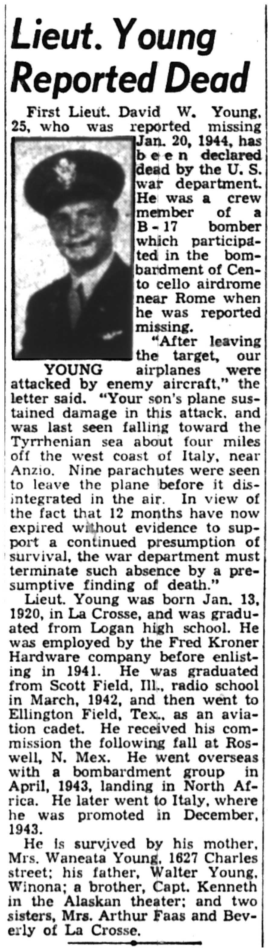 | 1945-2-2 | La Crosse Tribune p6 | |