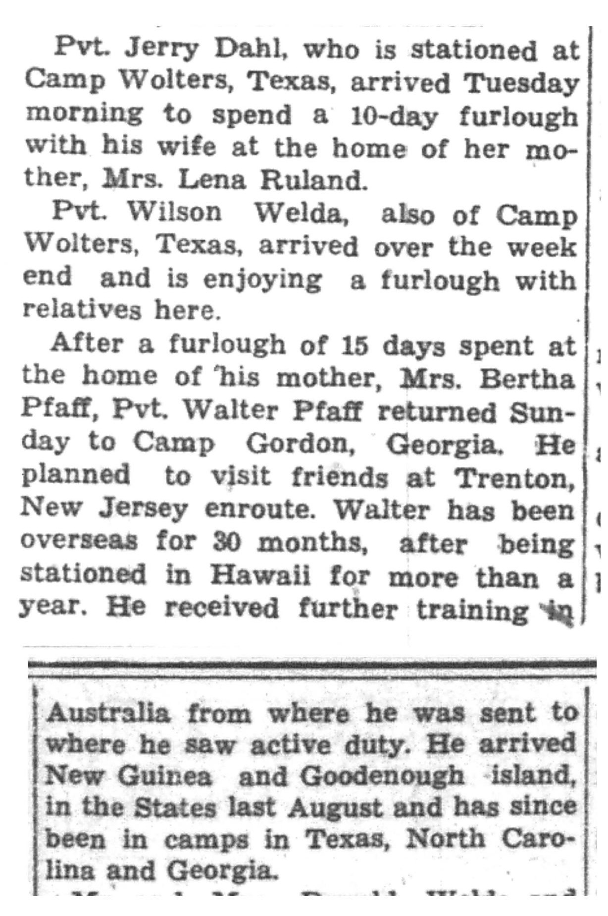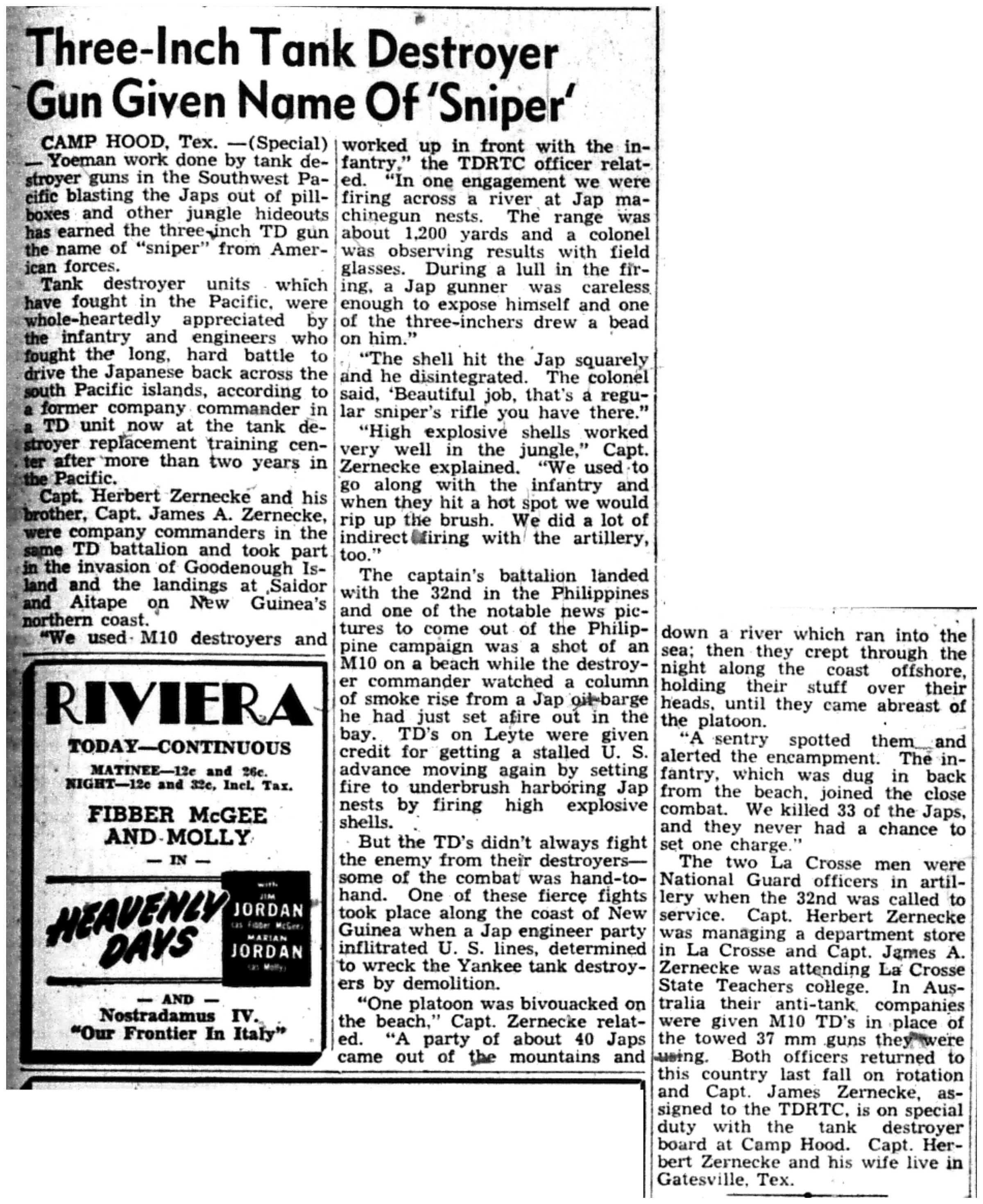 | 1945-2-4 | La Crosse Tribune p12 | |