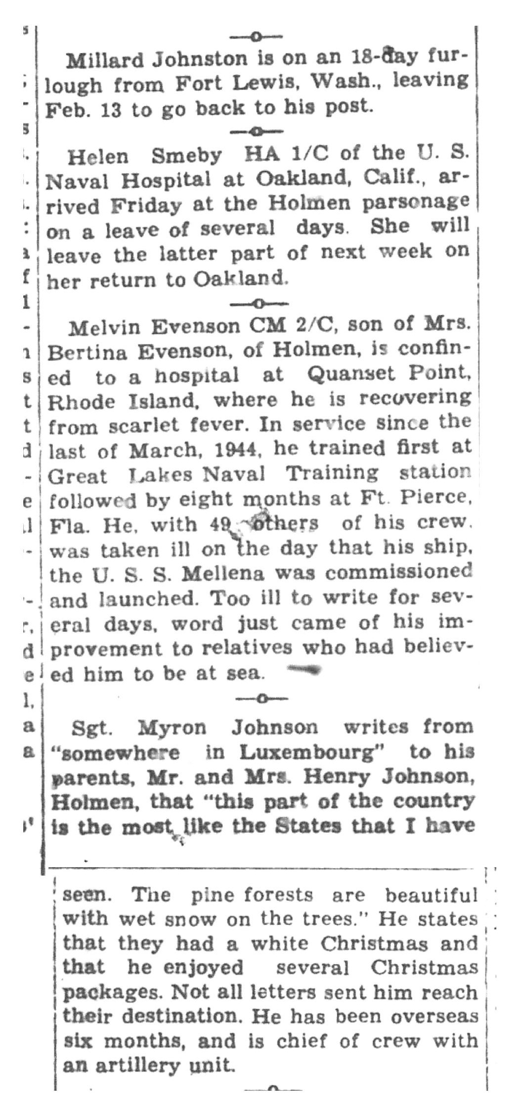 | 1945-2-3 | La Crosse Tribune p7 | |