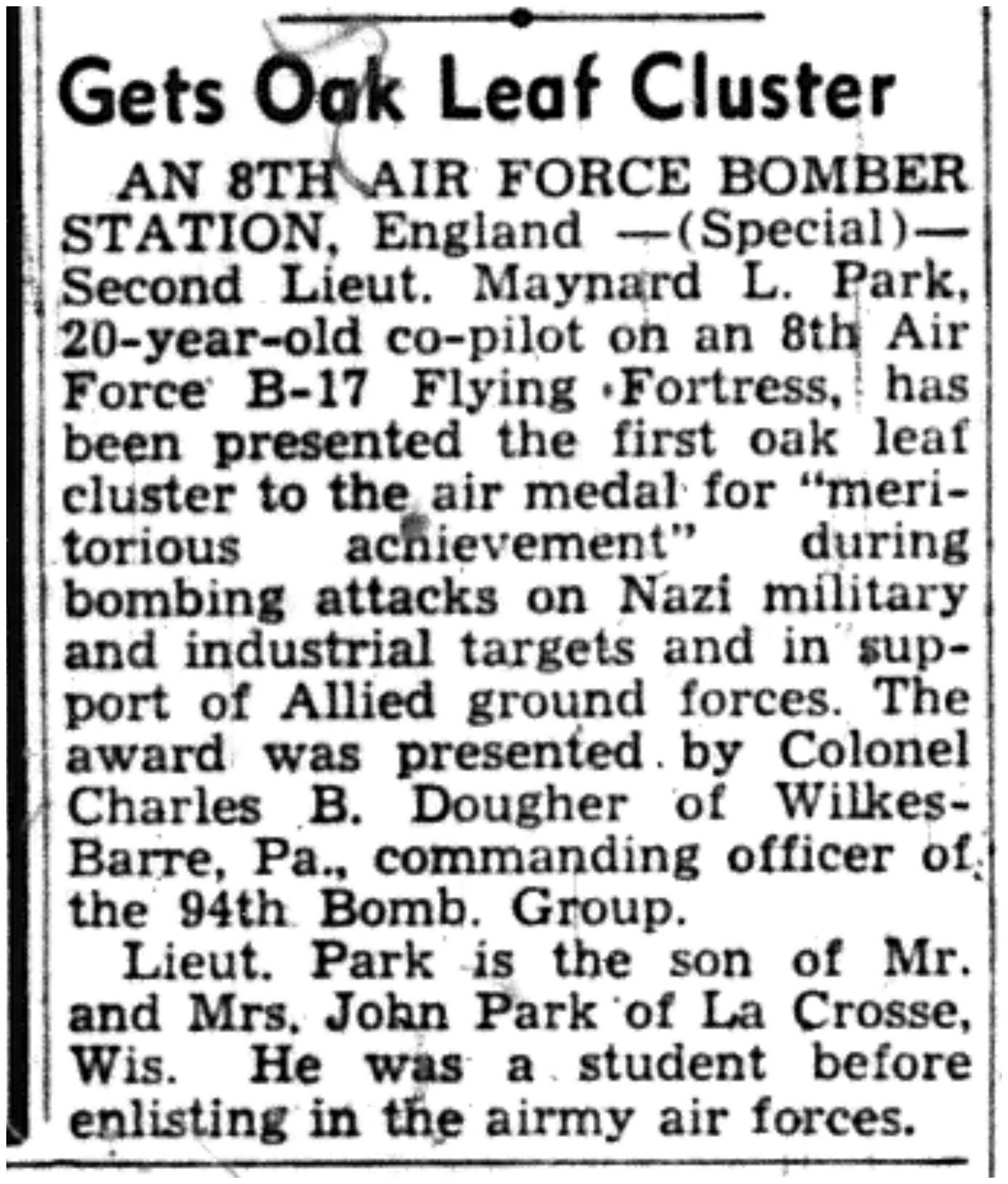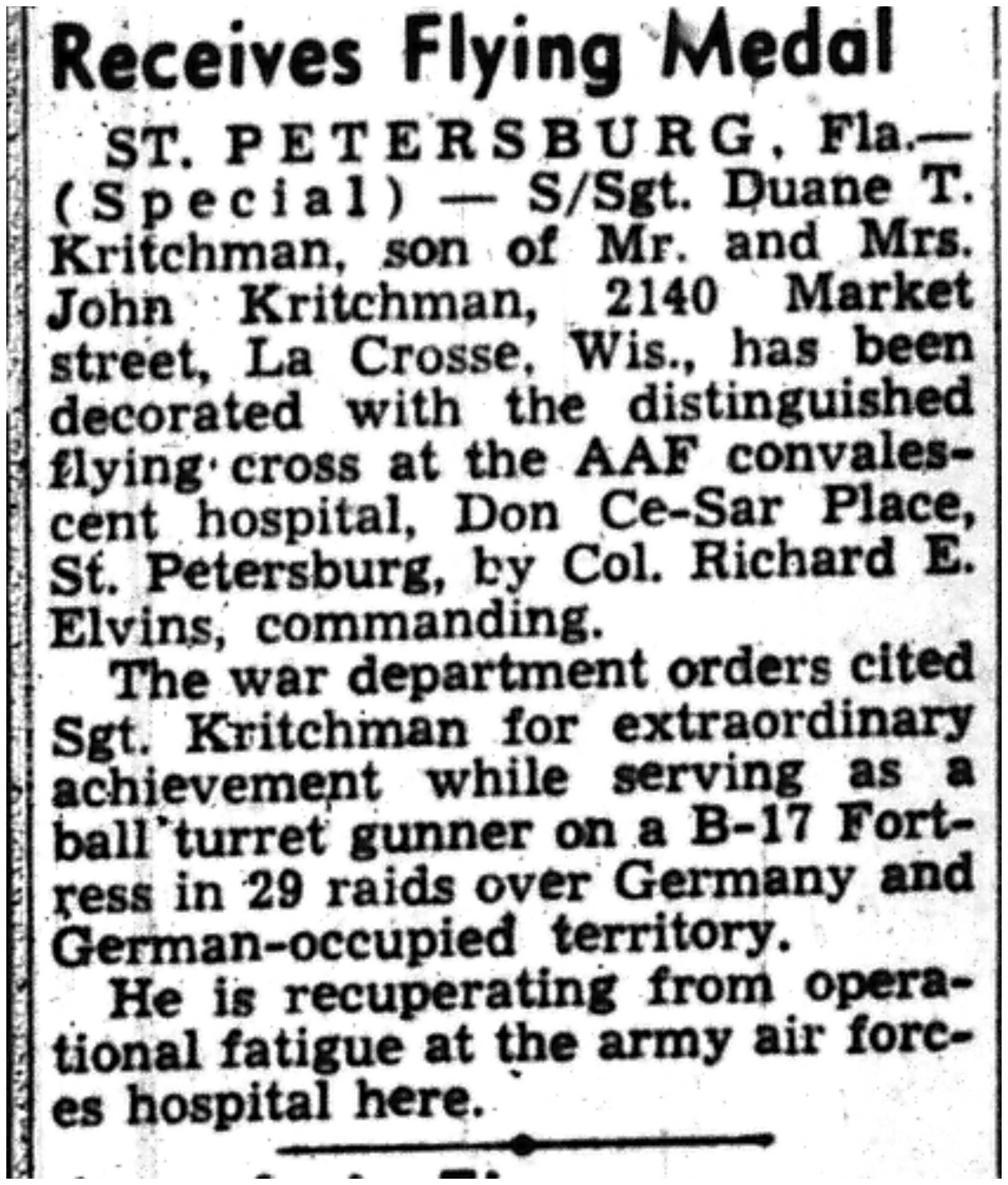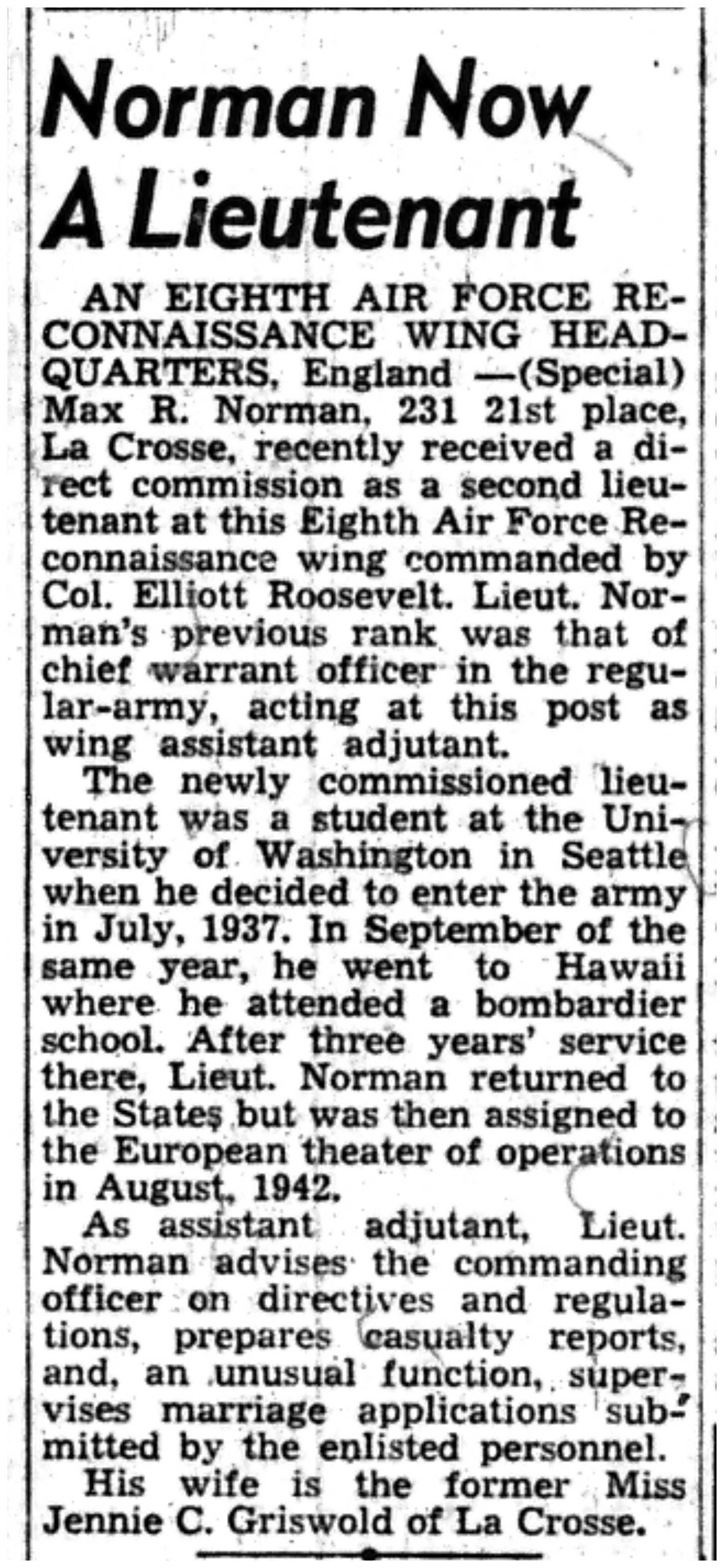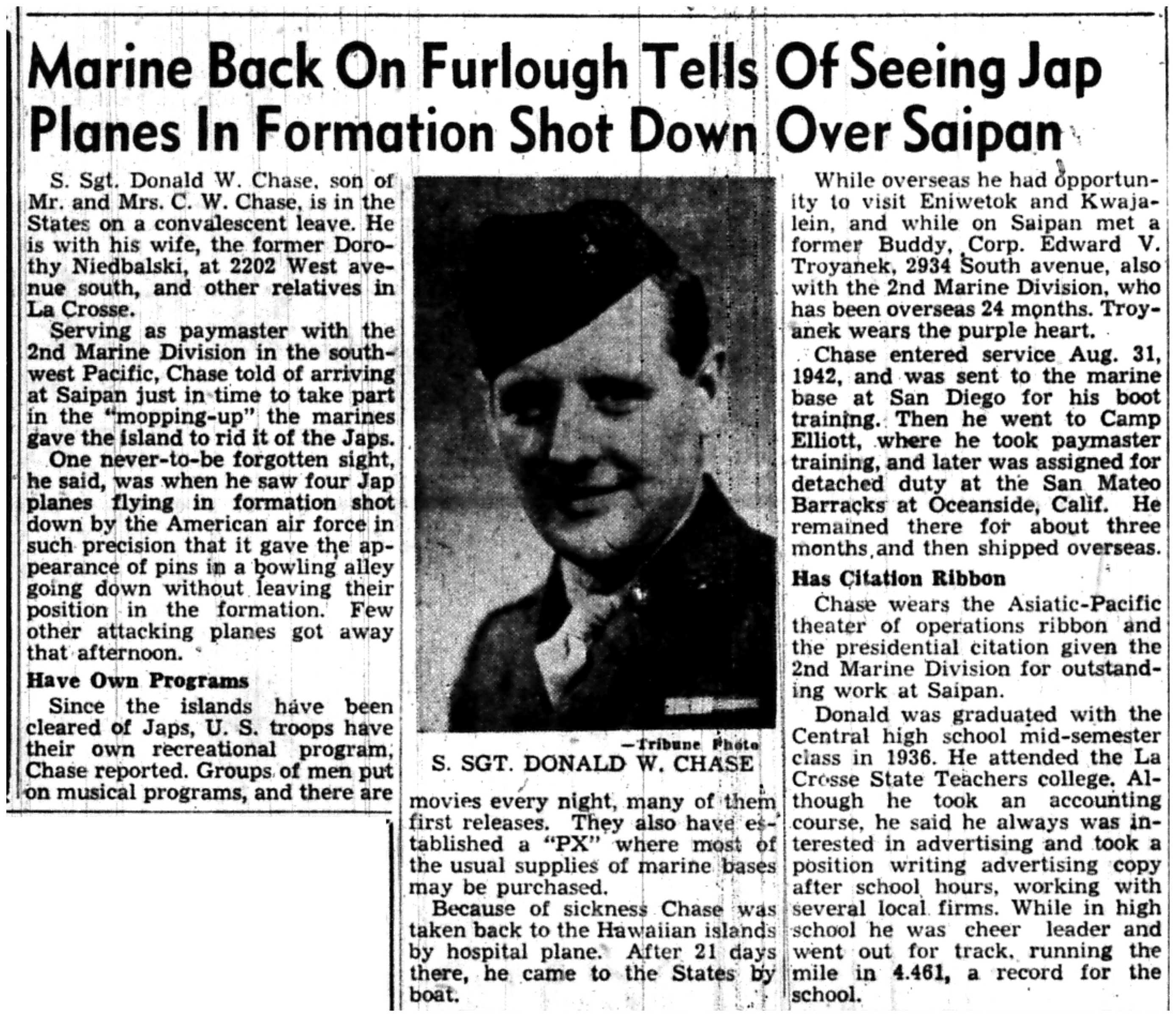 | 1945-2-4 | La Crosse Tribune p6 | |