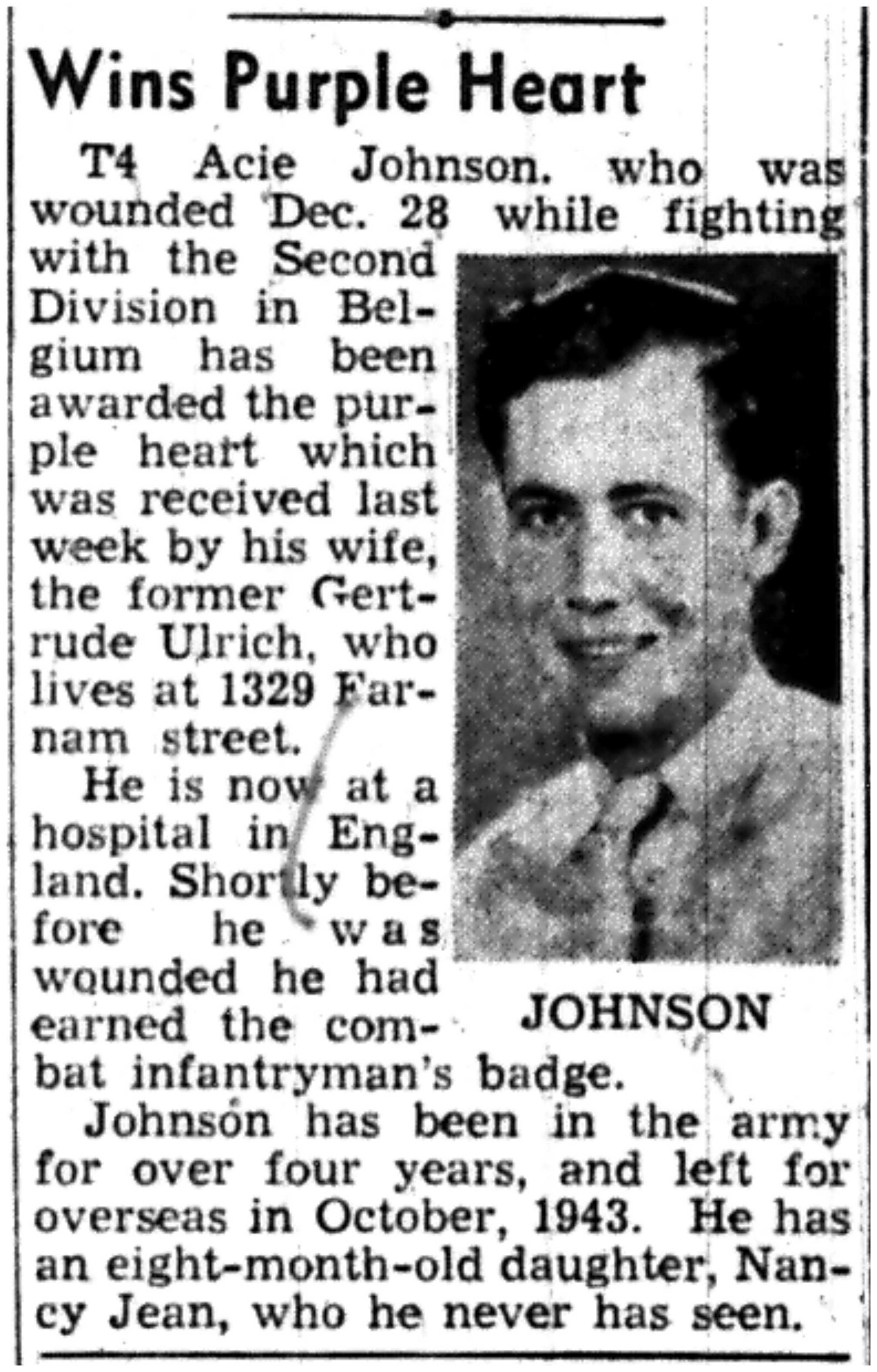 | 1945-2-15 | Non-Pareil Journal p8 | |
