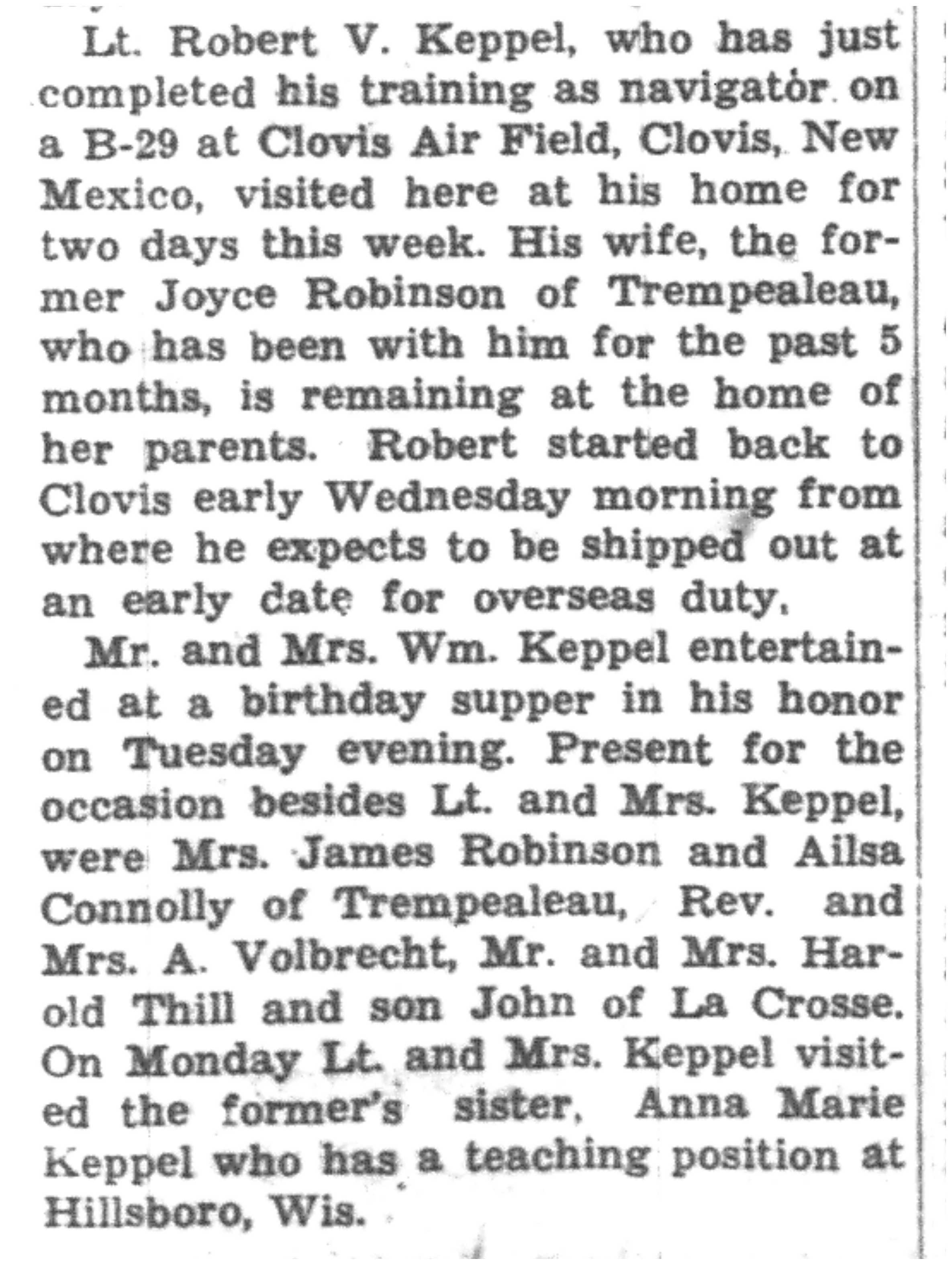 | 1945-2-28 | La Crosse Tribune p8 | |
