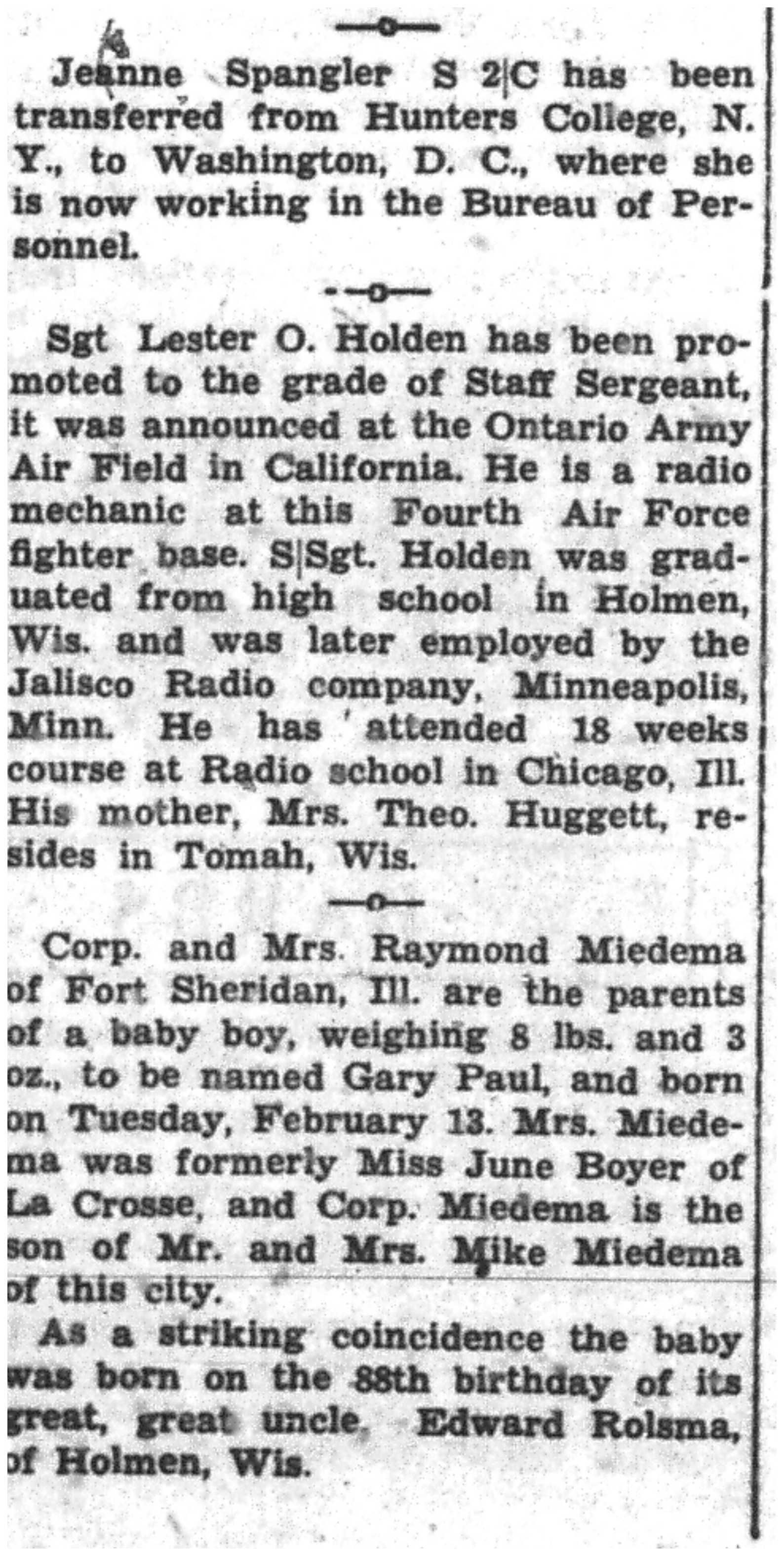 | 1945-2-16 | La Crosse Tribune p4 | |